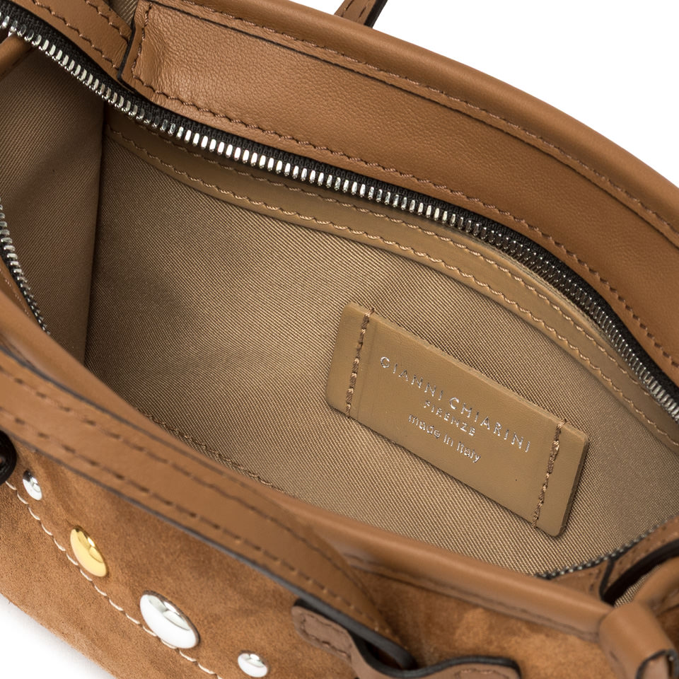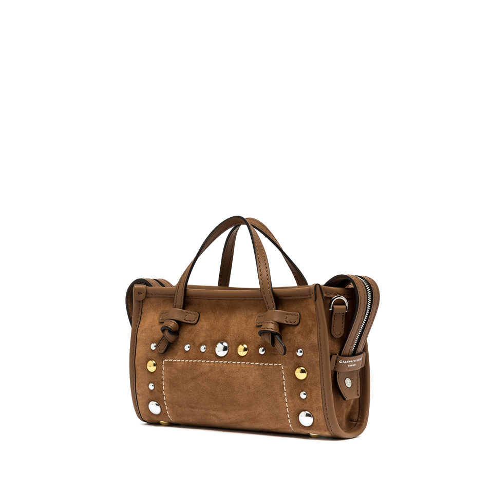 - Dettagli: borchie metalliche bicolore, cuciture a vista, logo interno ed esterno Gianni Chiarini Firenze