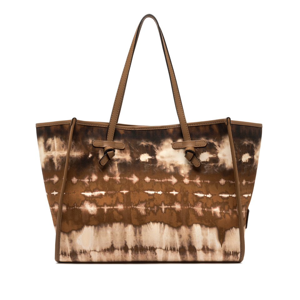 Shopping bag Marcella in tessuto semilucido stampato tye dye Cuoio