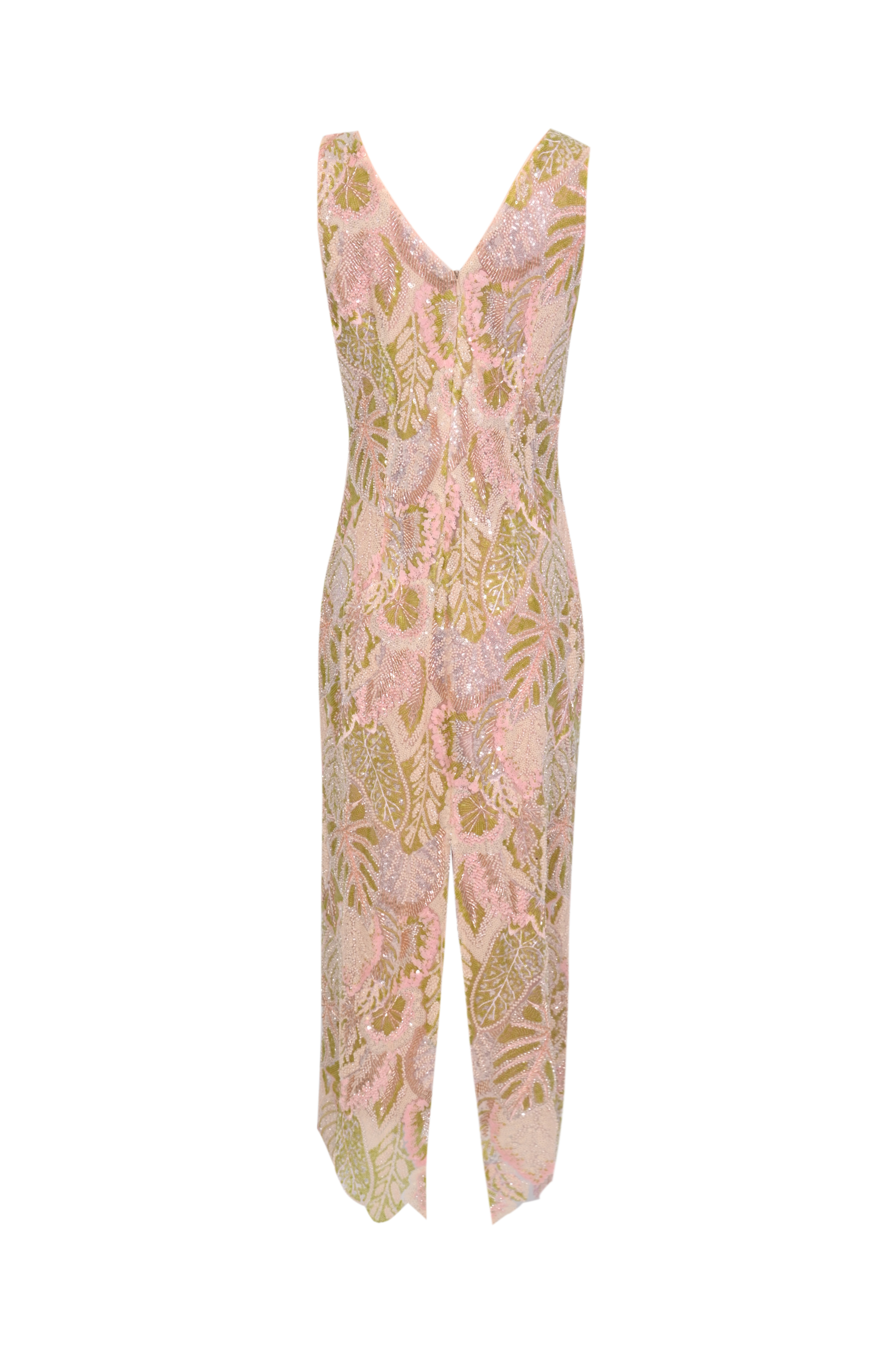 - Dettagli: ricamo all-over con paillettes e perline applicate, effetto luminoso e tridimensionale, linea aderente che valorizza la silhouette, fondo leggermente sagomato con piccoli spacchi frontali, lavorazione sartoriale con finiture curate, design elegante e raffinato ideale per cerimonia o sera