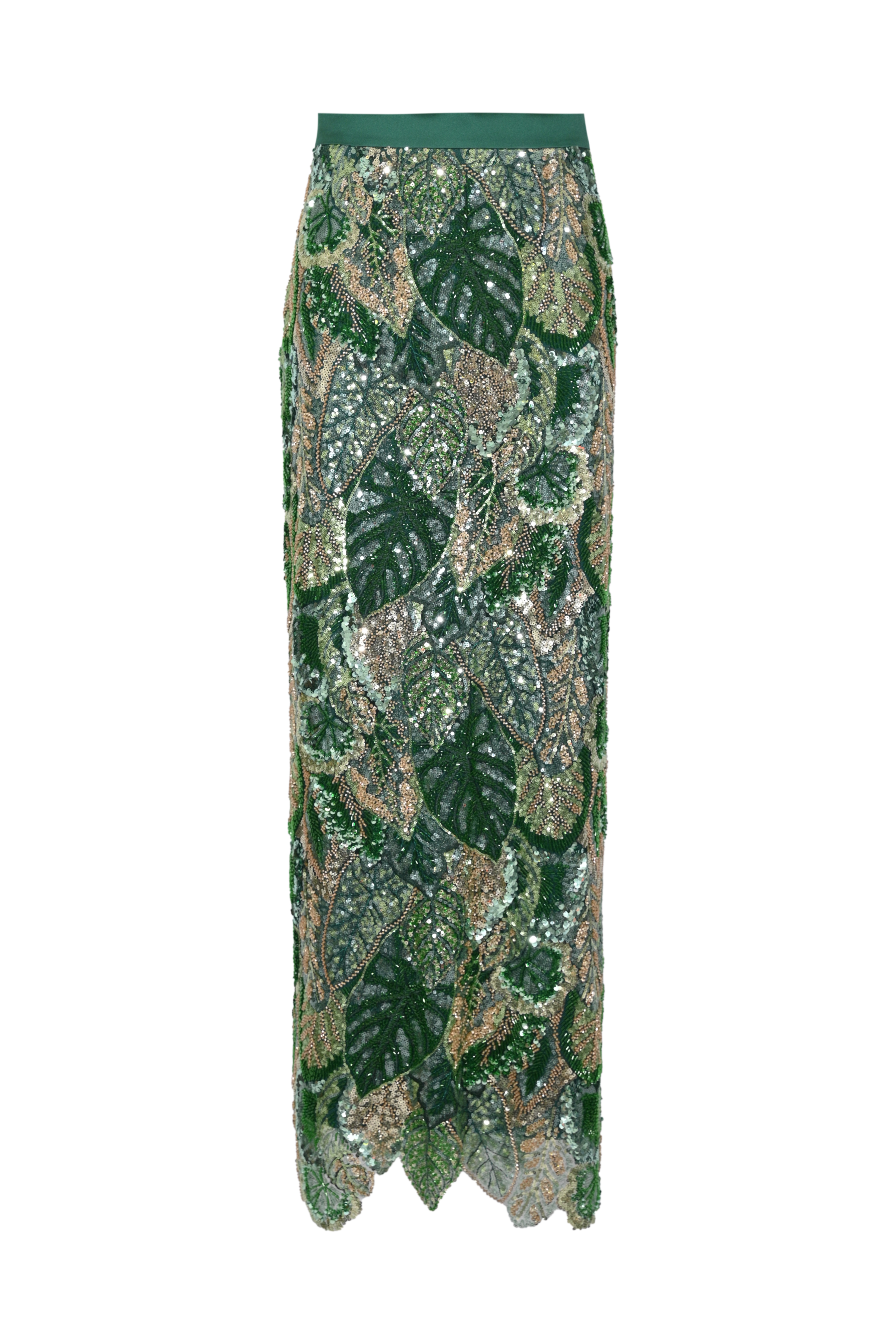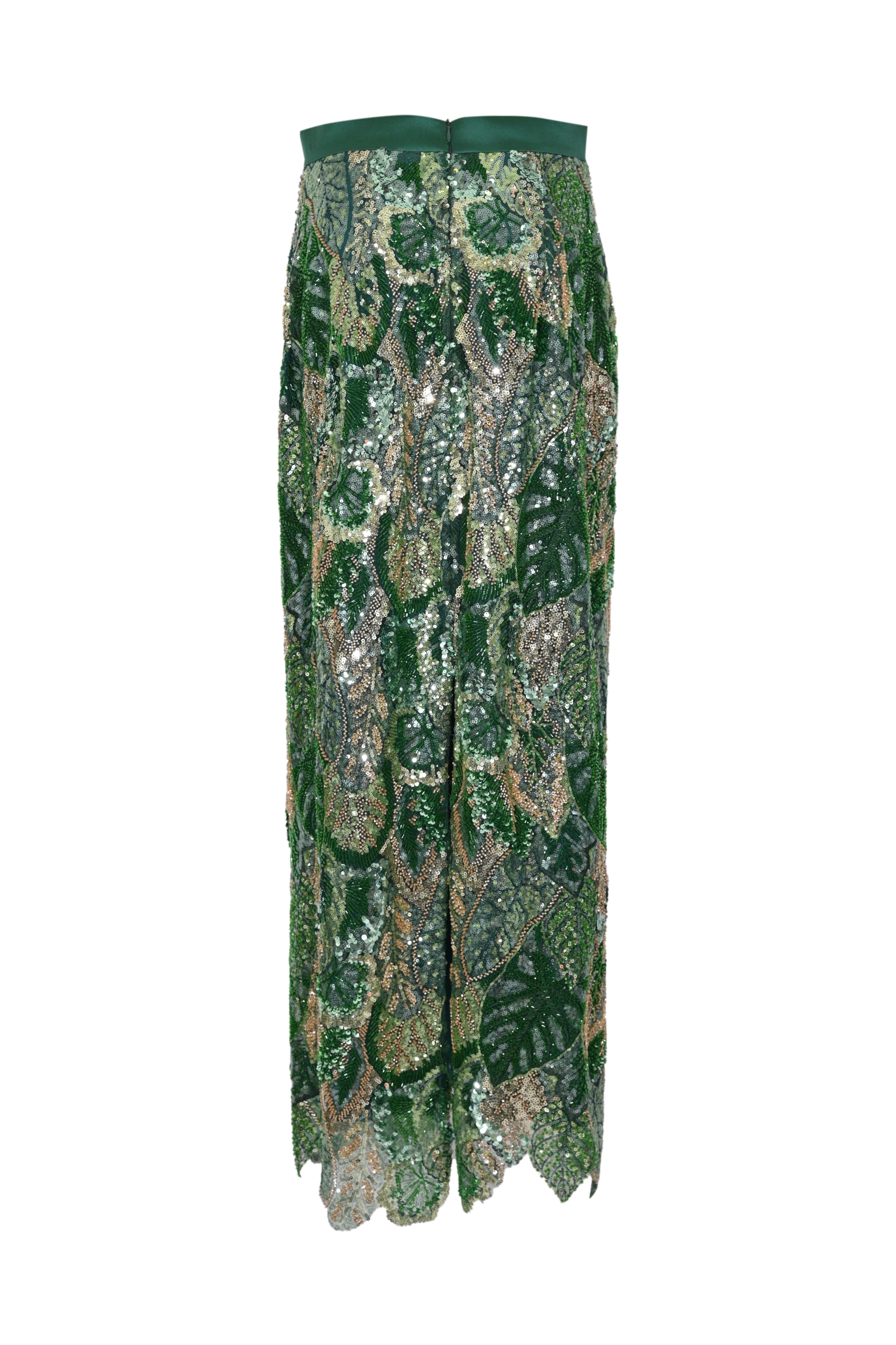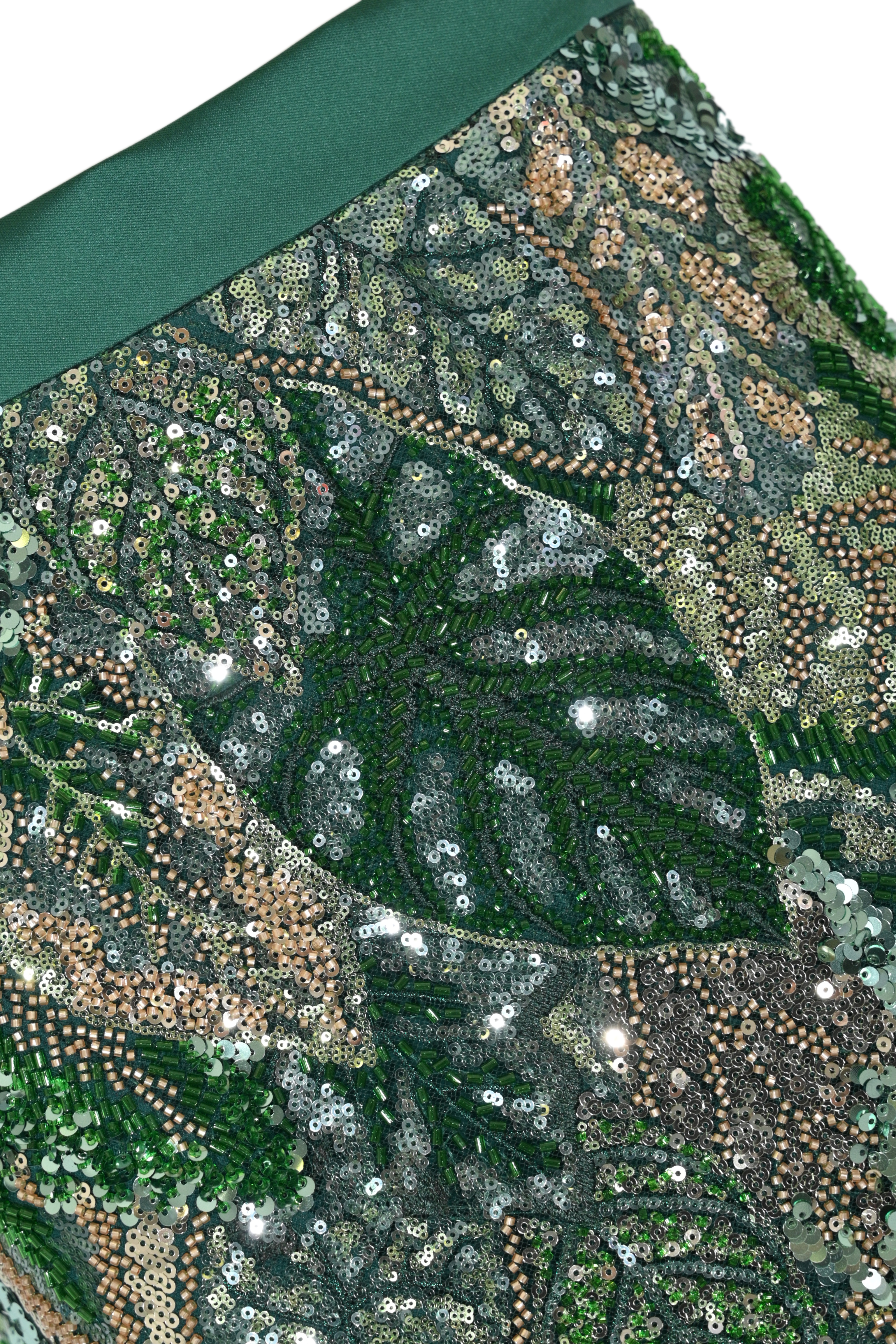 - Dettagli: lavorazione completamente ricamata, applicazioni di paillettes e perline, fondo sagomato, effetto luminoso e tridimensionale