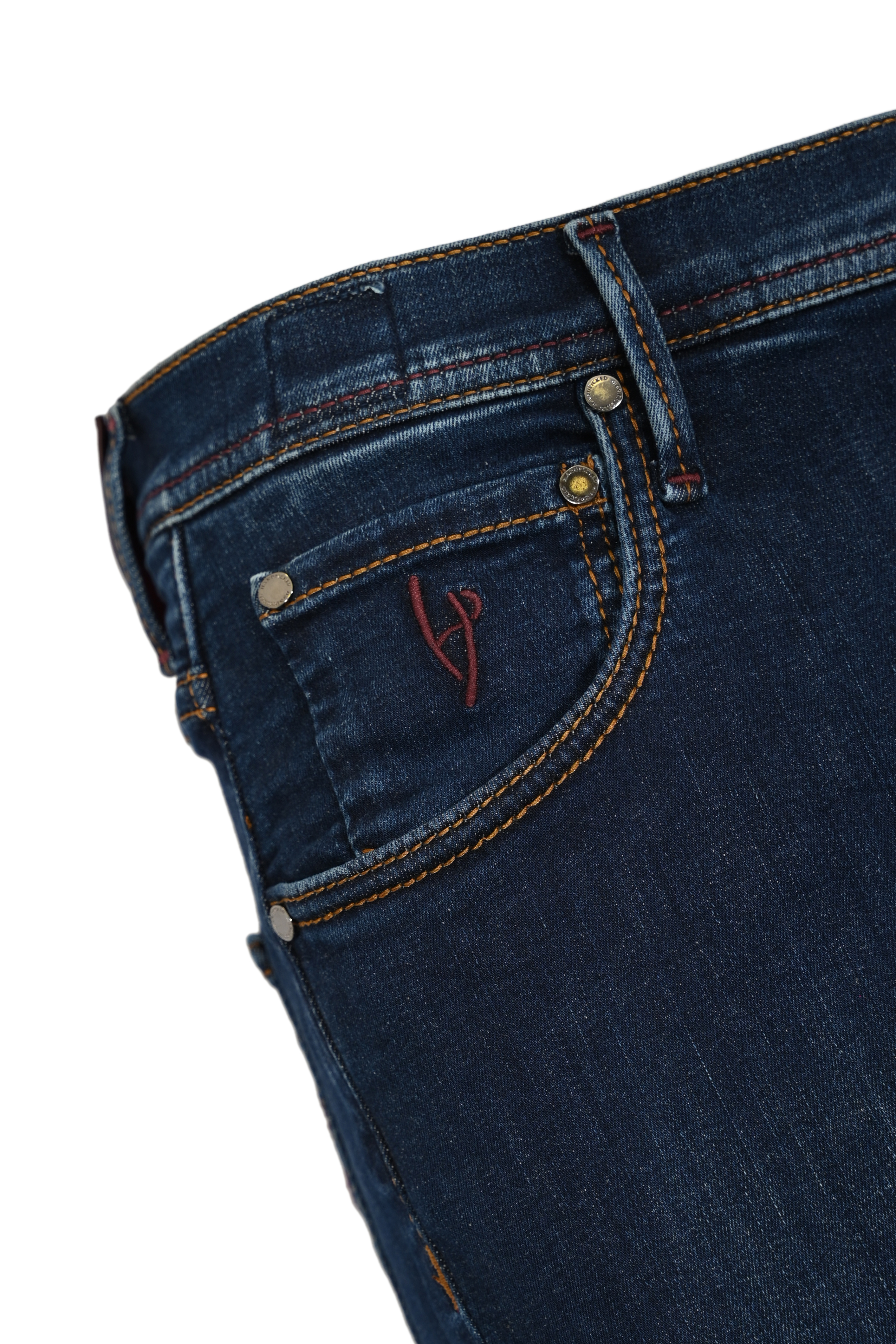 - Dettagli: impunture a contrasto, etichetta logo sul retro, lavaggio sfumato