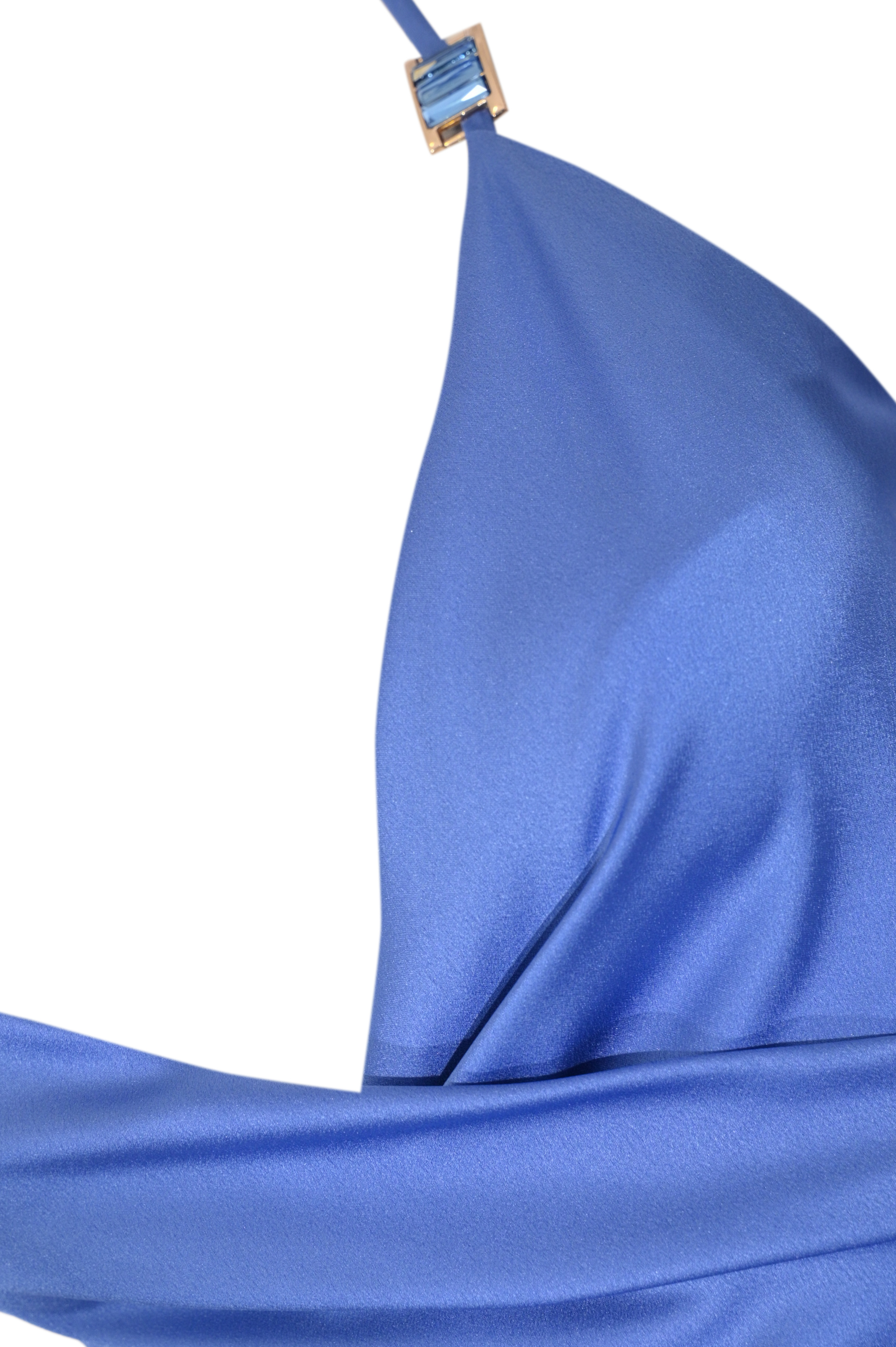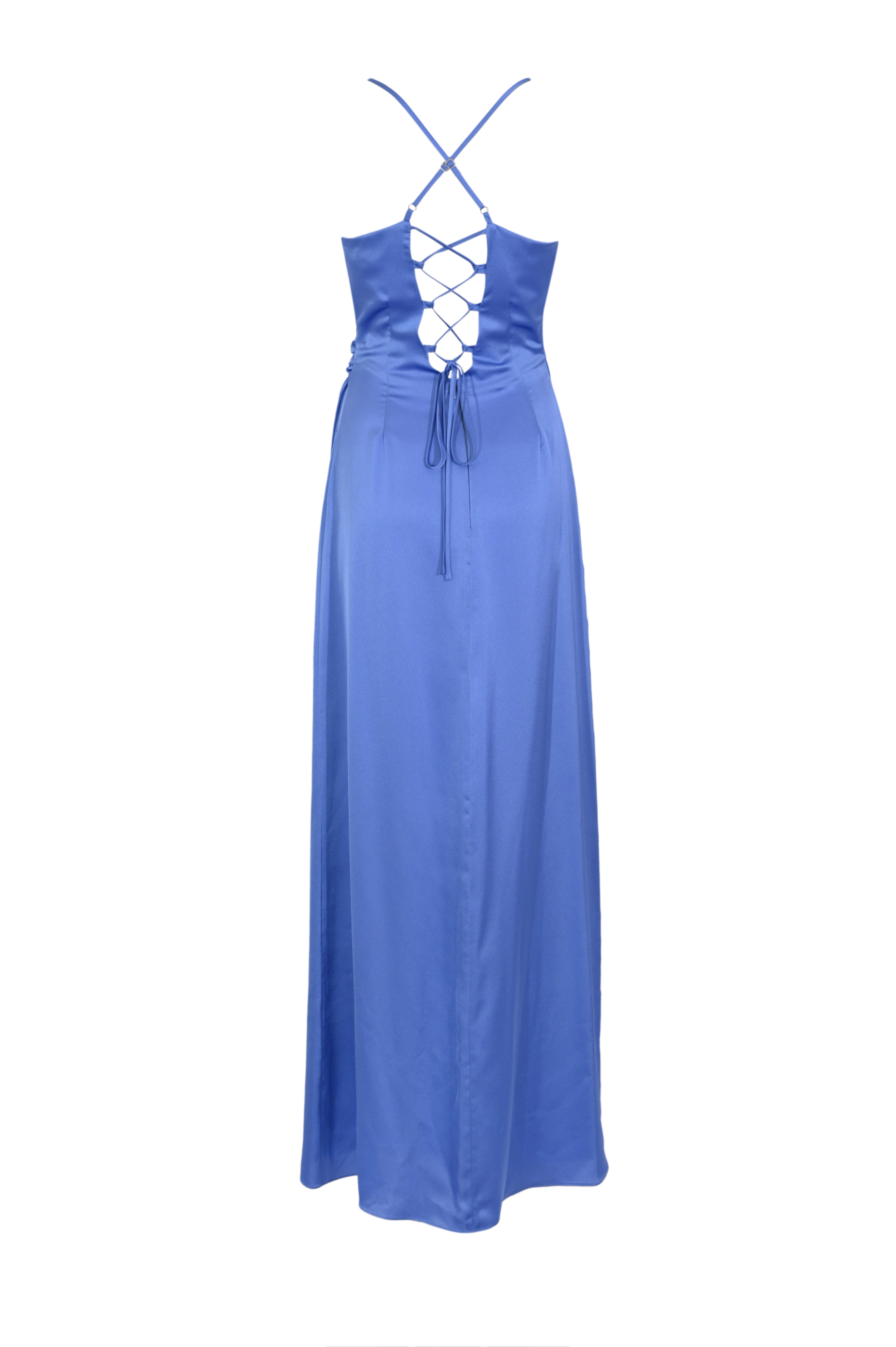 - Dettagli: design elegante e femminile con drappeggio laterale che valorizza la silhouette, schiena scoperta con motivo lace-up, spalline con dettaglio gioiello, linea lunga e scivolata ideale per occasioni speciali
