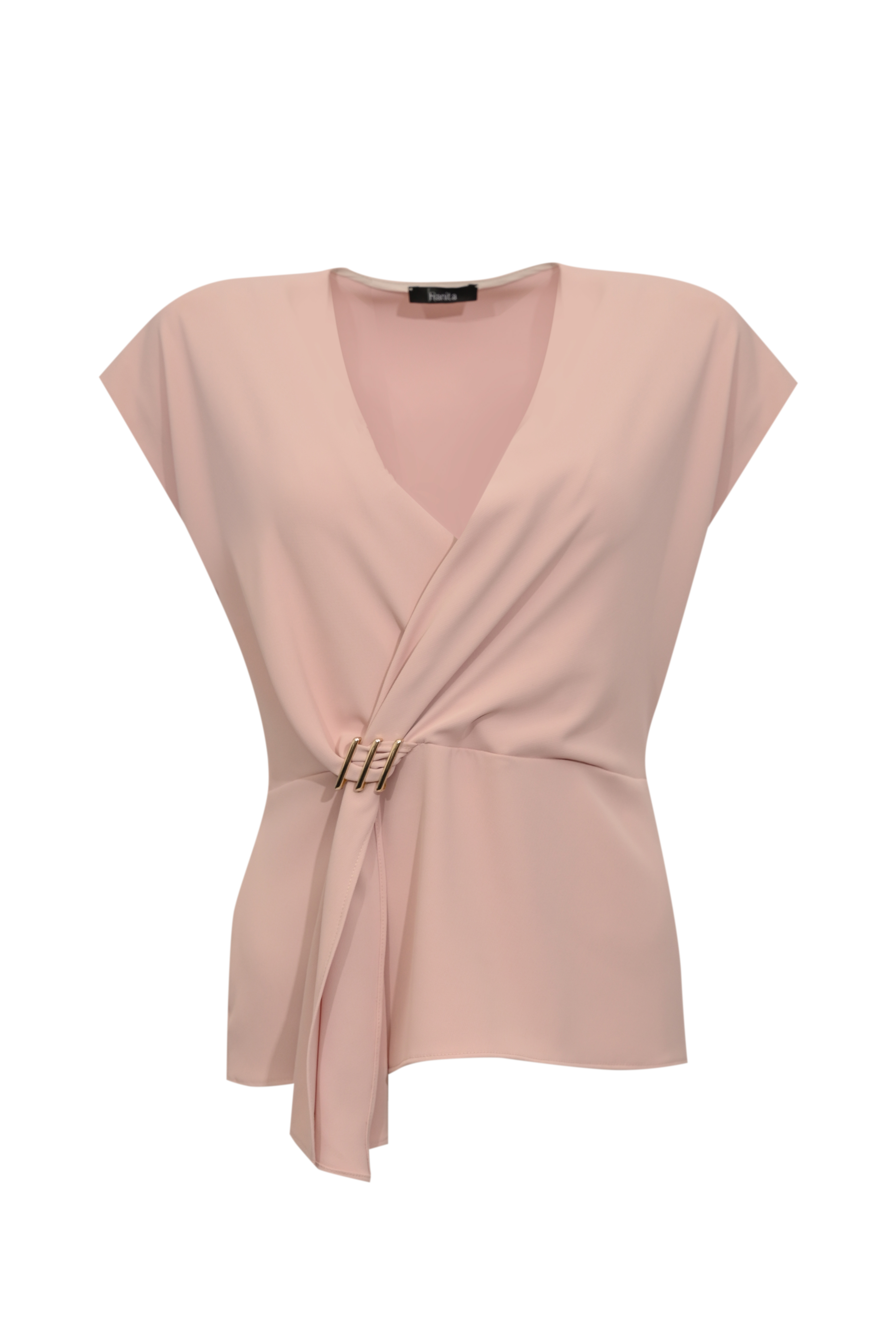 Blusa da donna in tessuto fluido, Hanita, modello con dettaglio gioiello