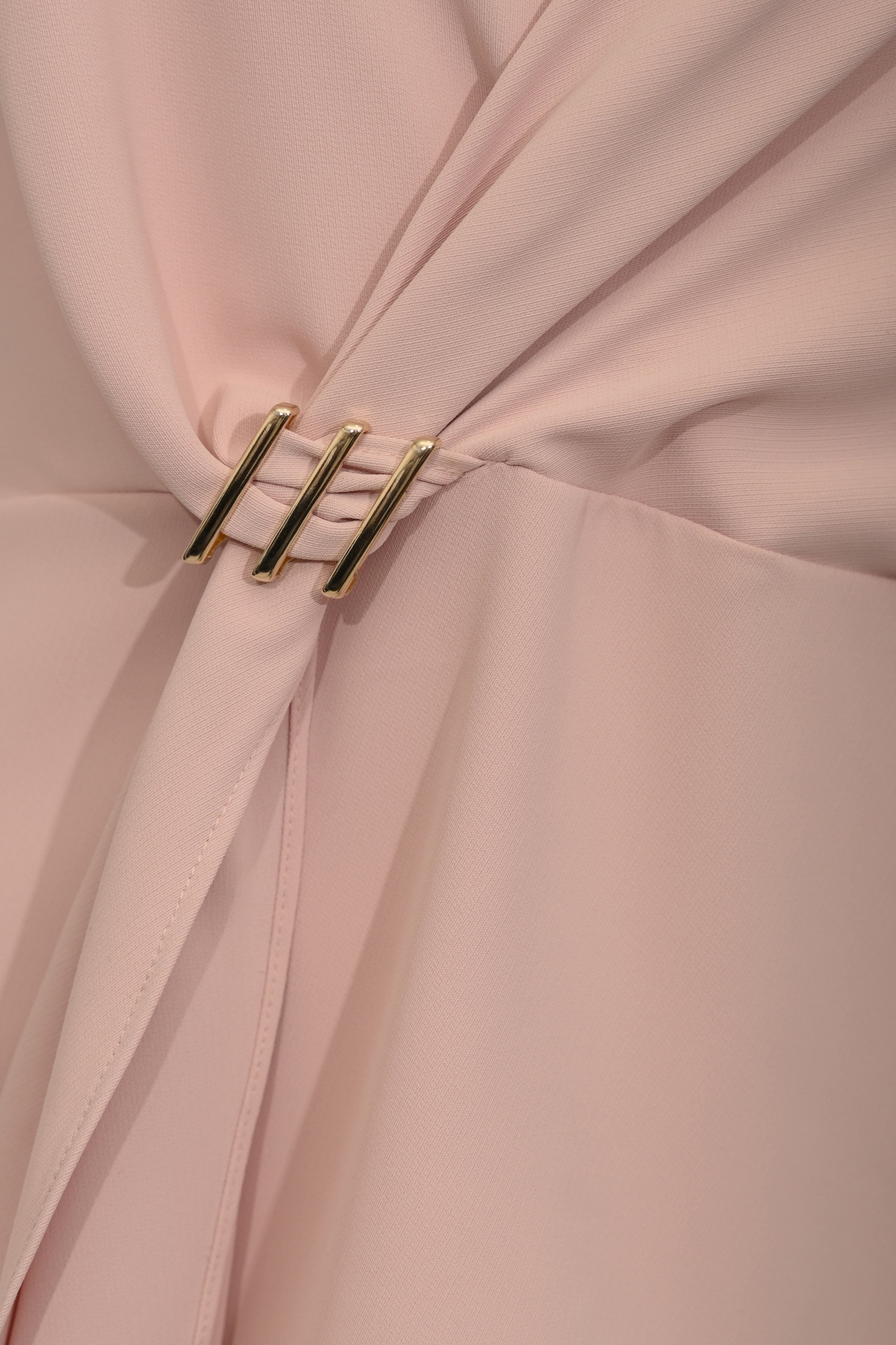 - Dettagli: drappeggio frontale con applicazione gioiello in metallo, taglio incrociato