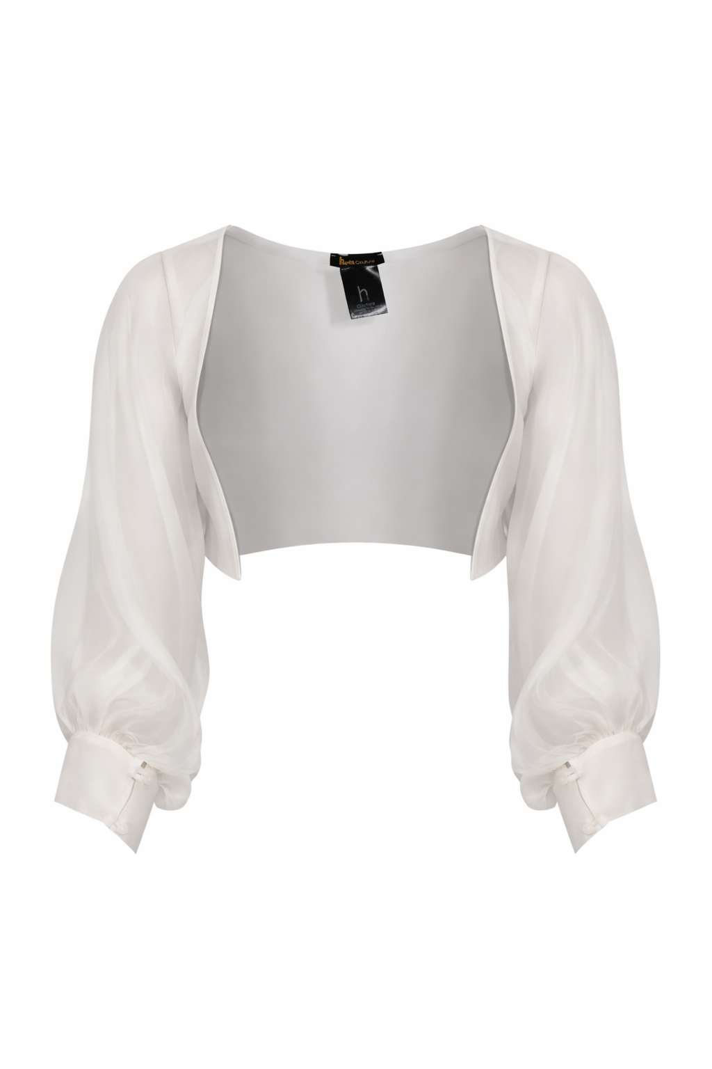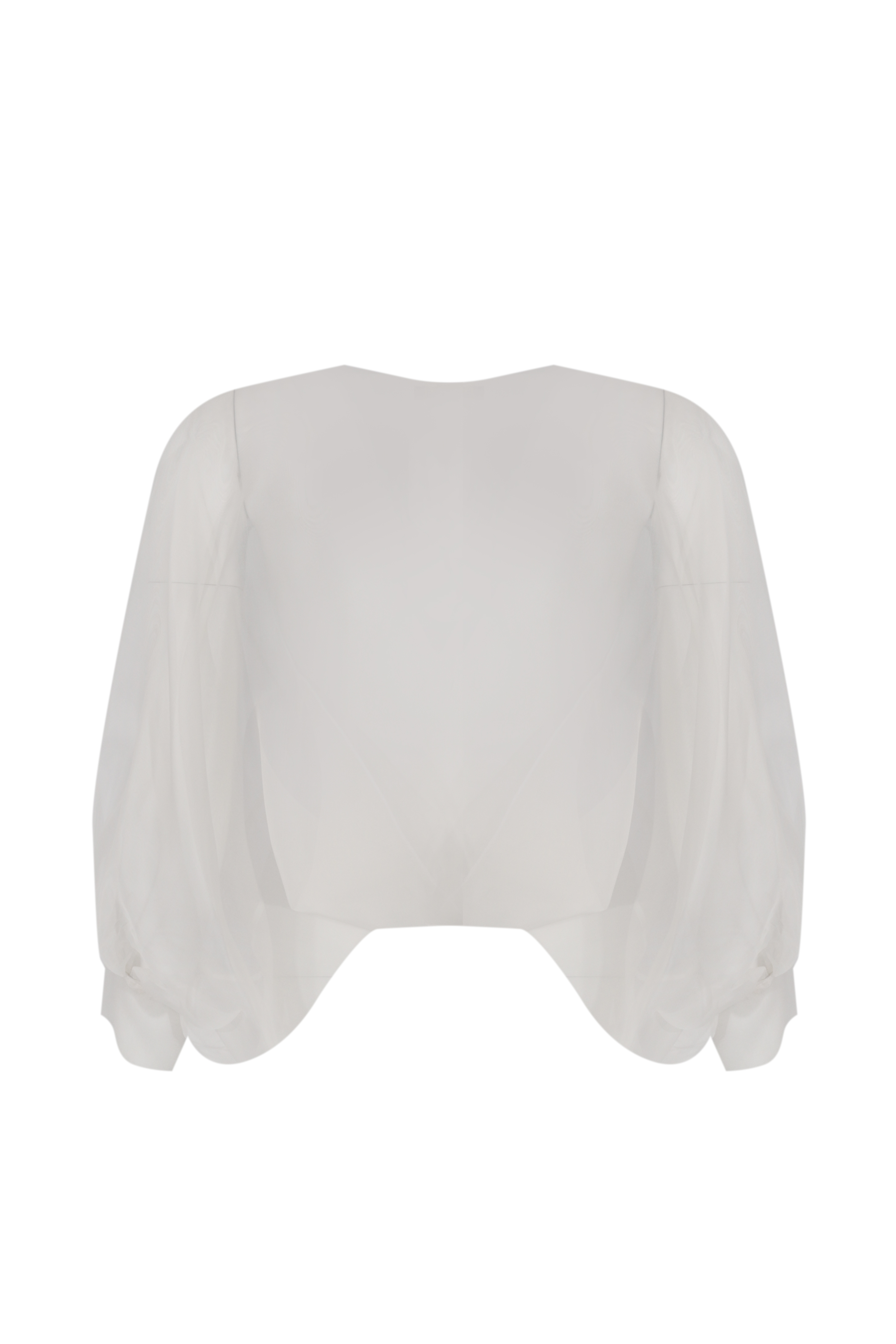 - Dettagli: design corto coprispalle, tessuto trasparente e fluido, maniche voluminose con arricciatura al polso, linea elegante e delicata