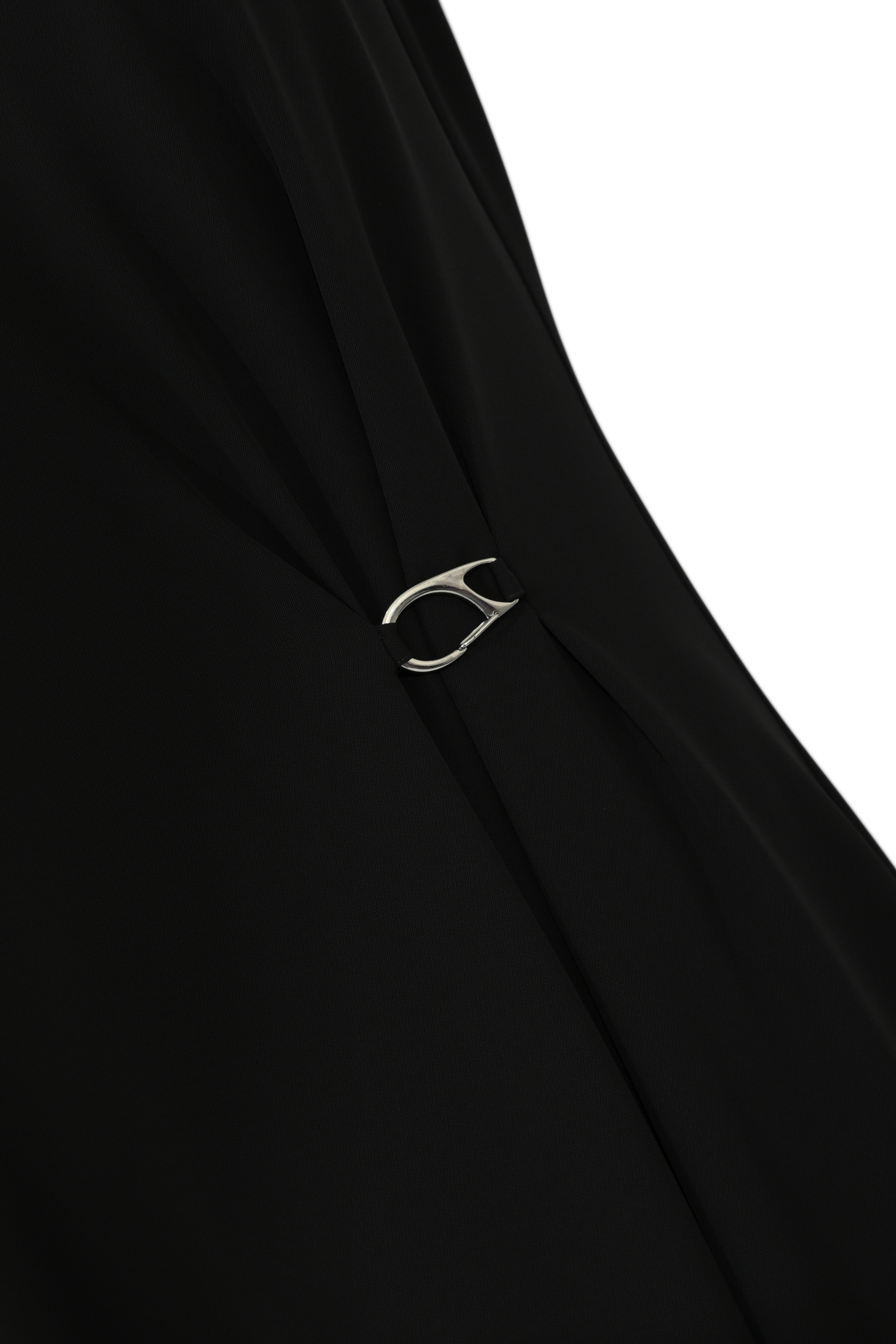 - Dettagli: gancio moschettone decorativo in metallo sul fianco, spacco laterale sul fondo
