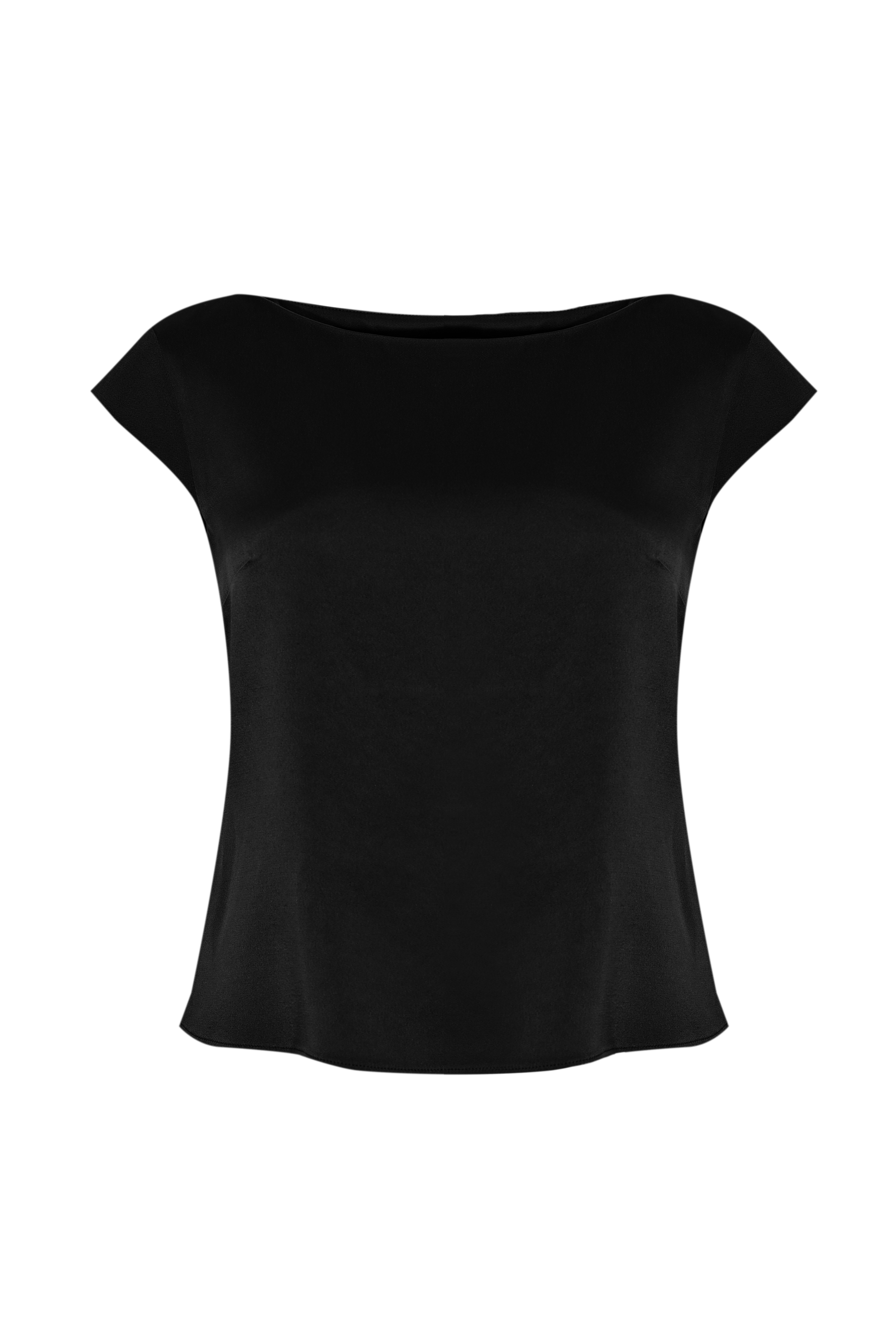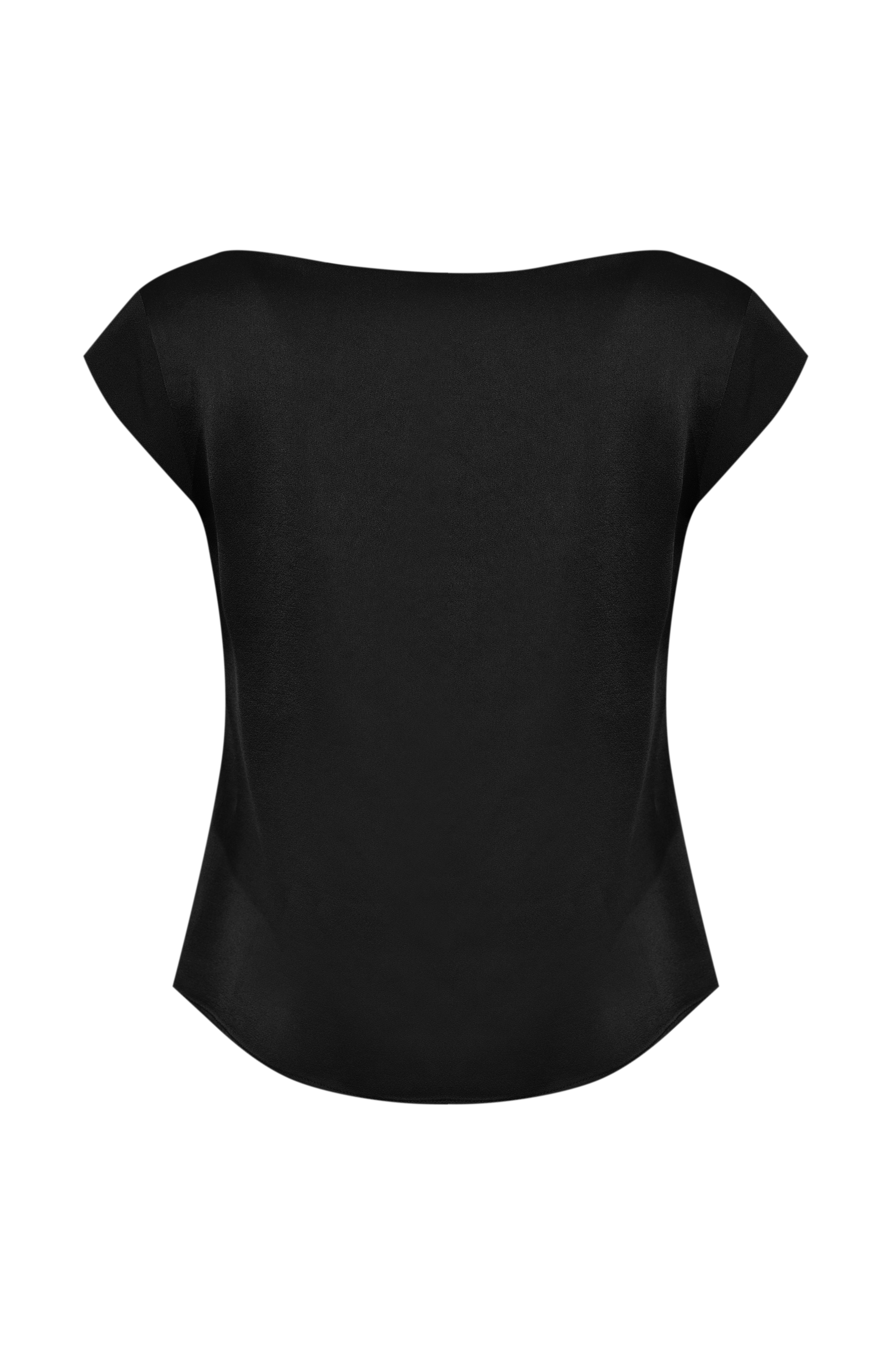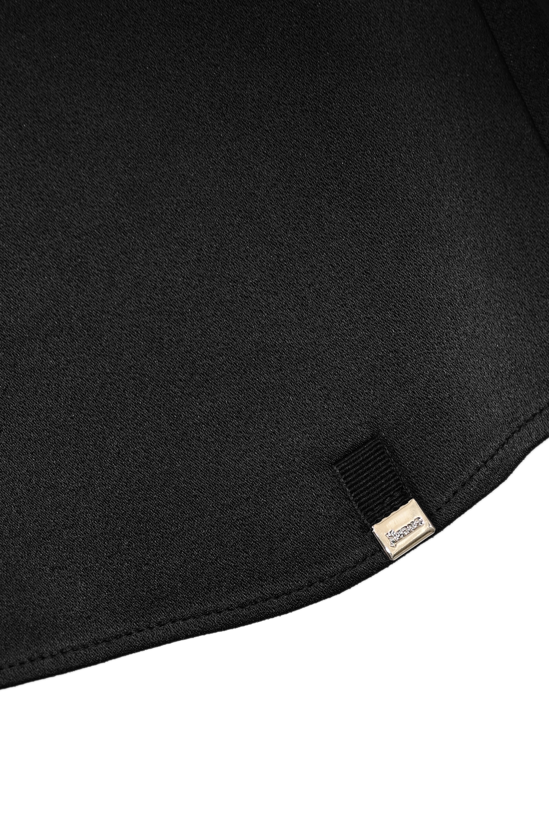 - Dettagli: finitura lucida, taglio leggermente svasato, tessuto fluido con mano setosa, logo metallico applicato sul fondo