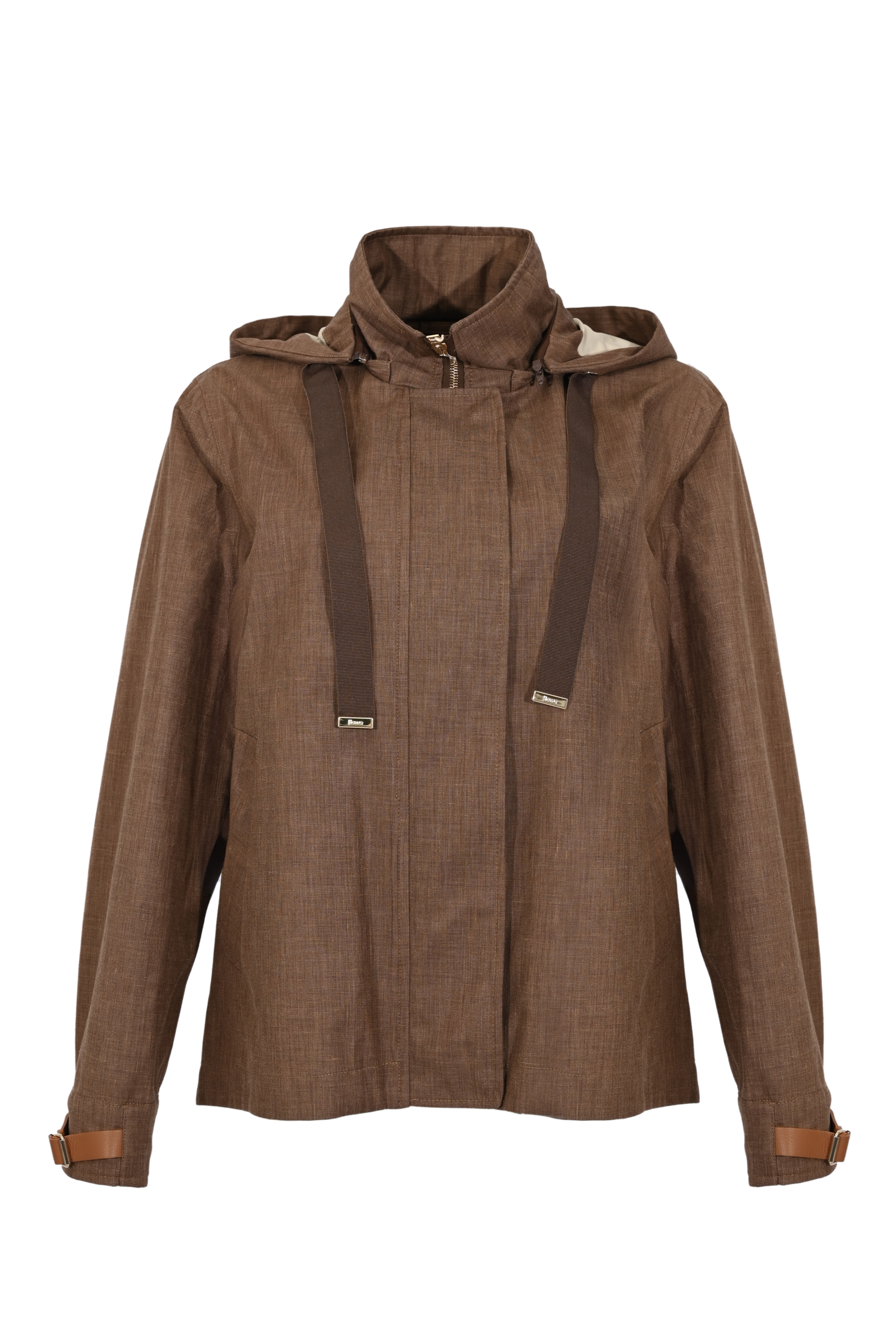 - Dettagli: coulisse al cappuccio, cinturini regolabili ai polsi con fibbia, impunture tono su tono, placchetta logo sul retro