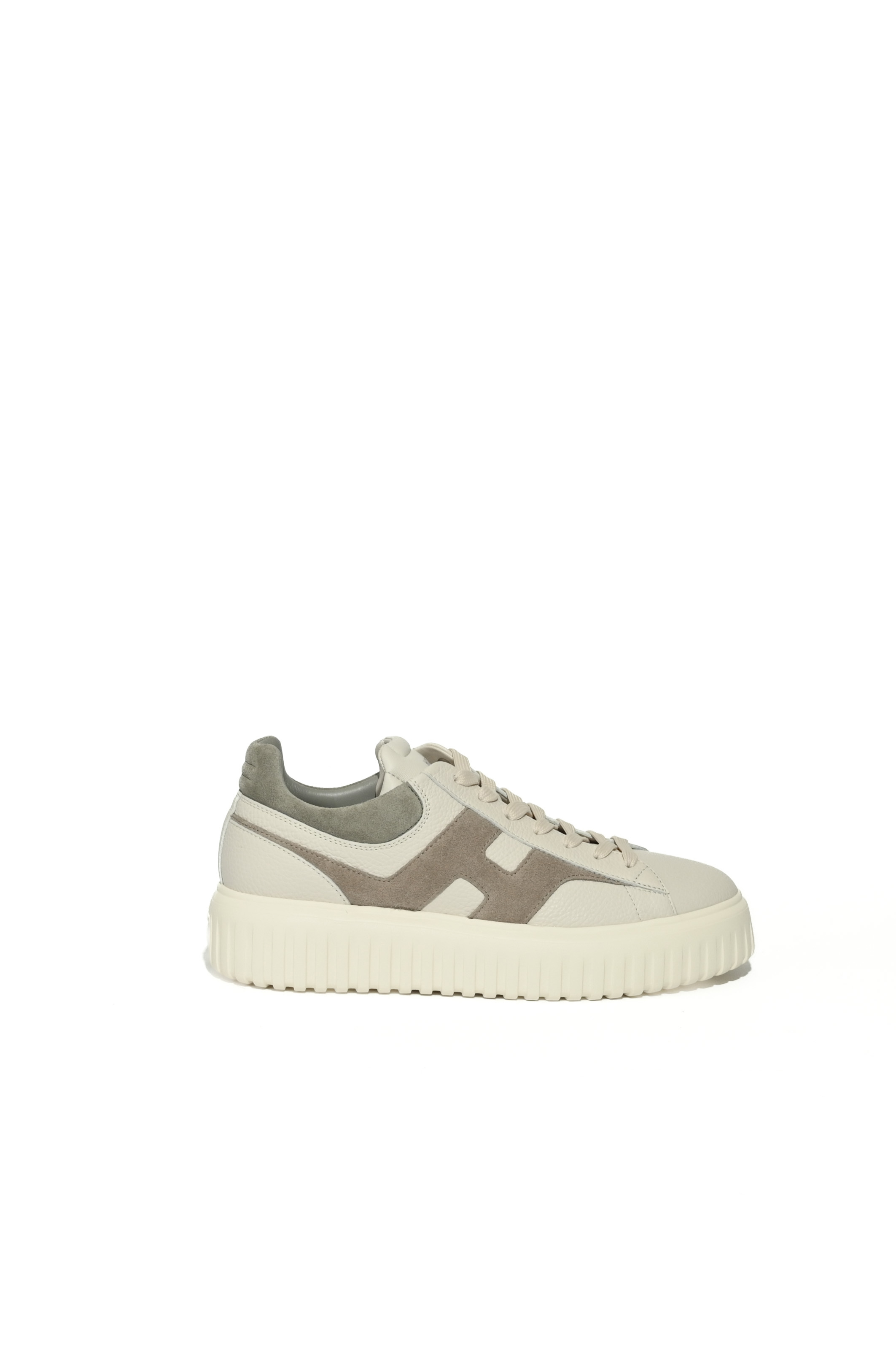 - Tomaia: pelle e suede nei toni del beige con iconica H laterale a contrasto in suede