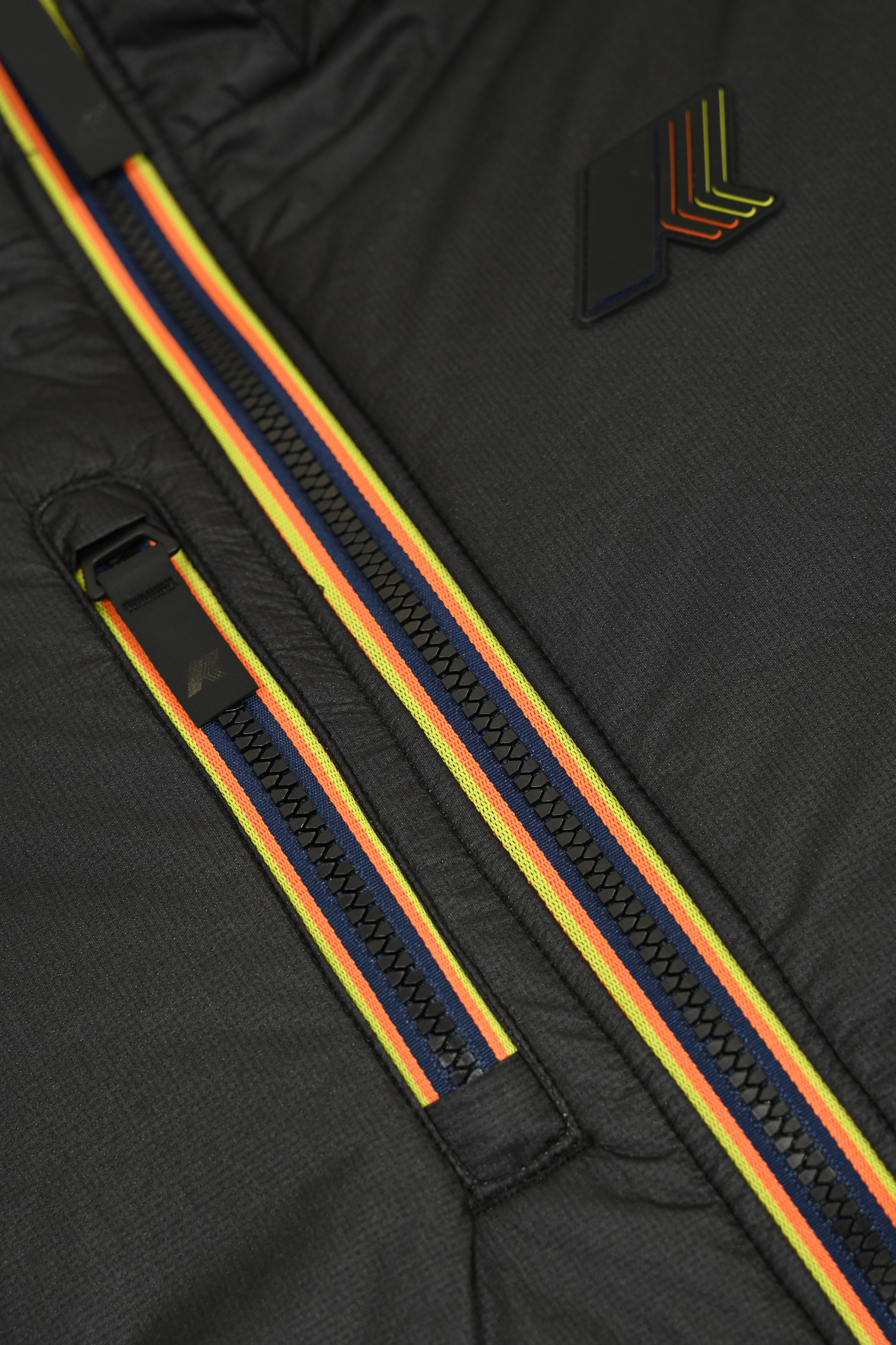 - Chiusura: zip frontale a doppio cursore con profili multicolor