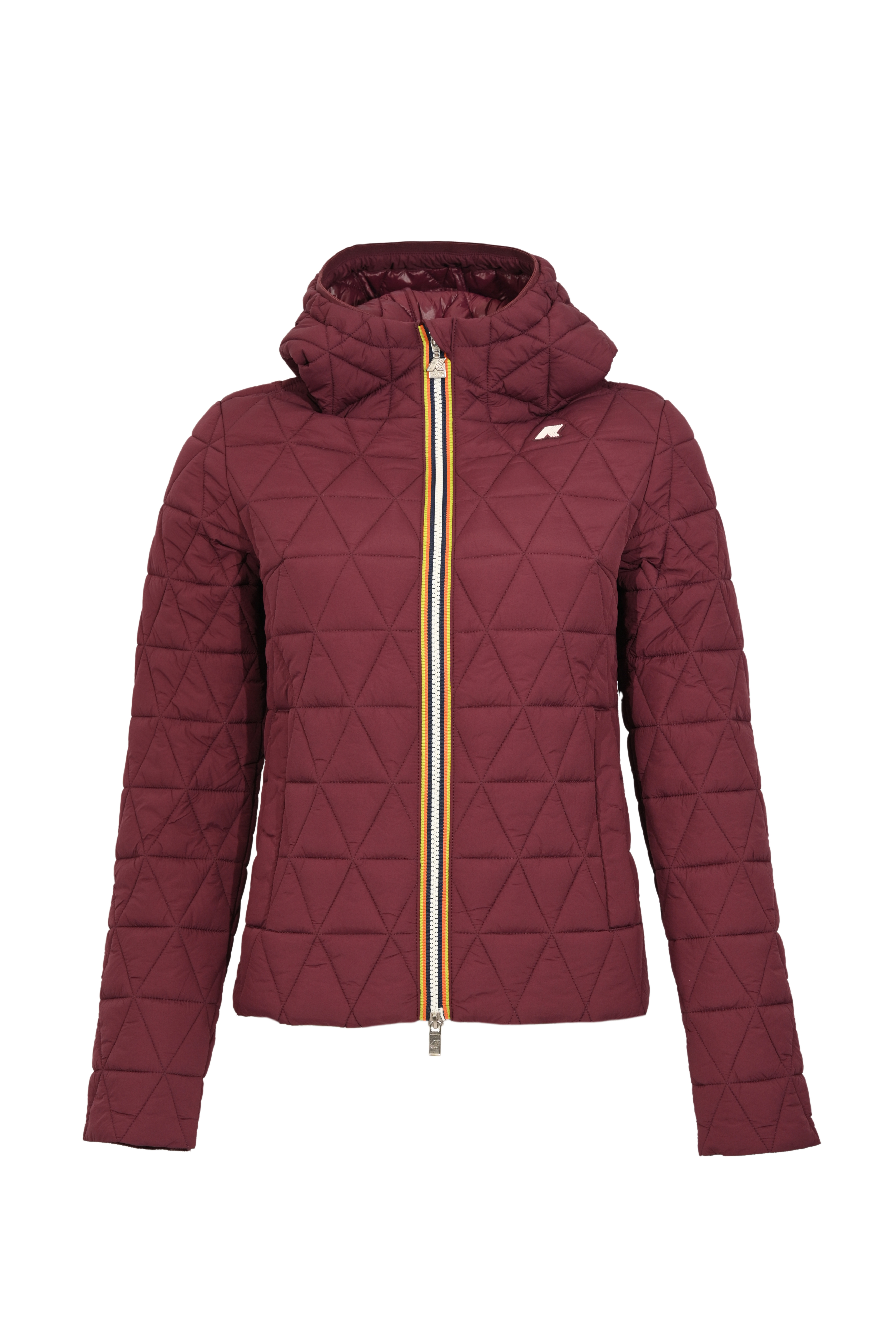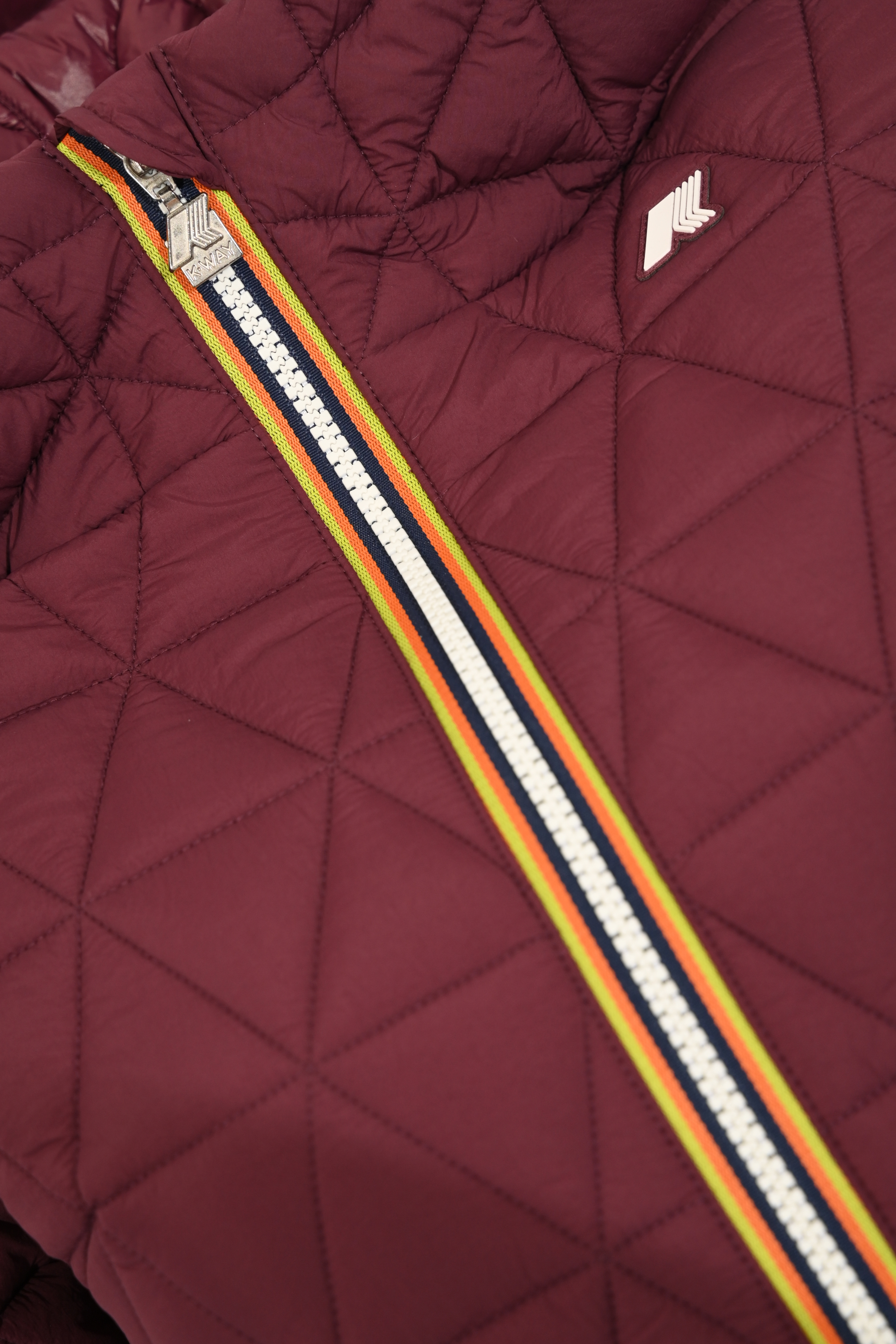 - Dettagli: trapuntatura a motivo geometrico, zip con profili multicolor, logo applicato sul petto