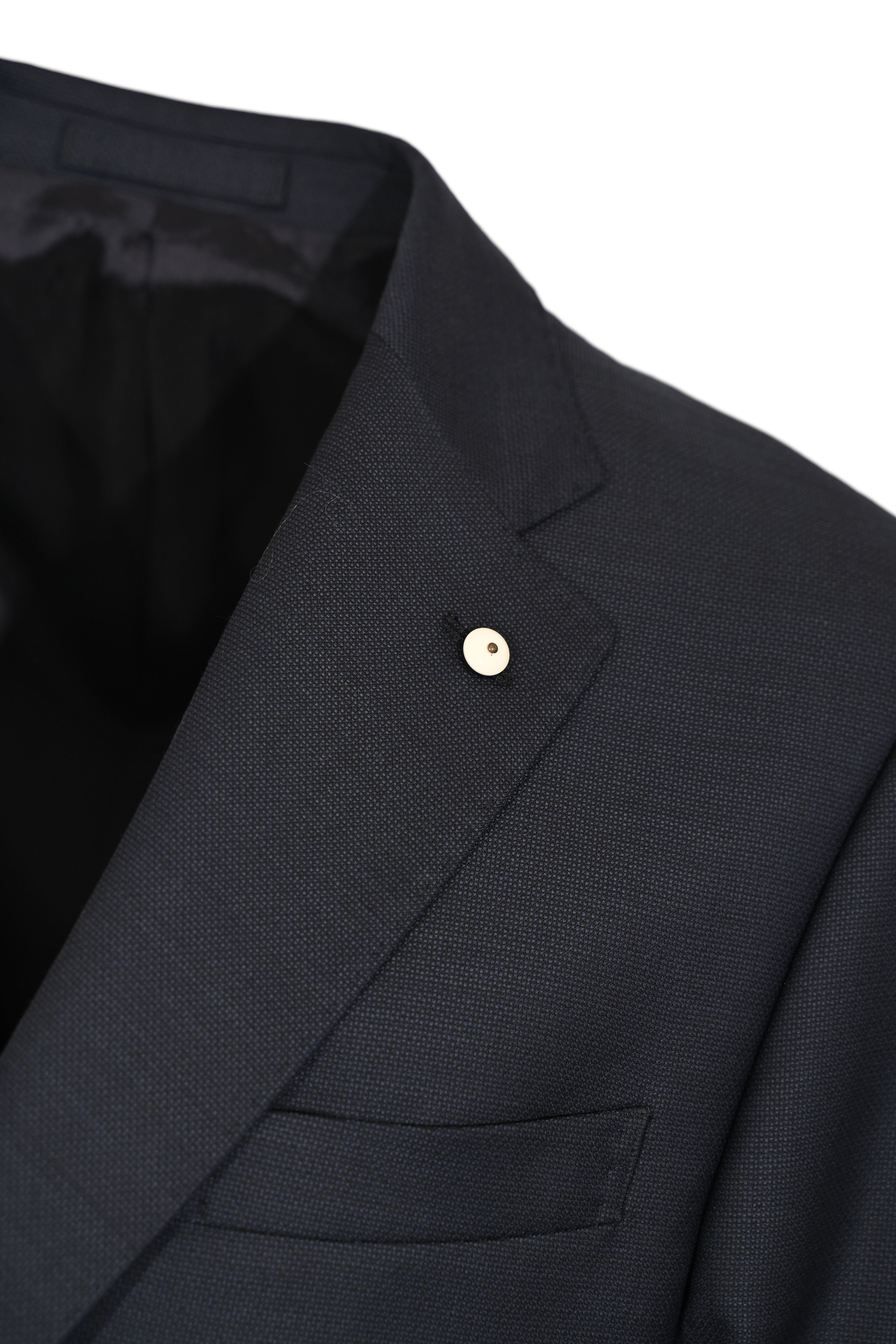 - Dettagli: Spilla logata sul revers, doppio spacco sul retro, cuciture sartoriali a vista