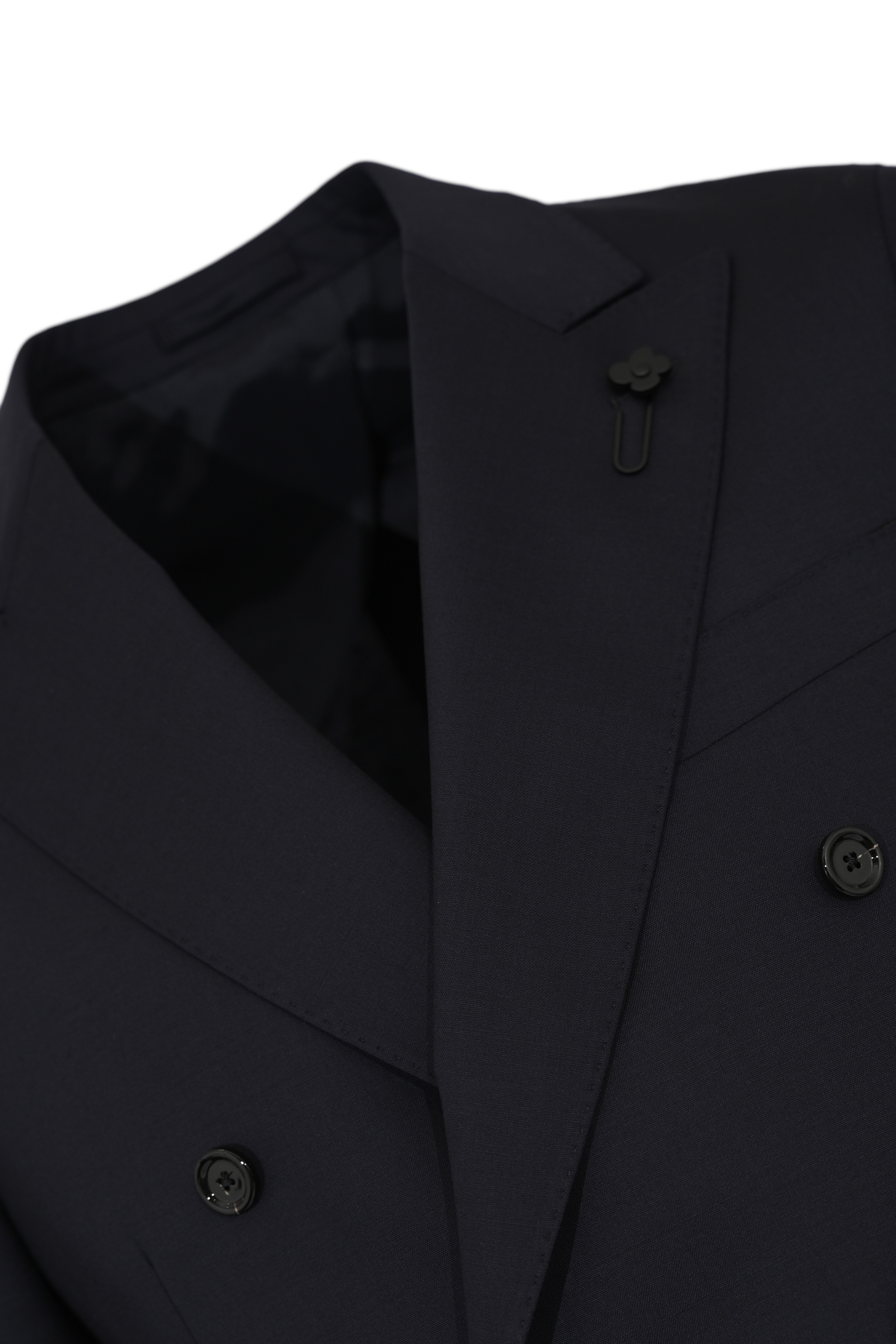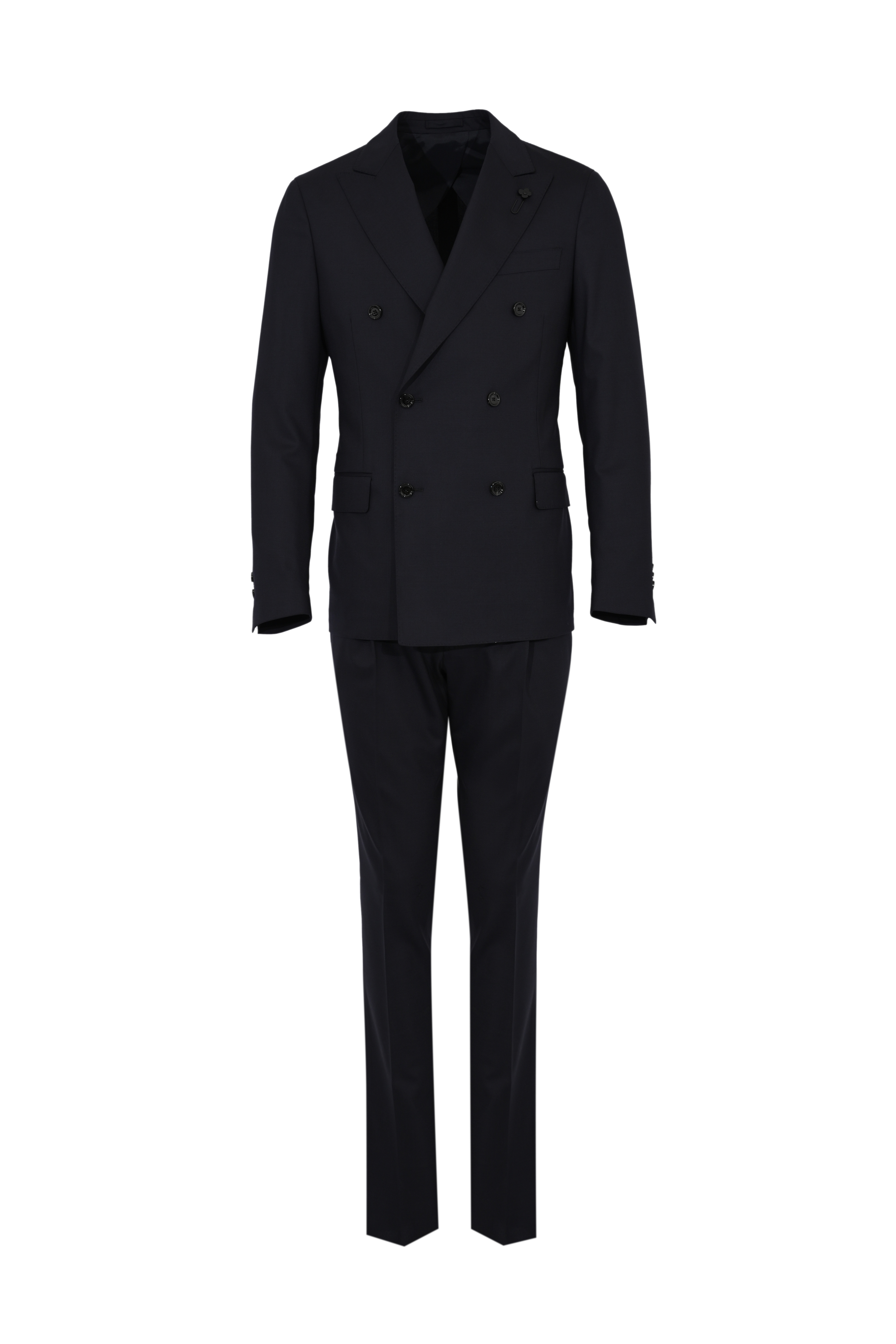 - Dettagli: spilla iconica Lardini al rever, pantalone con piega frontale e chiusura con zip e bottone