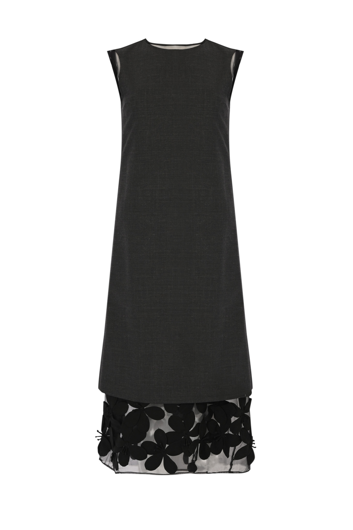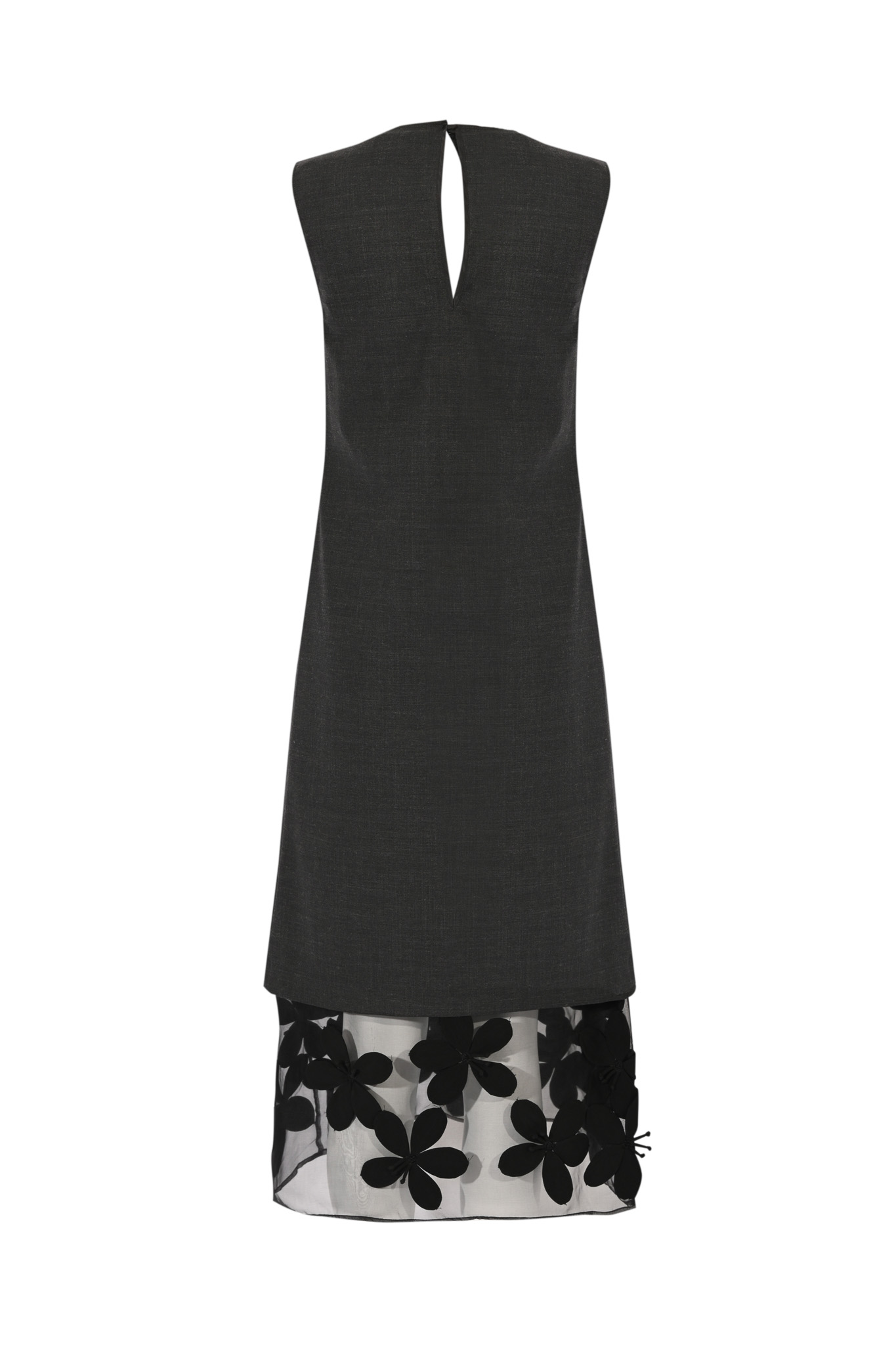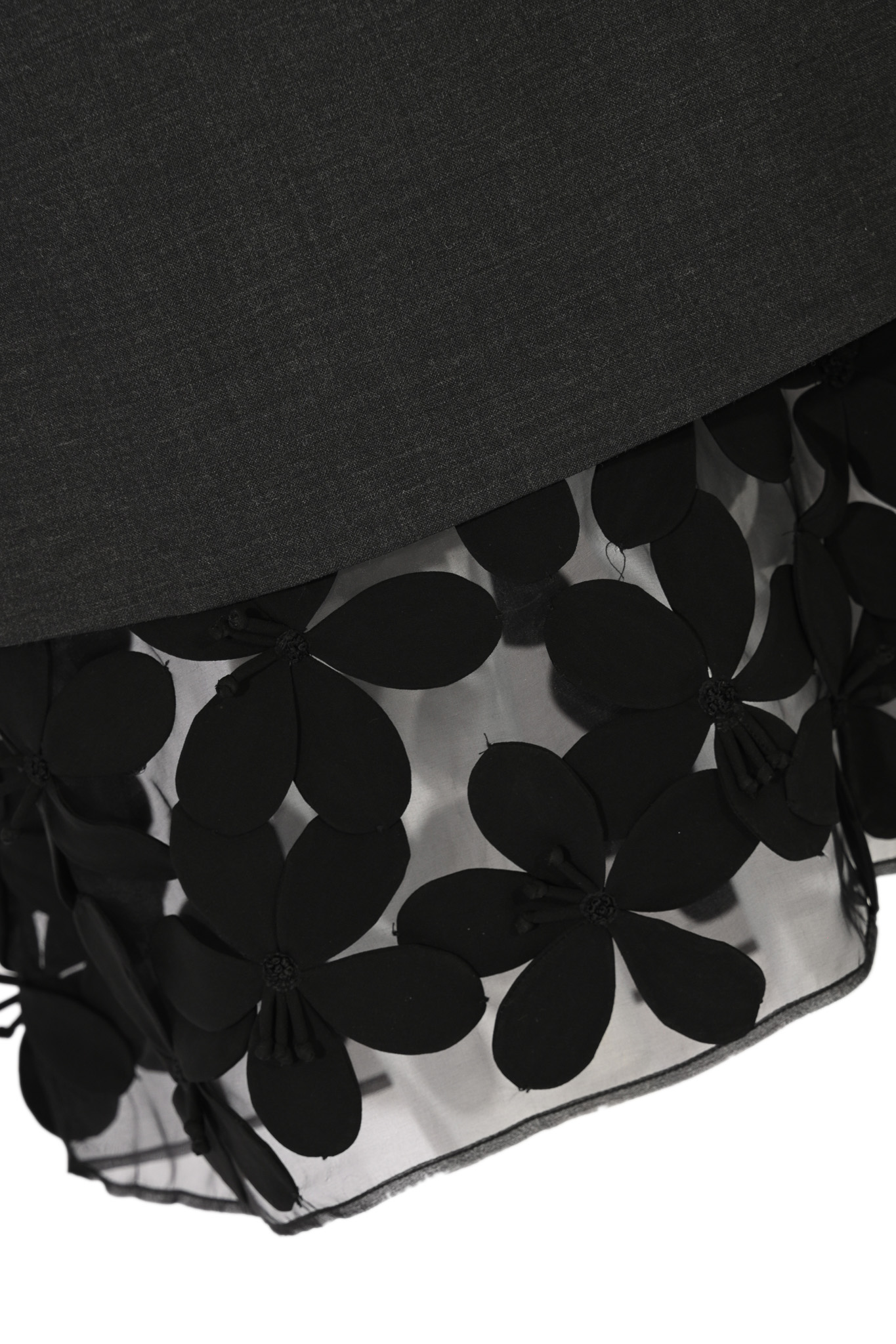 - Dettagli: Gonna con pannello inferiore della fodera interna in organza trasparente ricamata con fiori tridimensionali, linea svasata e taglio dritto sulla parte superiore