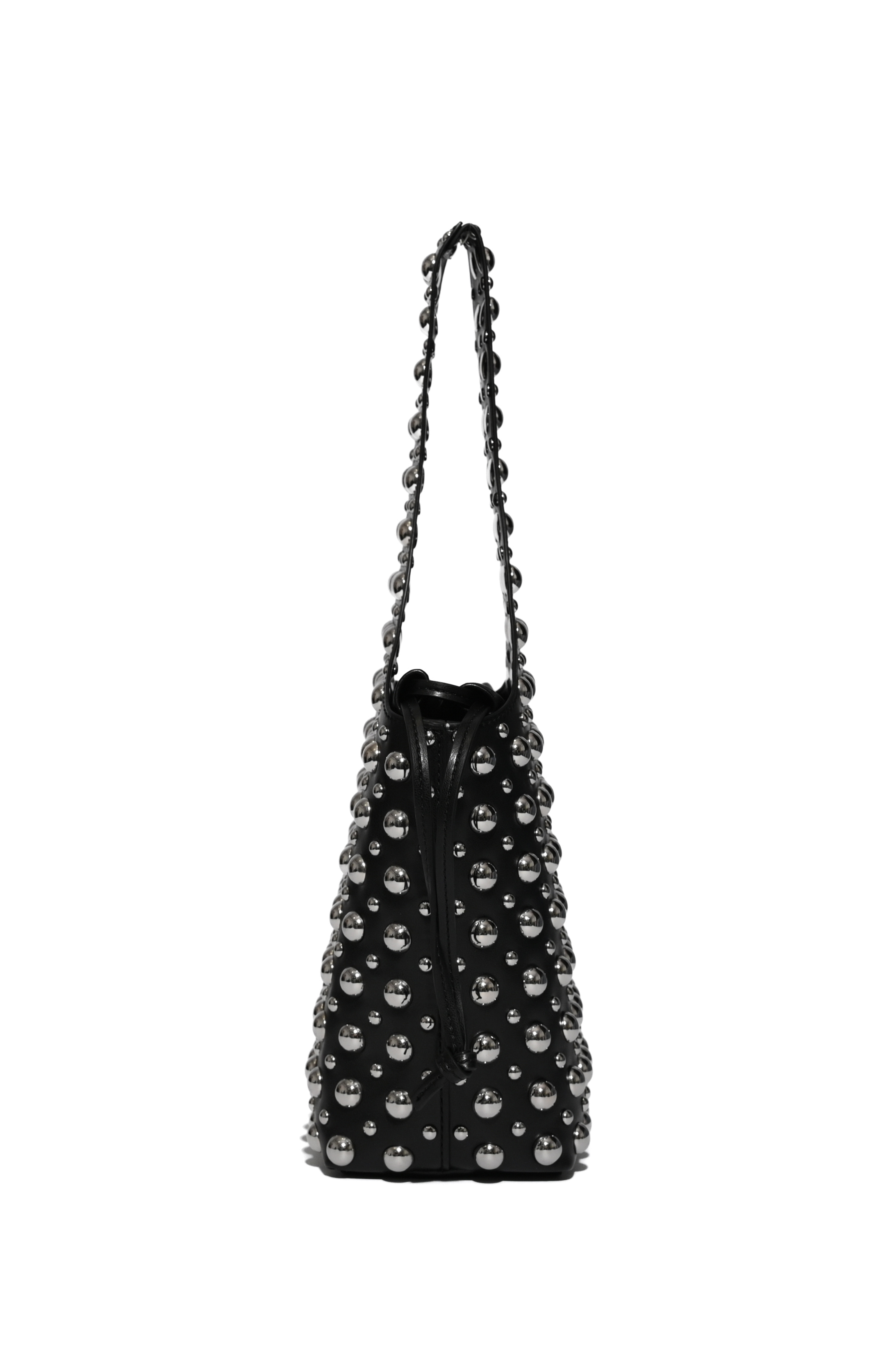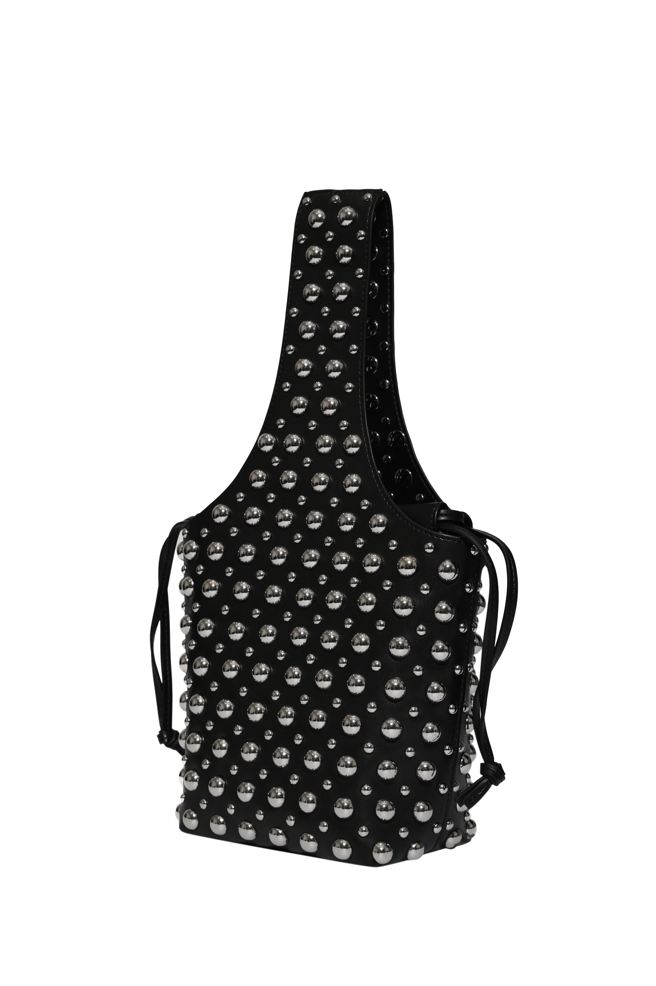 - Dettagli: applicazioni di borchie in metallo, cuciture a vista