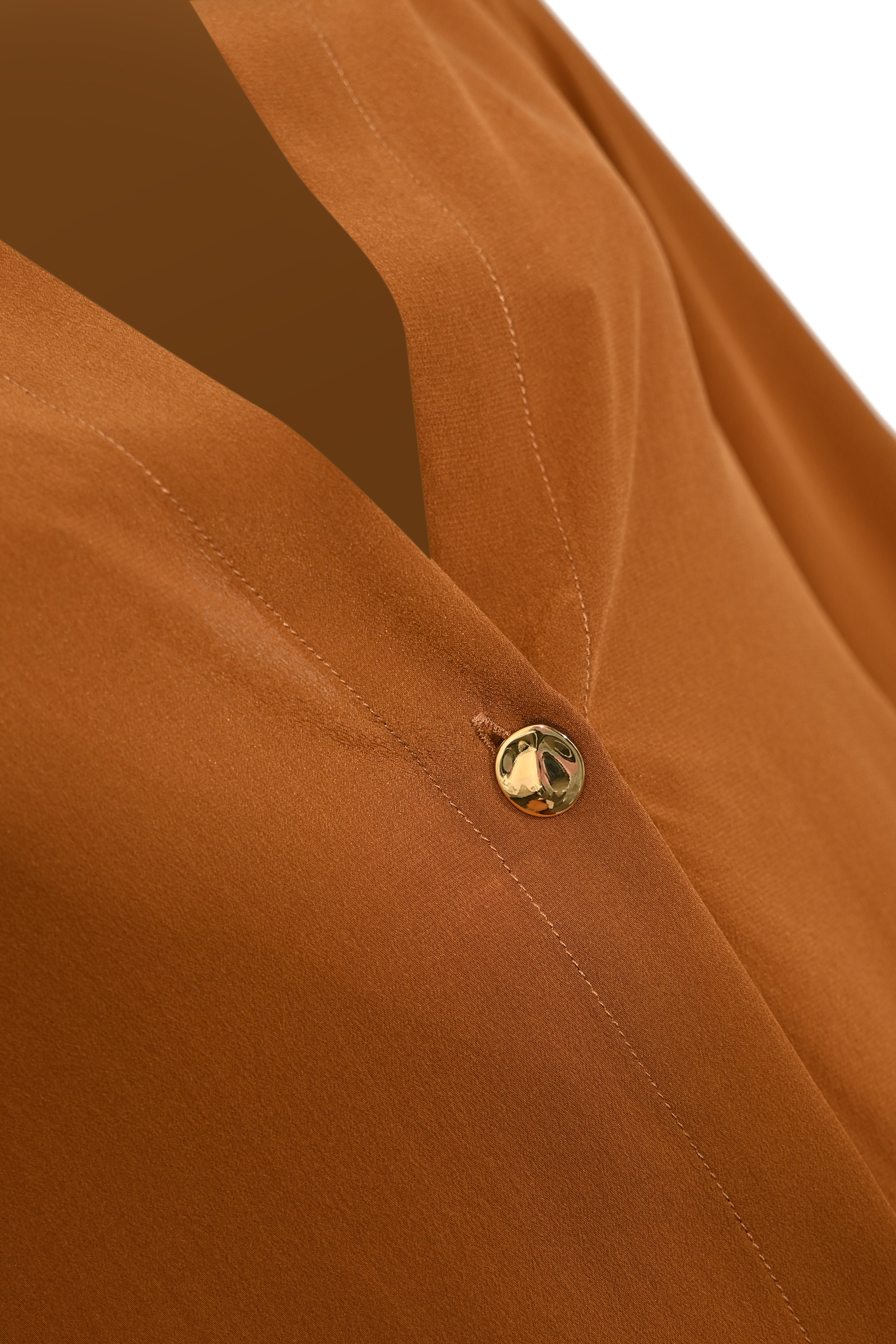 - Dettagli: taglio fluido, linea morbida, finiture sartoriali, lucentezza naturale del tessuto