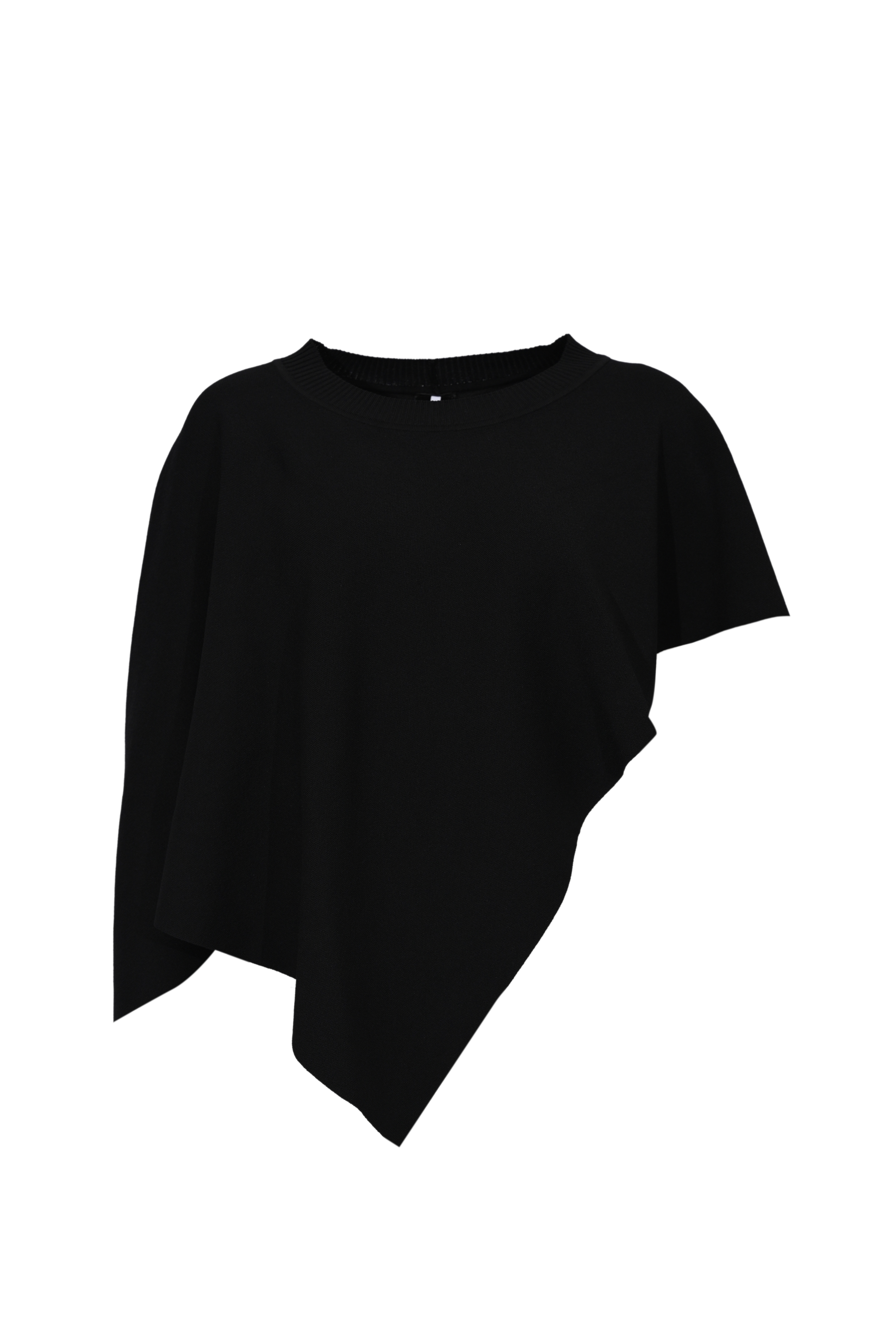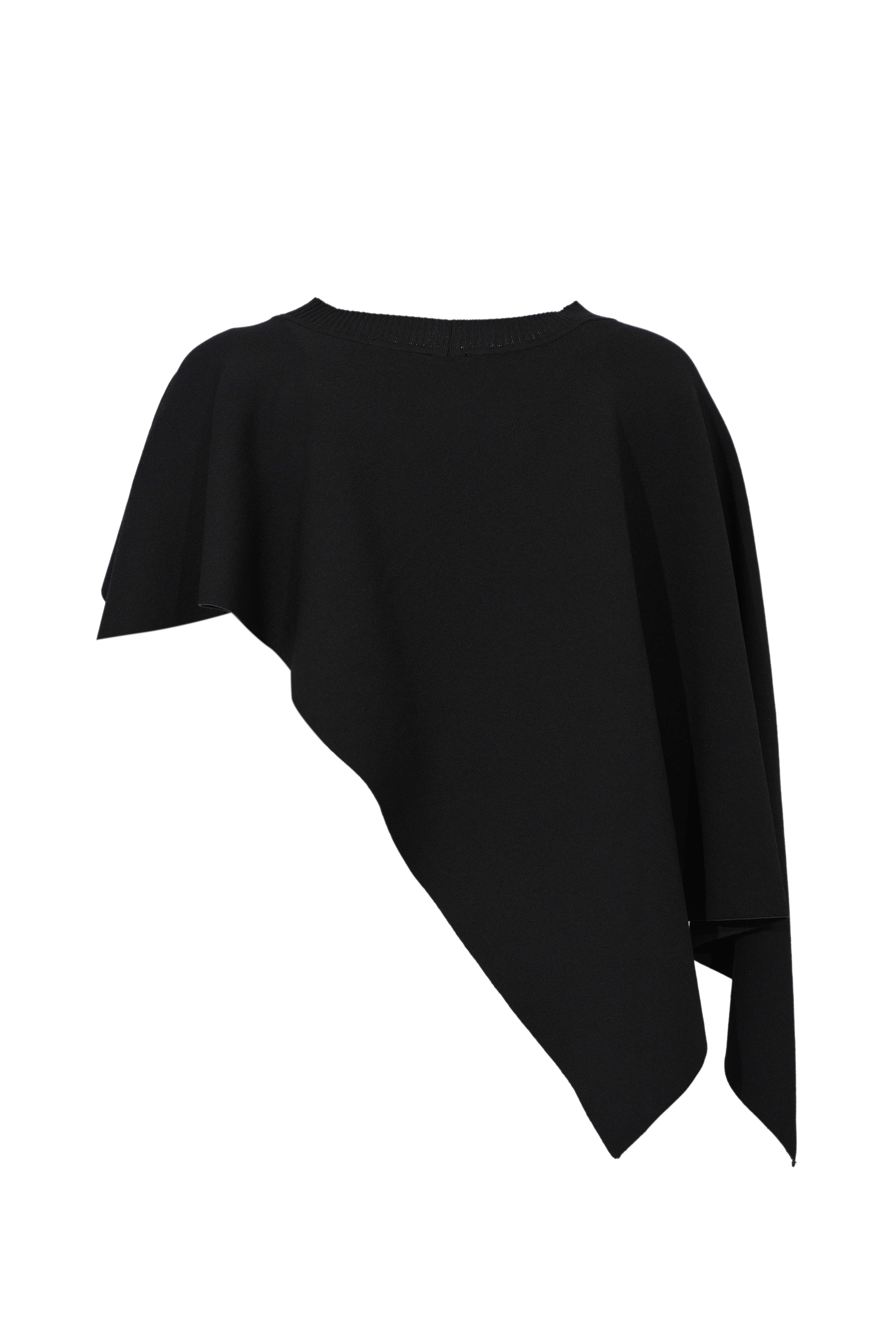 - Dettagli: linea ampia e fluida, fondo asimmetrico a punta, lavorazione a maglia compatta, design over