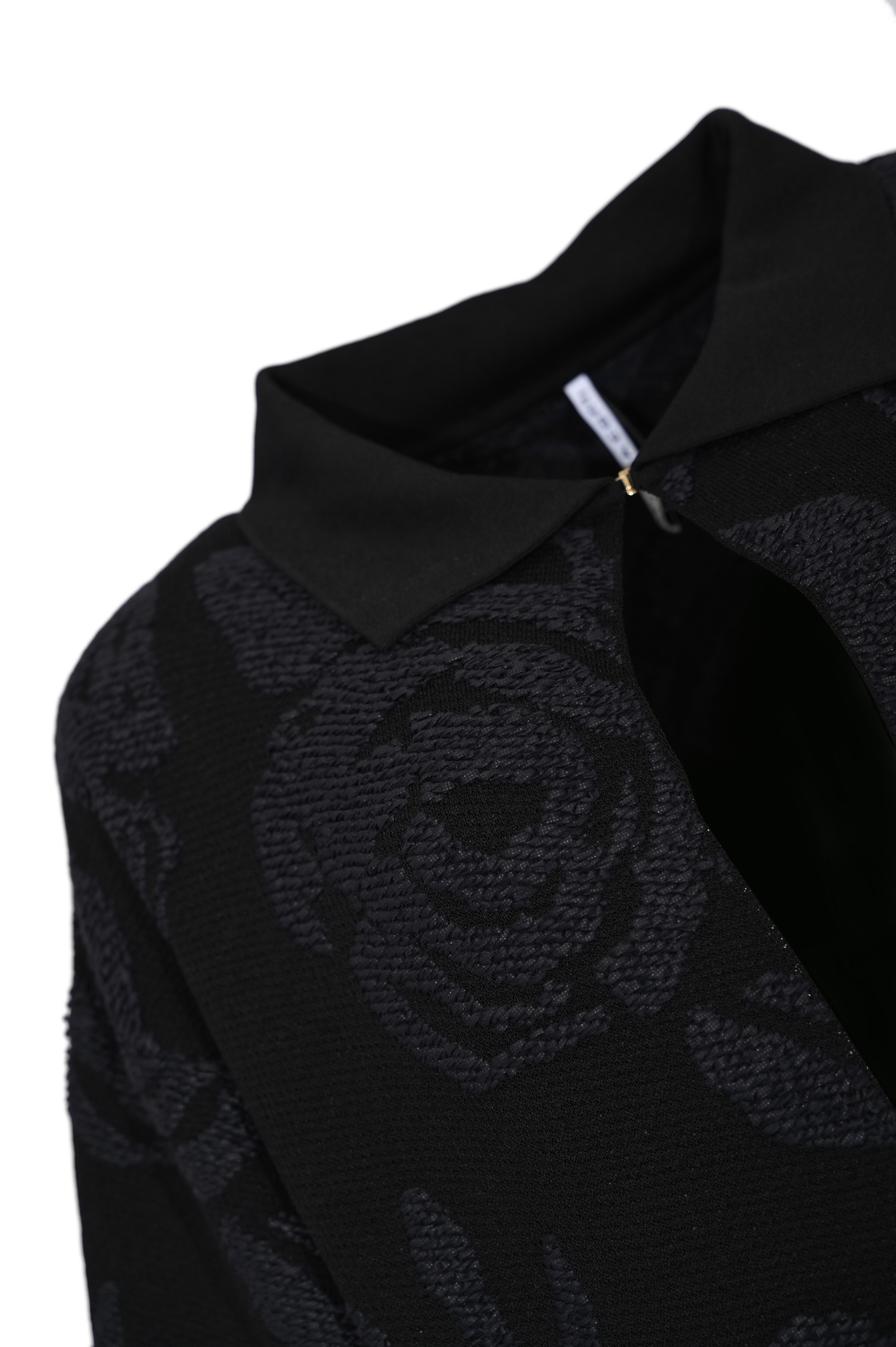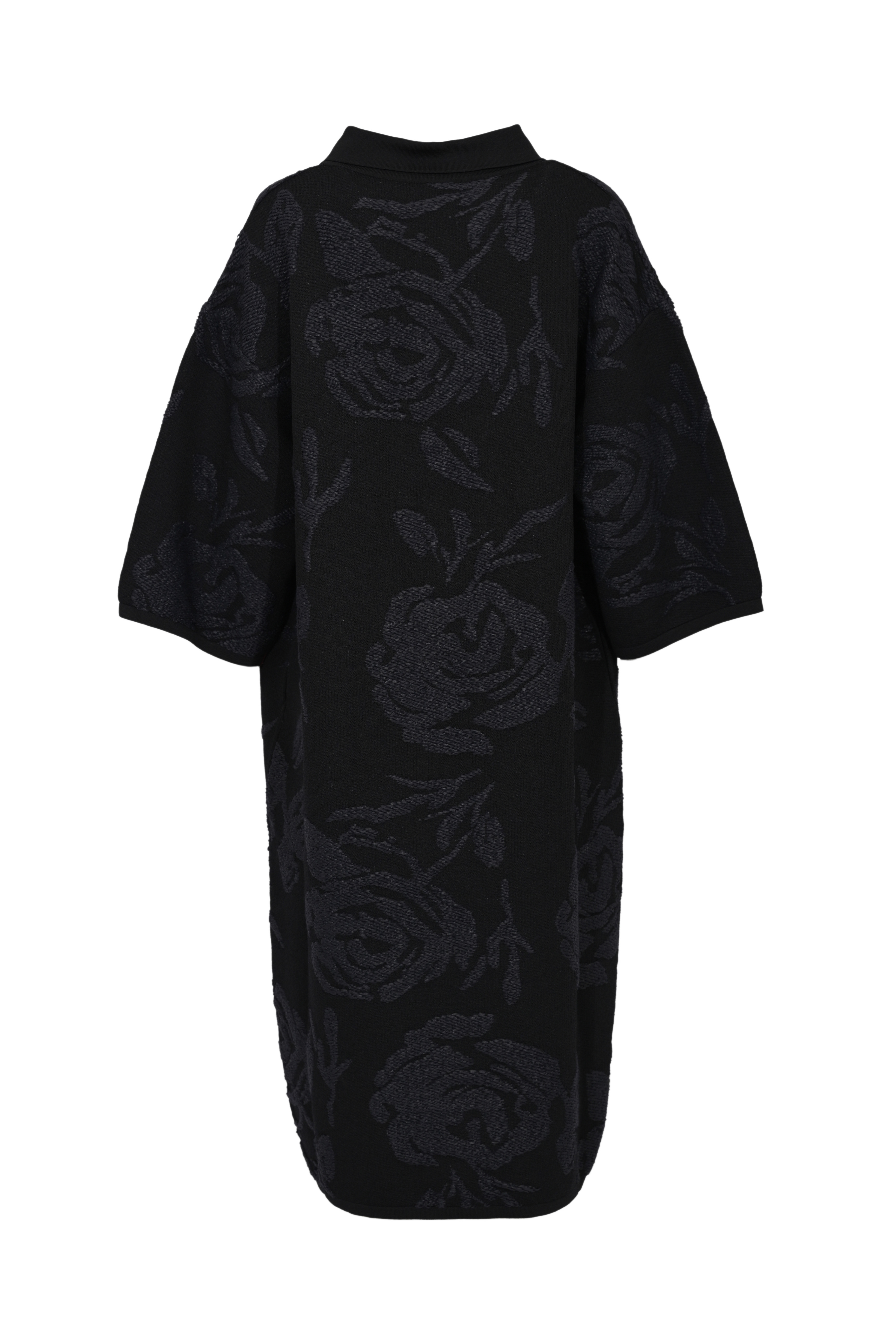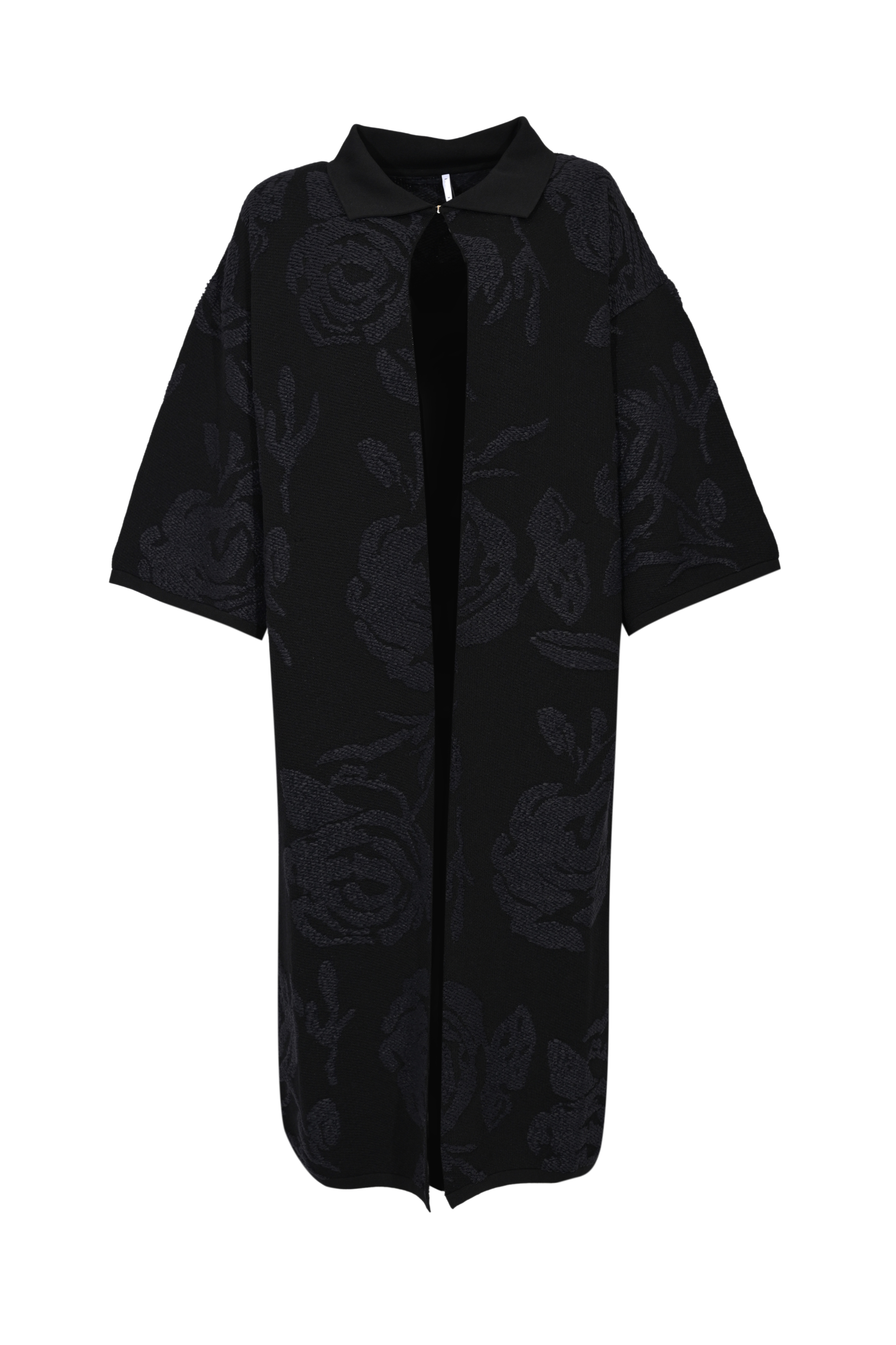 - Dettagli: lavorazione jacquard con motivo floreale in rilievo, linea dritta, spacchi laterali, finiture a contrasto sul collo