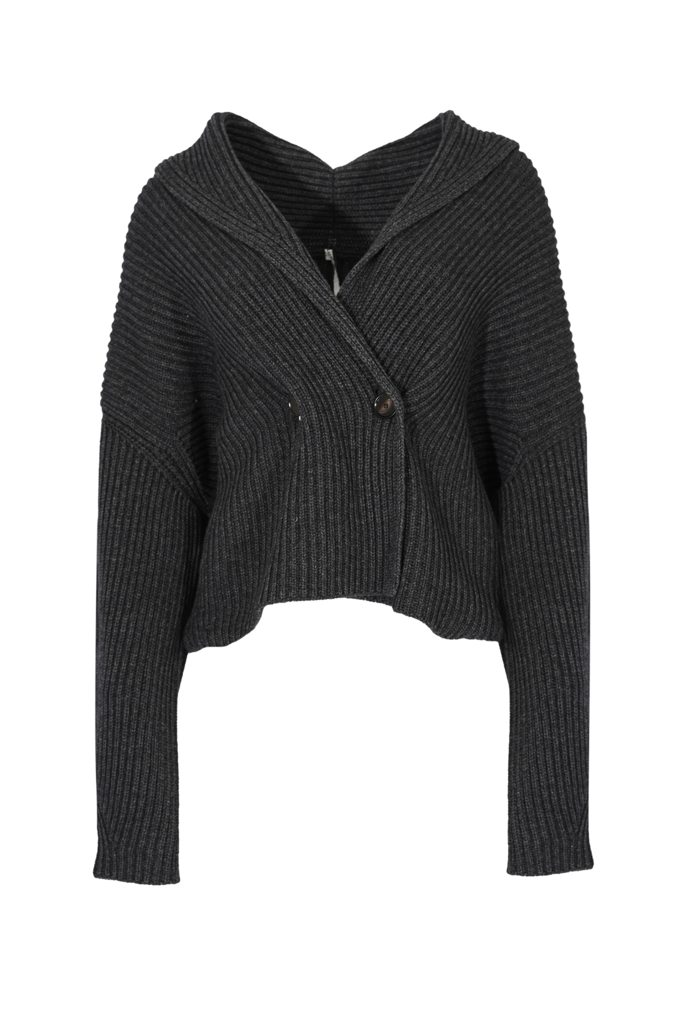 - Dettagli: Linea corta, spalle scese, taglio incrociato sul davanti, lavorazione a coste