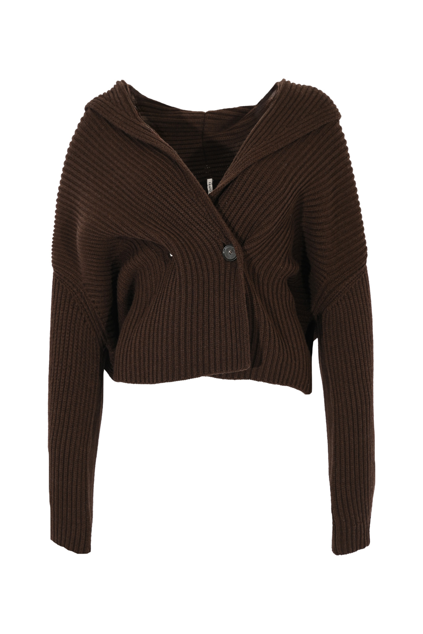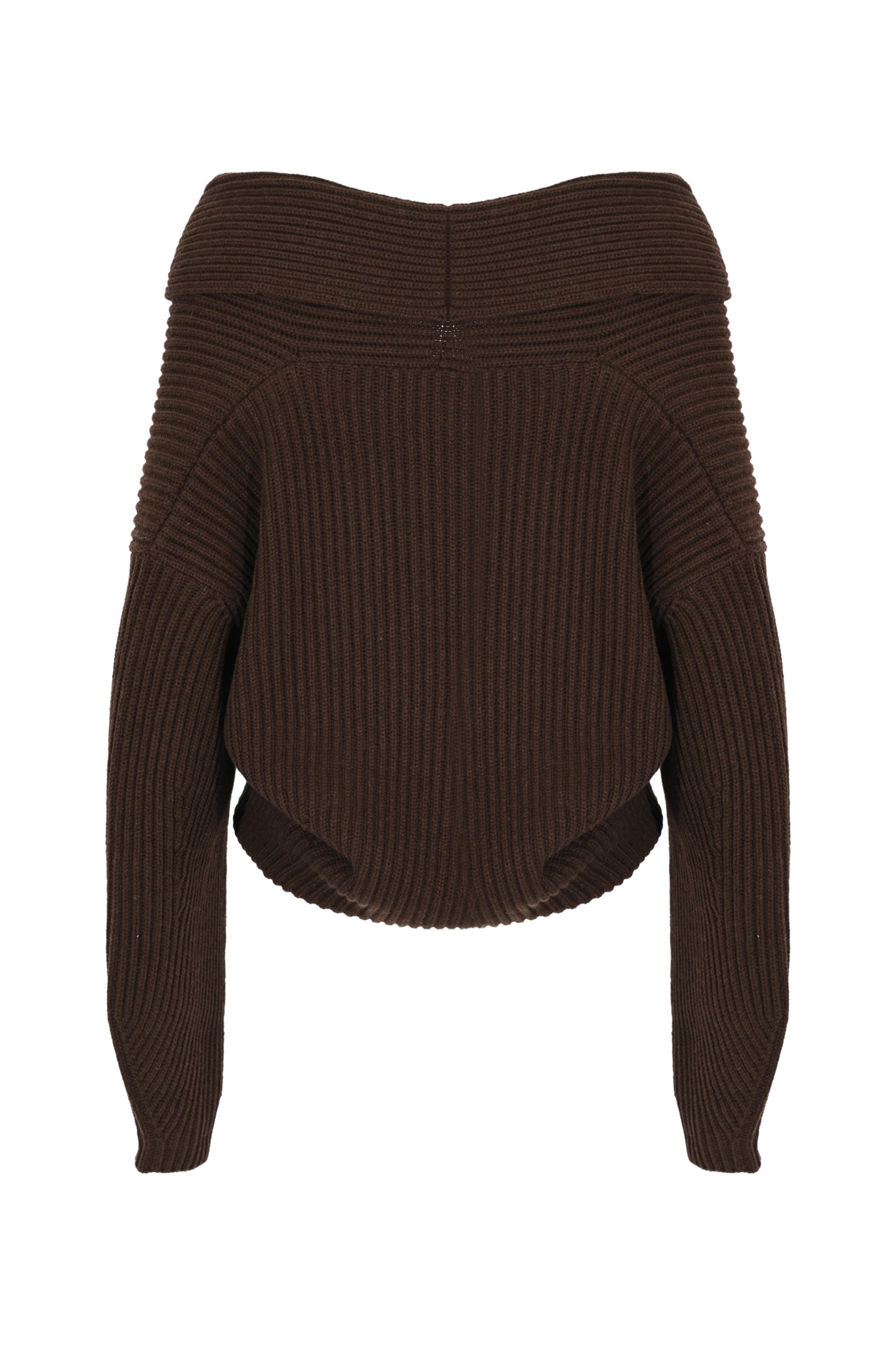 - Dettagli: Linea corta, spalle scese, taglio incrociato sul davanti, lavorazione a coste