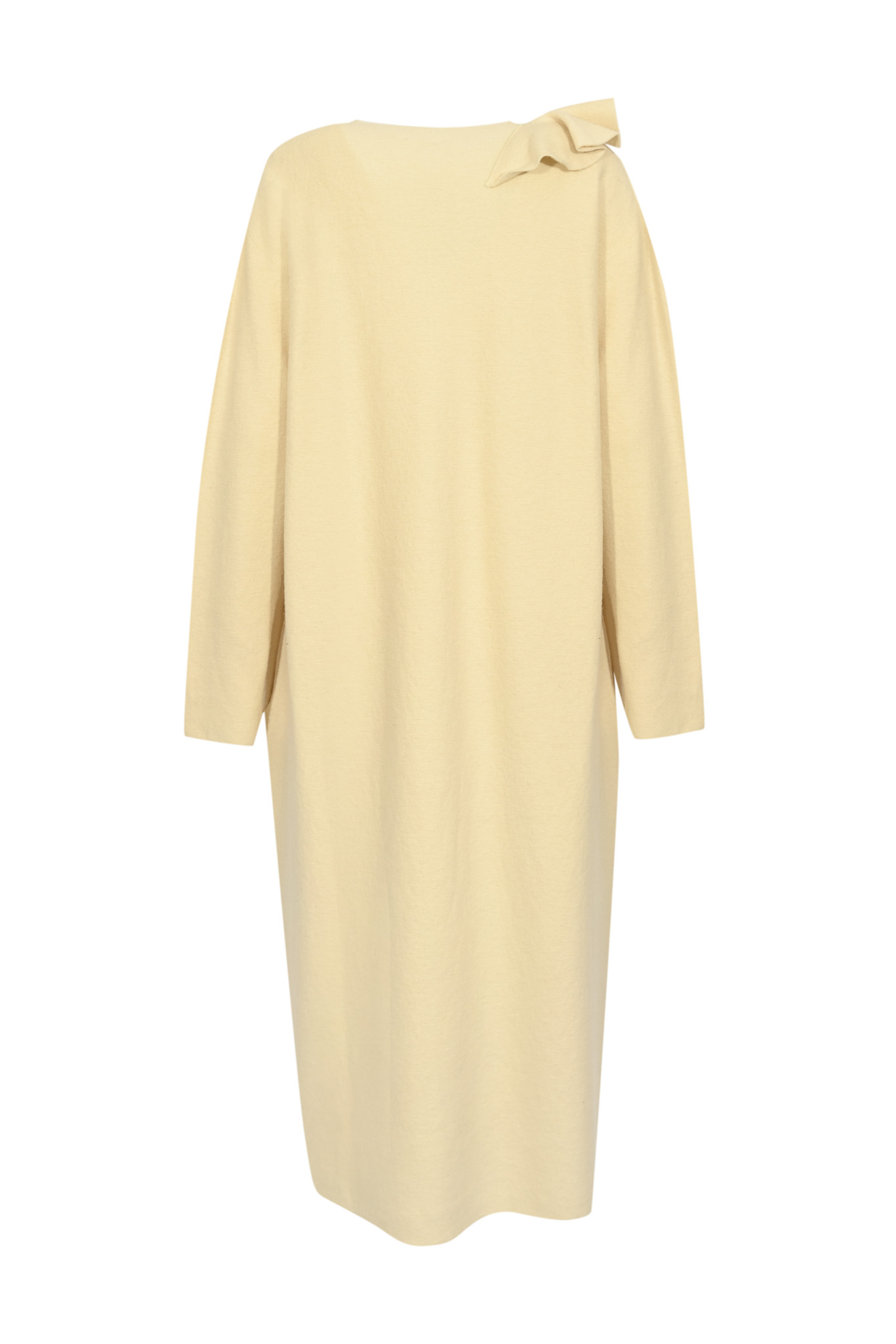 - Collo: girocollo con fiocco decorativo sulla spalla