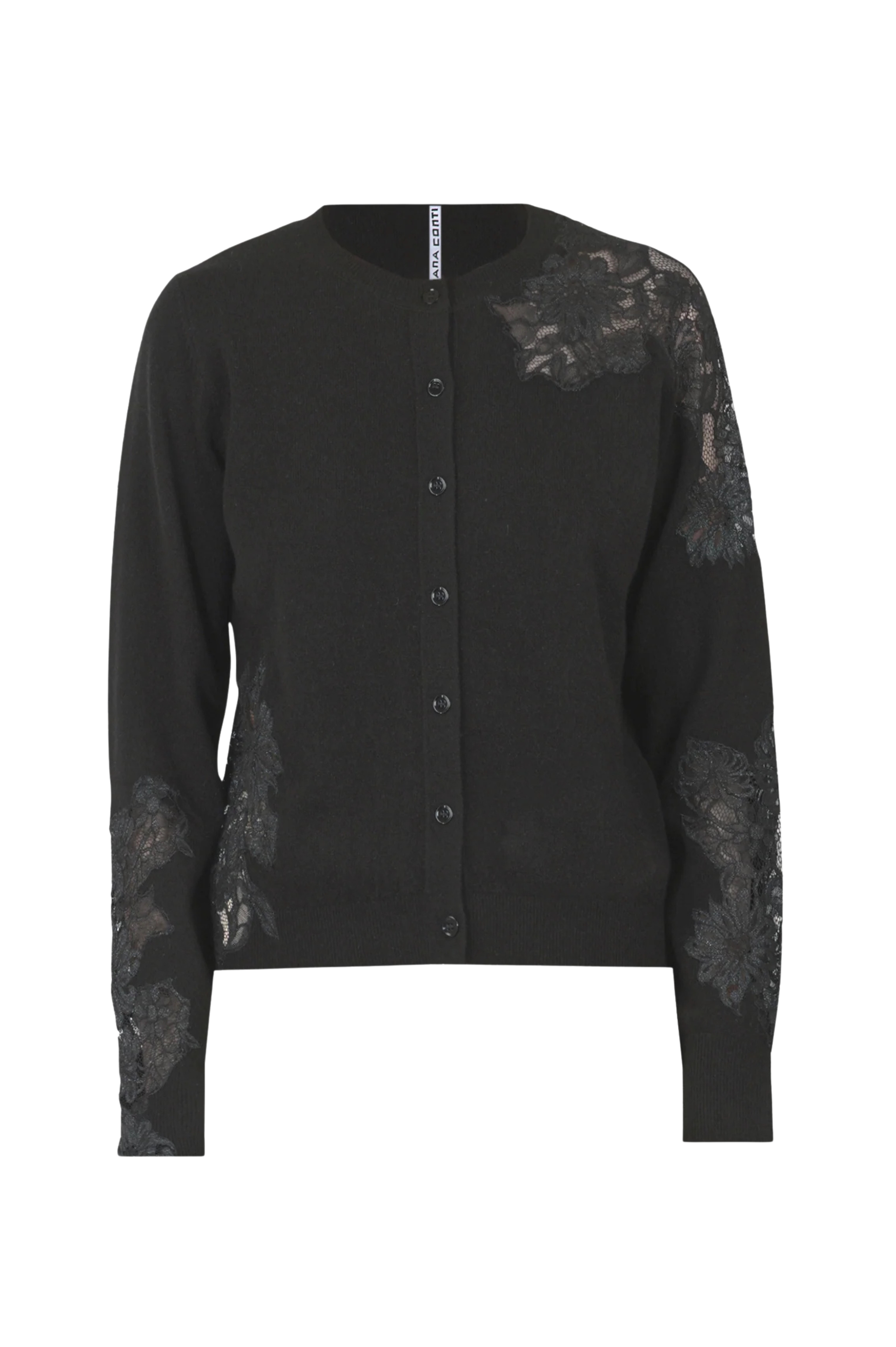 Cardigan da donna in lana con inserti in pizzo, Liviana Conti
