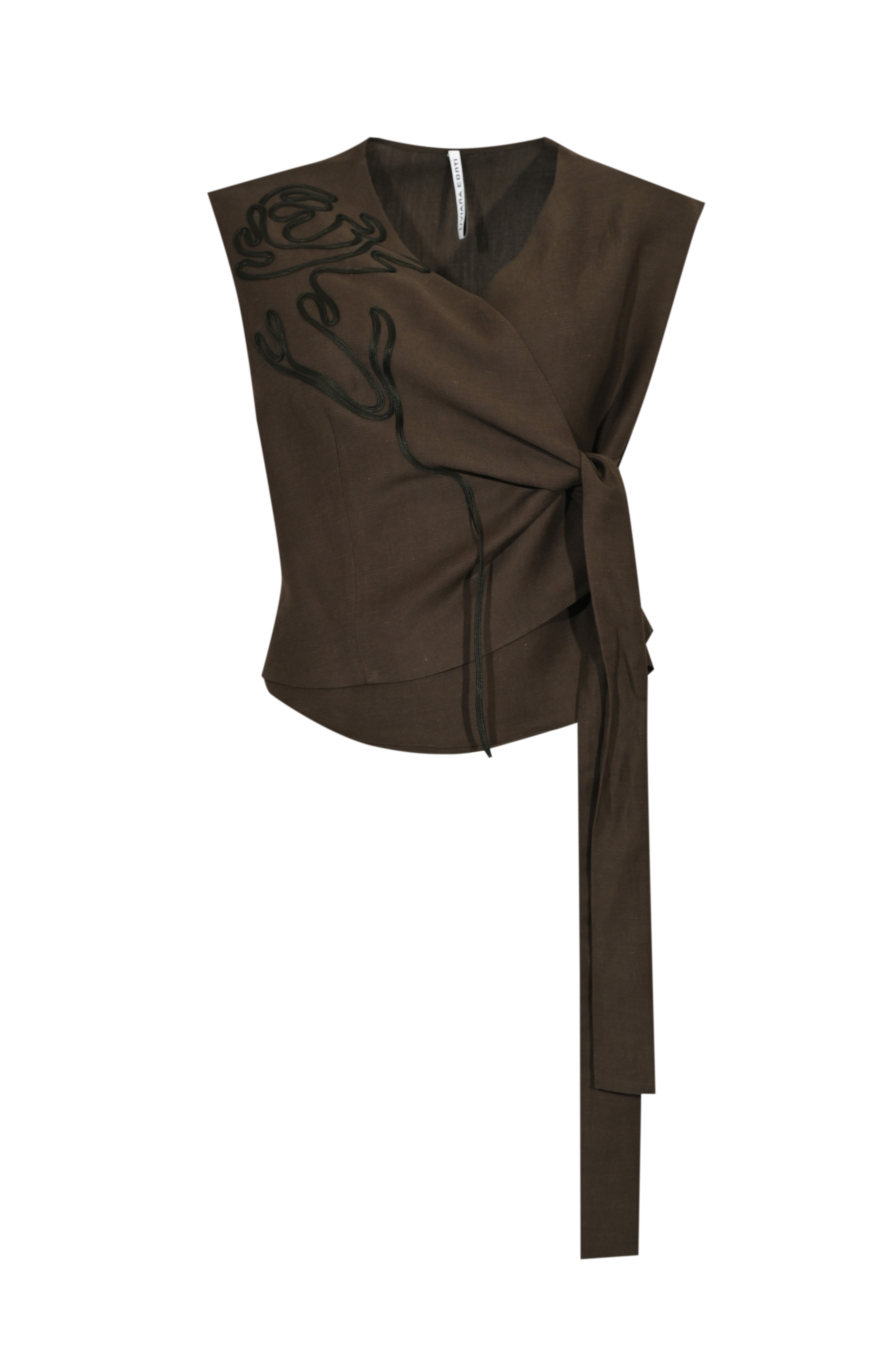 Gilet Timothy in misto viscosa e lino con disegno floreale