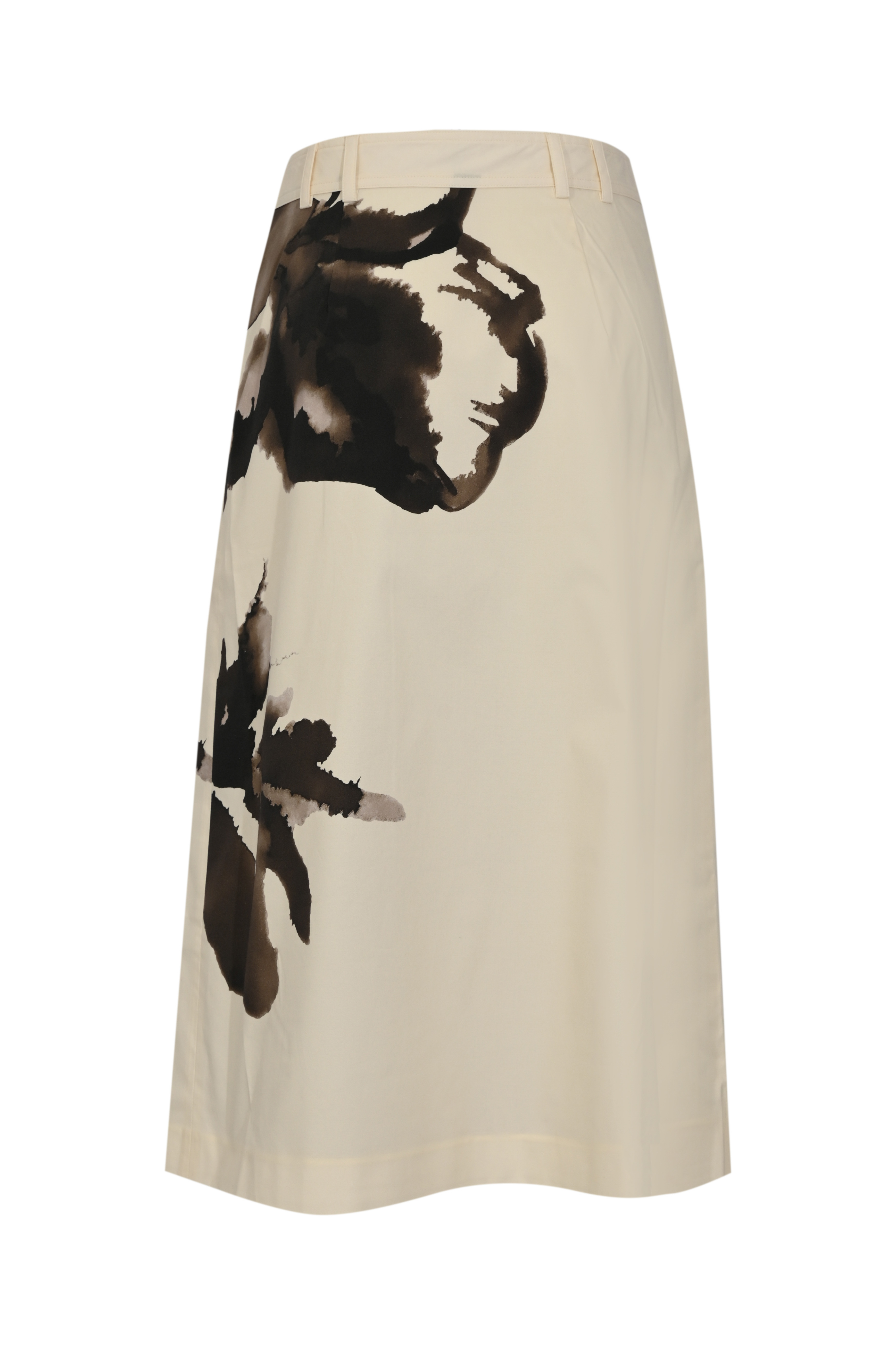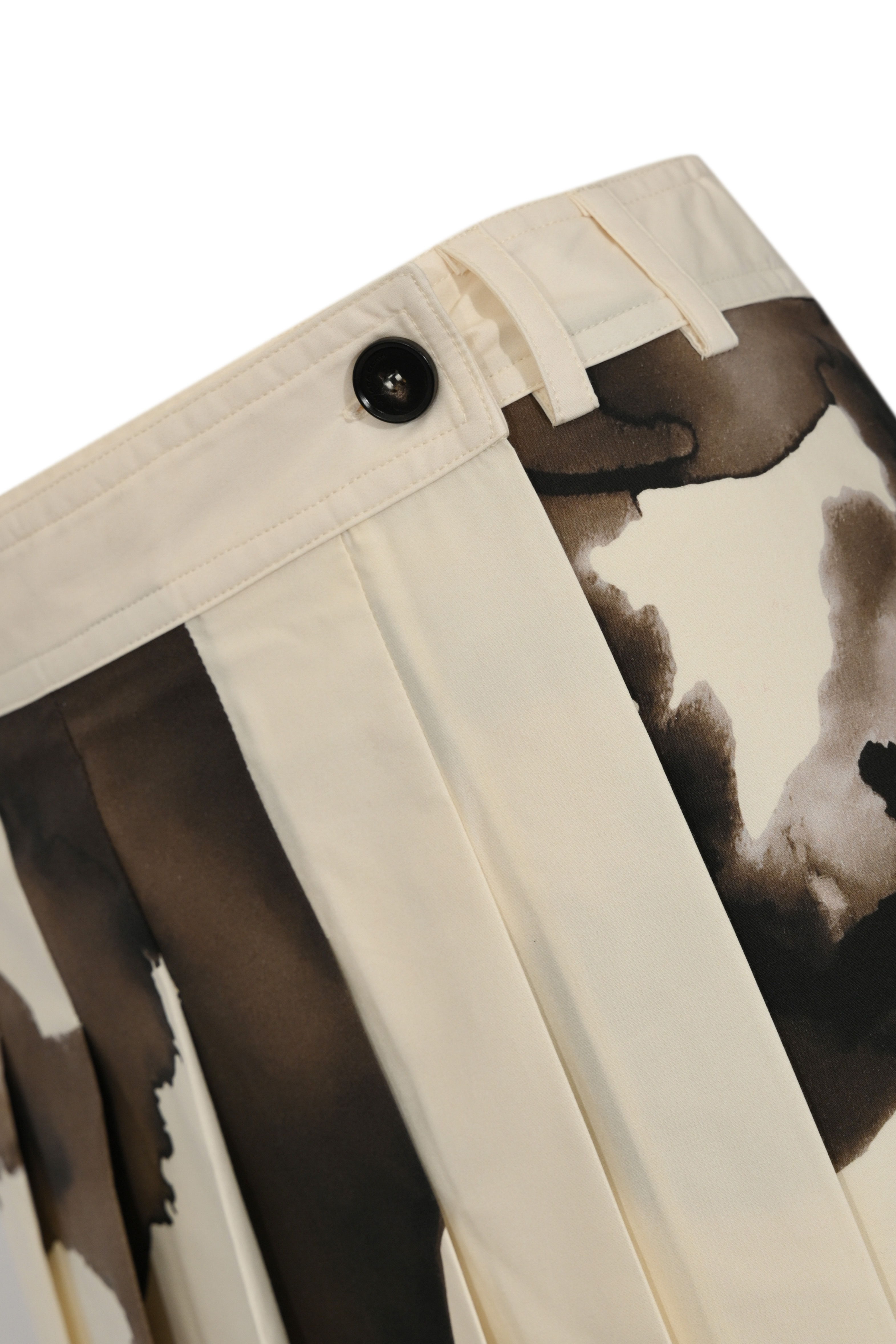 - Dettagli: pieghe frontali che donano volume alla gonna, stampa dal carattere pittorico che rende il capo distintivo ed elegante