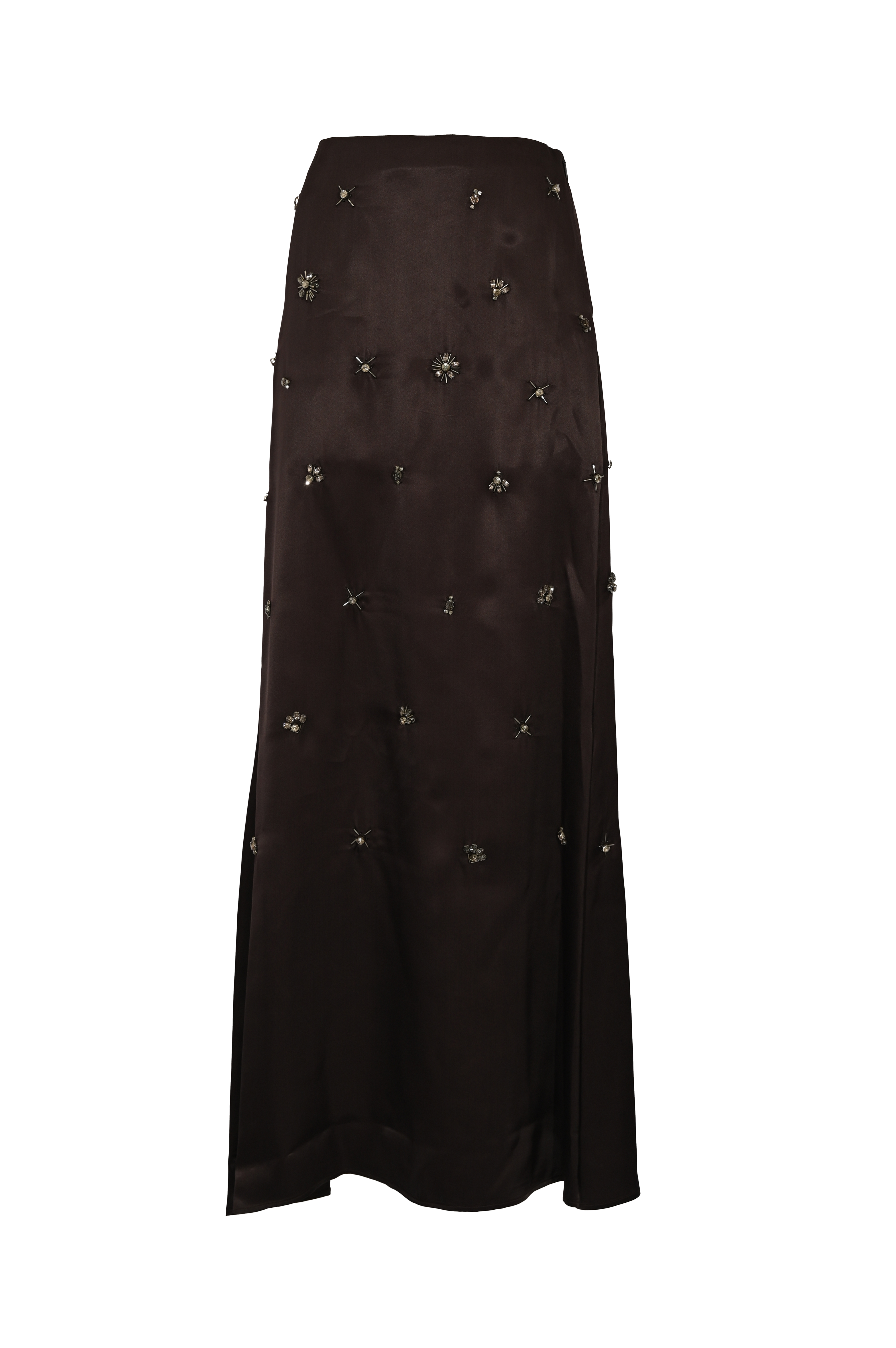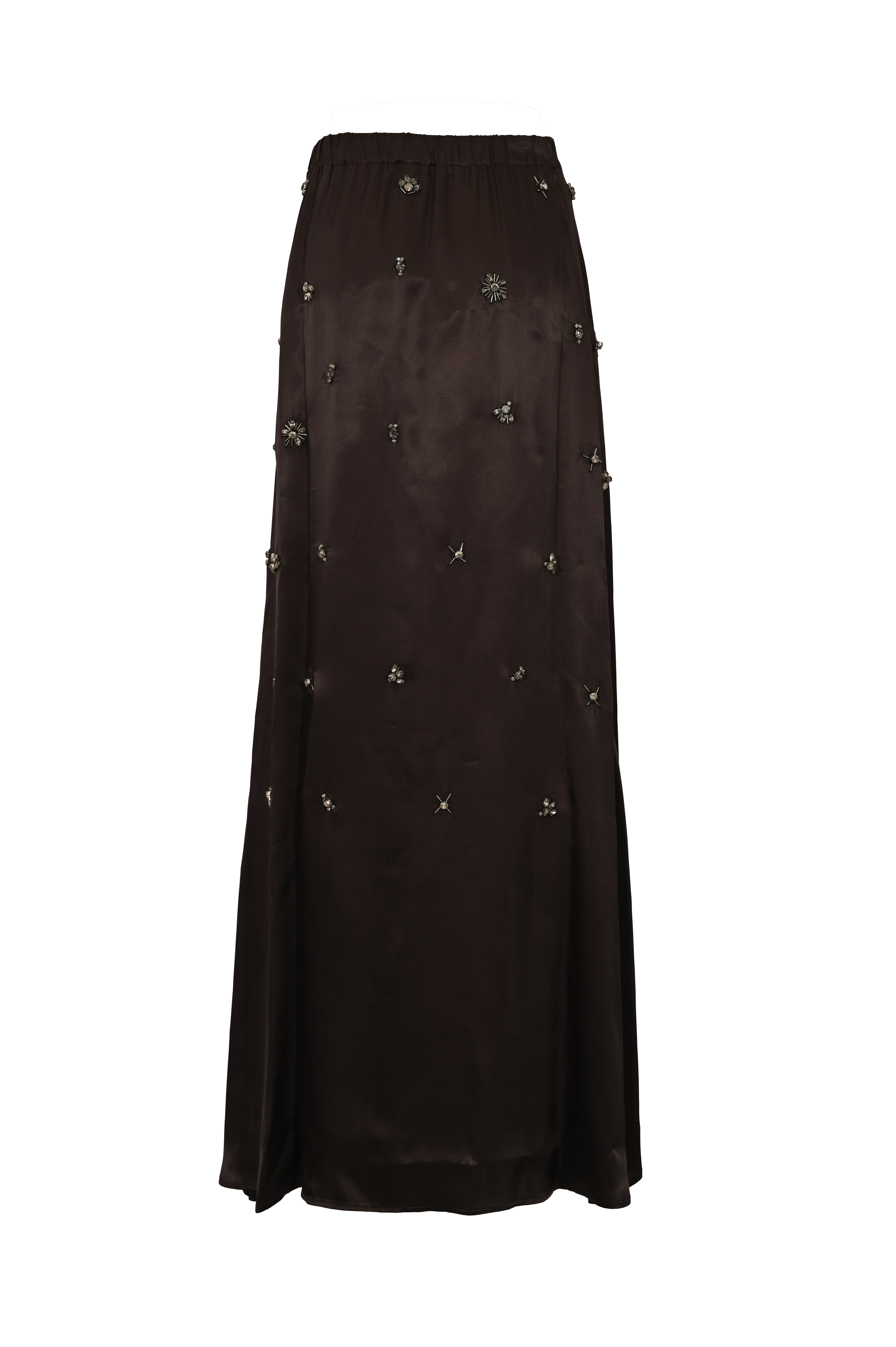 Gonna lunga in raso di viscosa con ricami, Liviana Conti, modello Courtney