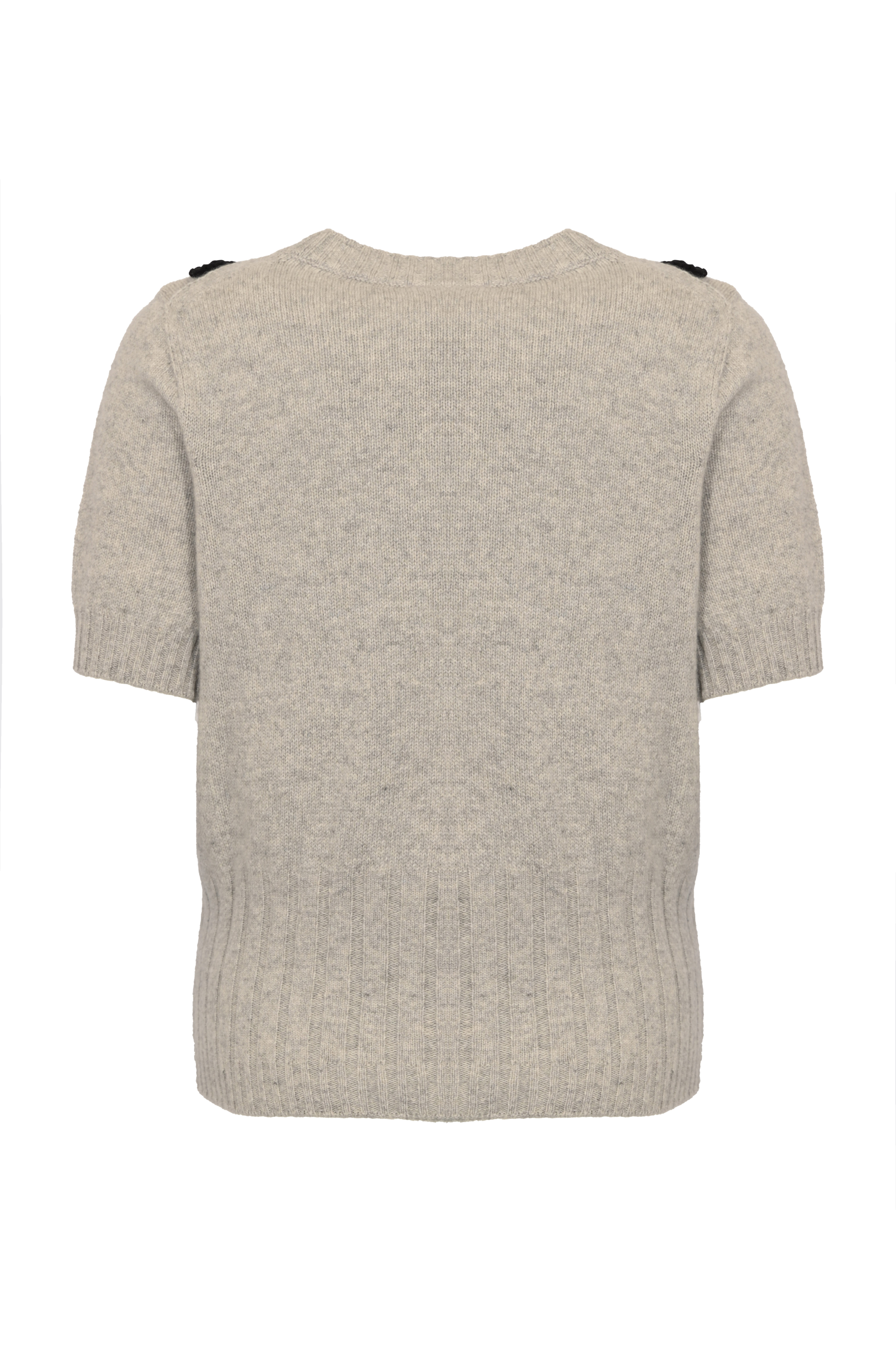 - Dettagli: applicazioni floreali in rilievo effetto crochet su fronte e spalle, lavorazione a maglia fine, bordi rifiniti a costine
