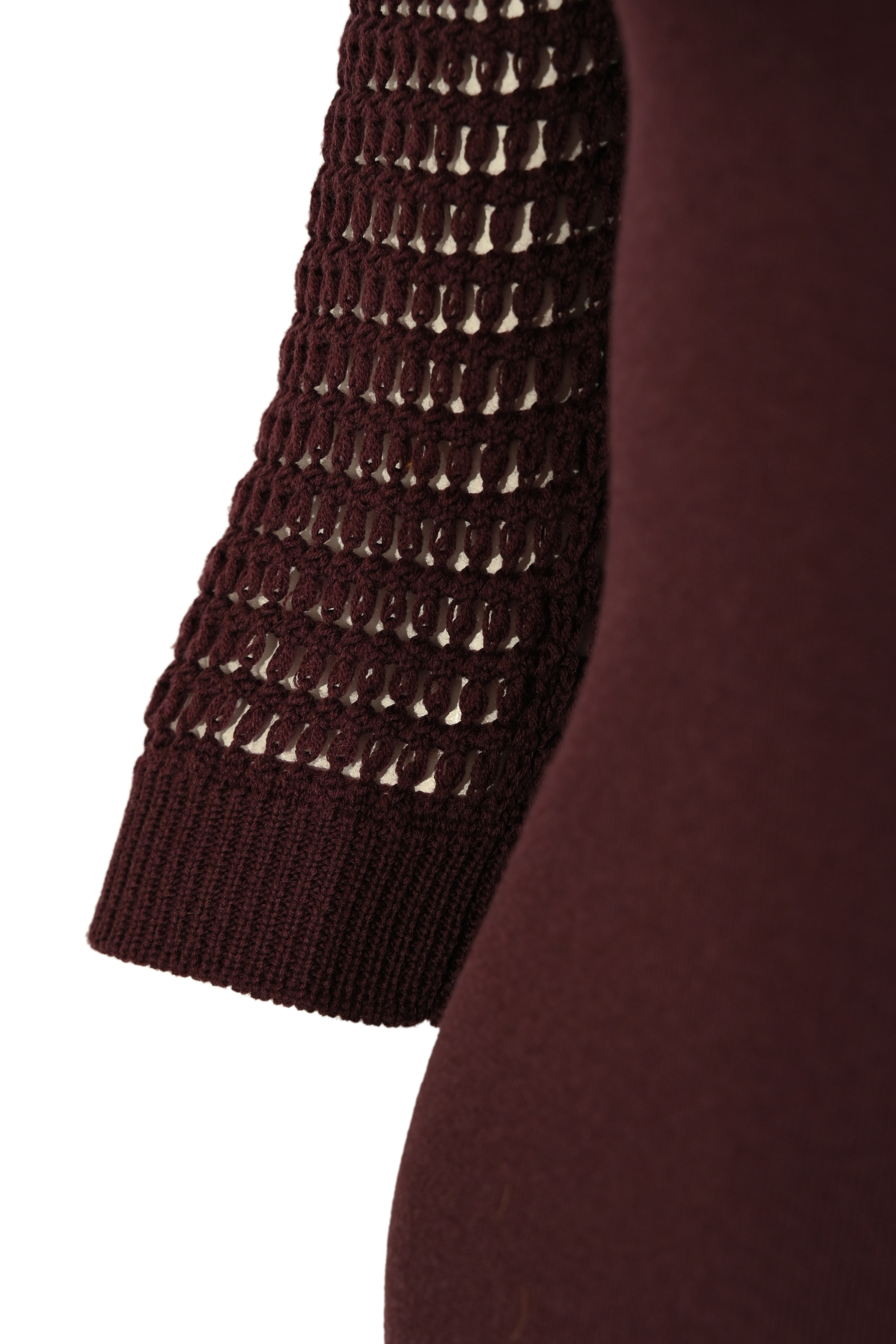 - Maniche: a tre quarti, lavorazione traforata a motivo geometrico