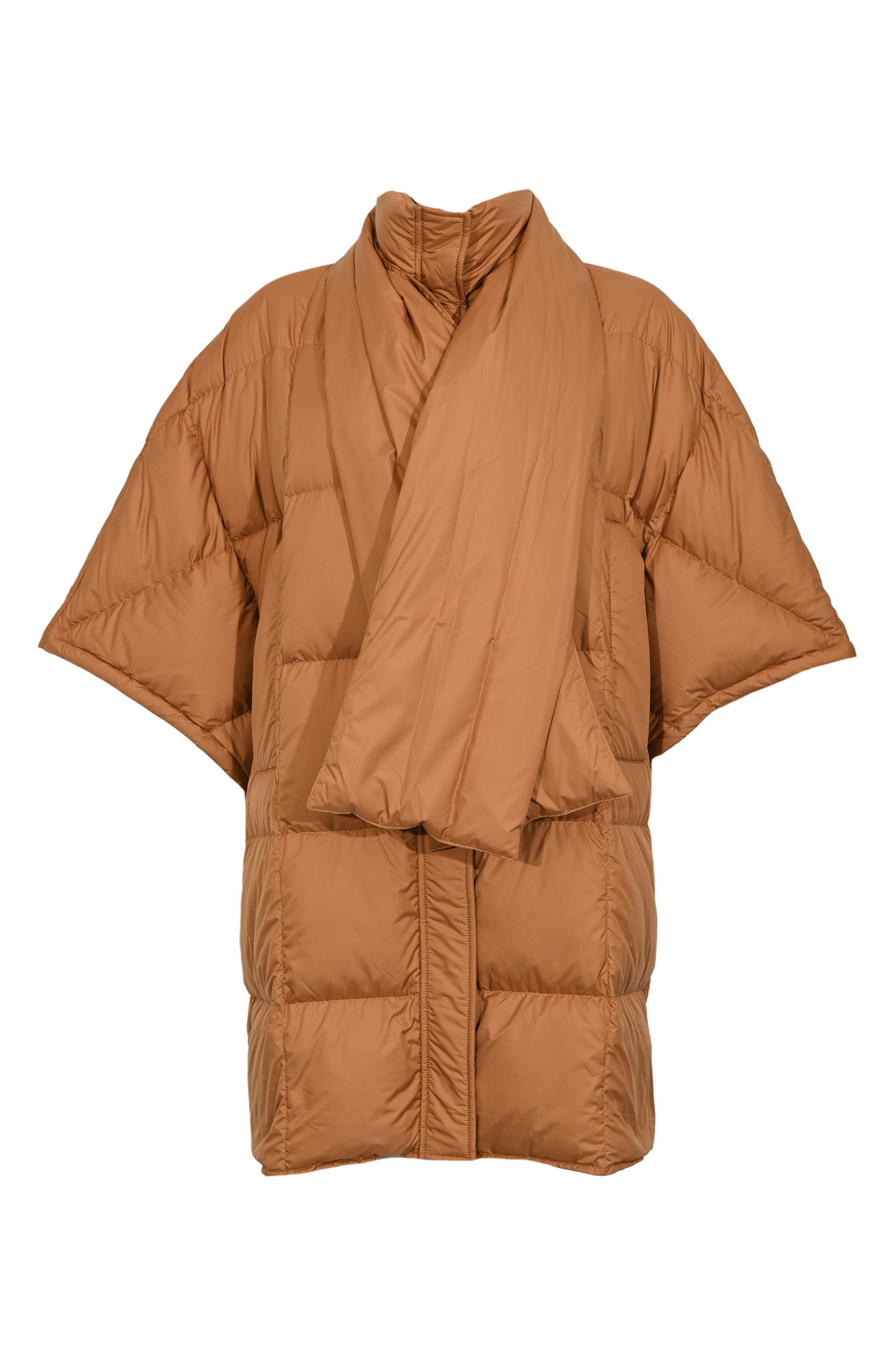 - Dettagli: trapuntatura a quadri, effetto volume leggero, collo alto sagomato, stile cocoon oversize