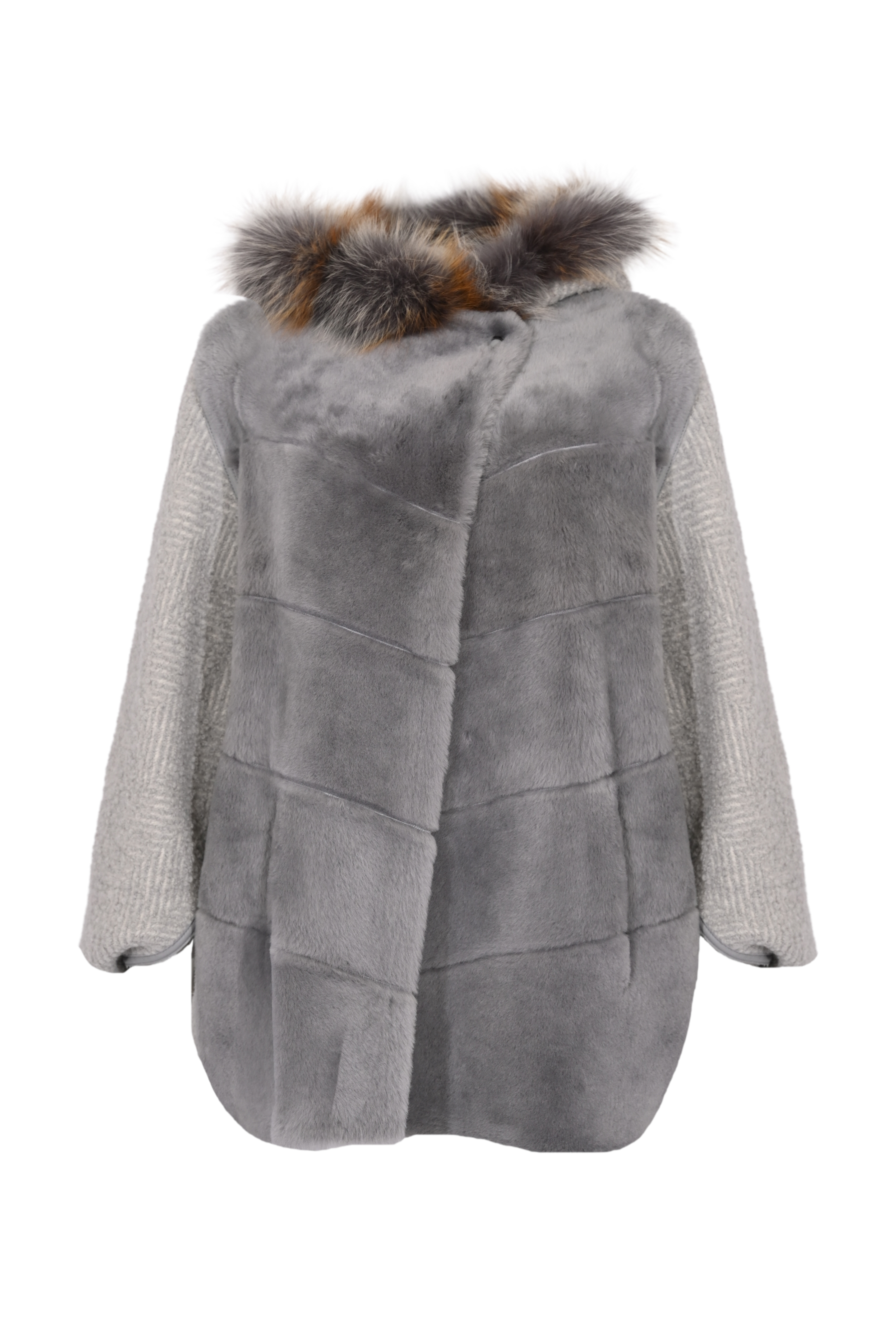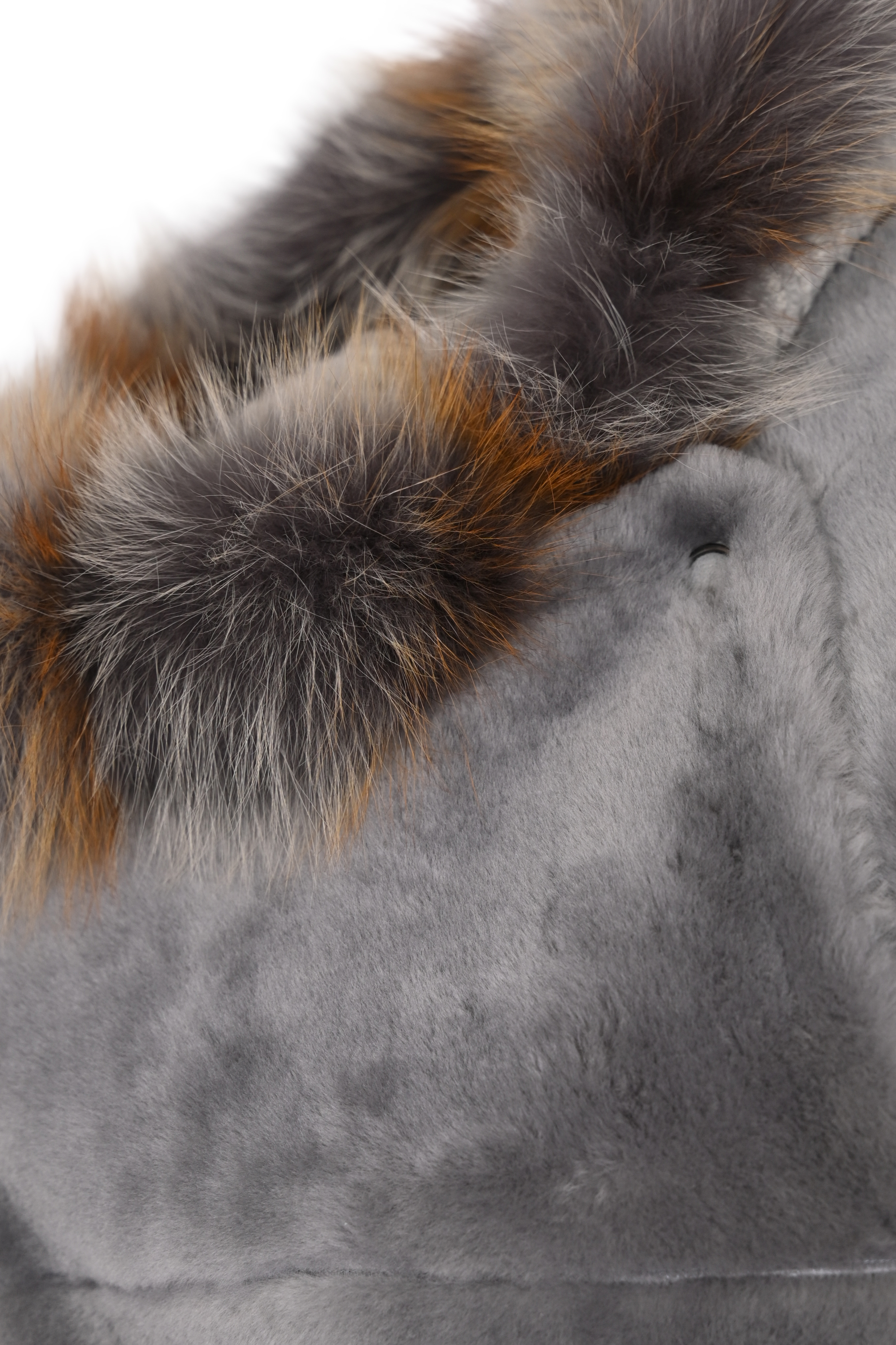 Giacca da donna in montone e volpe con inserti in alpaca e lana, Marester, modello con cappuccio