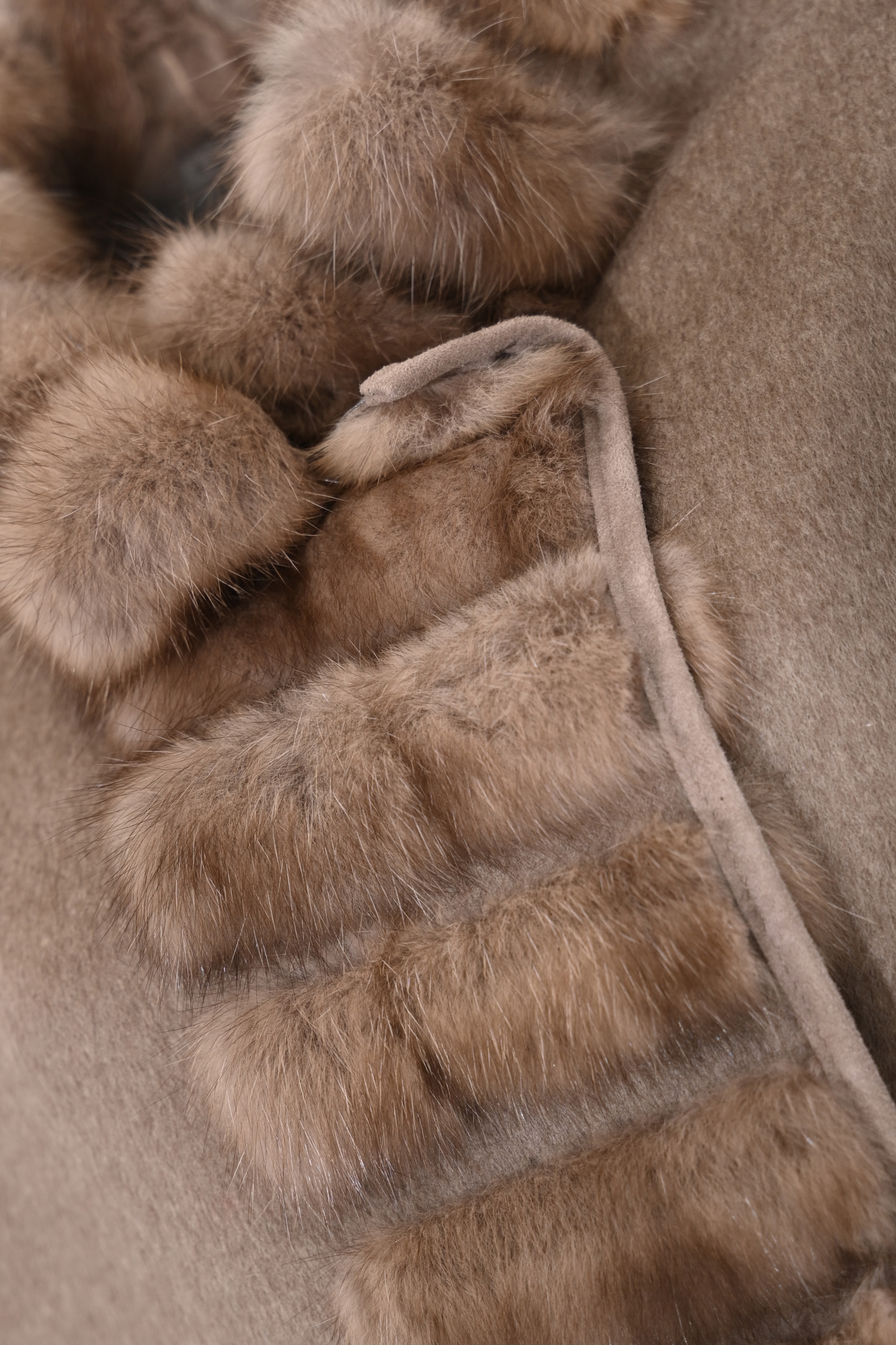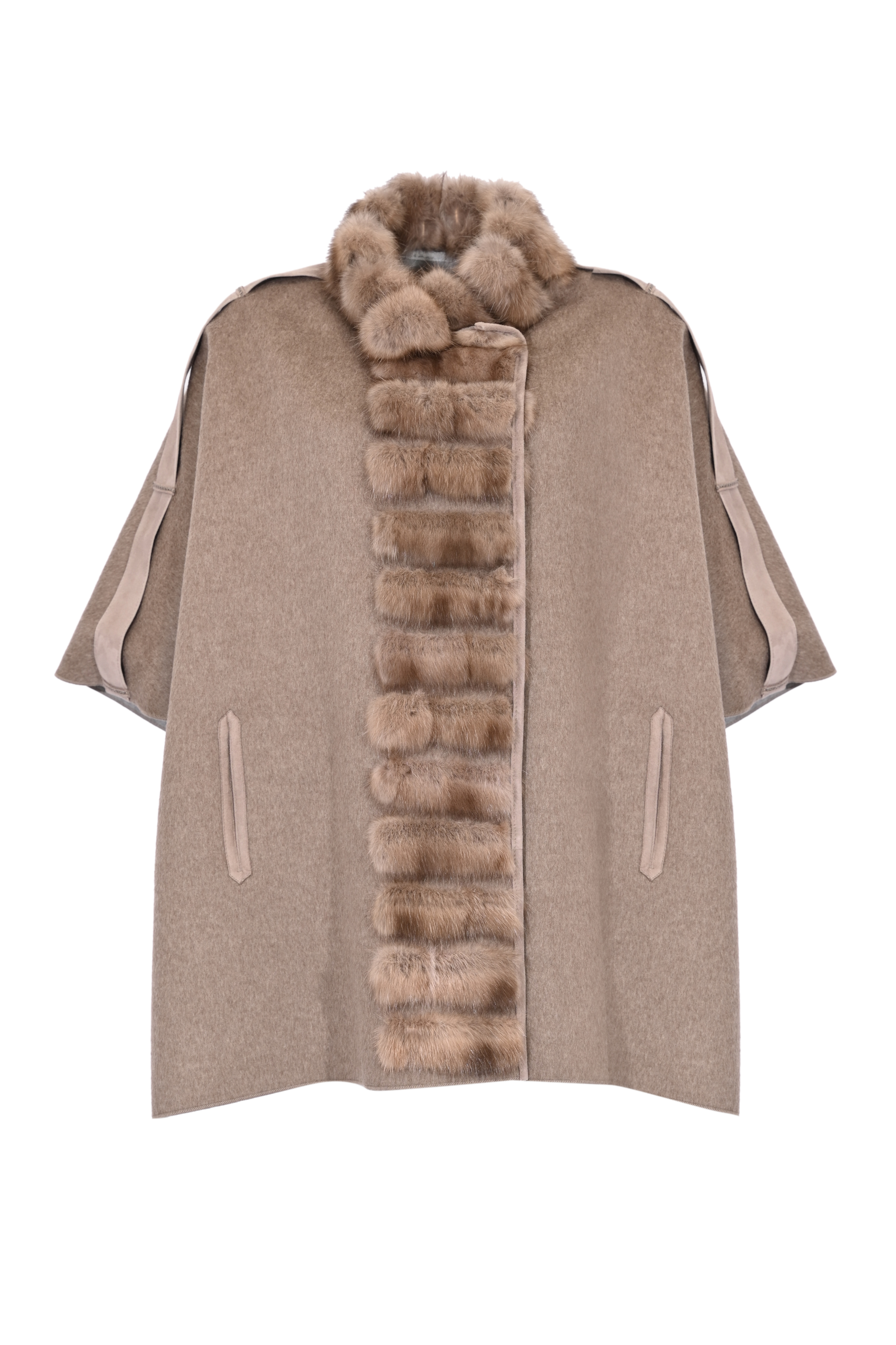 Mantella reversibile 4542 in lana e cashmere con inserti in pelliccia di zibellino