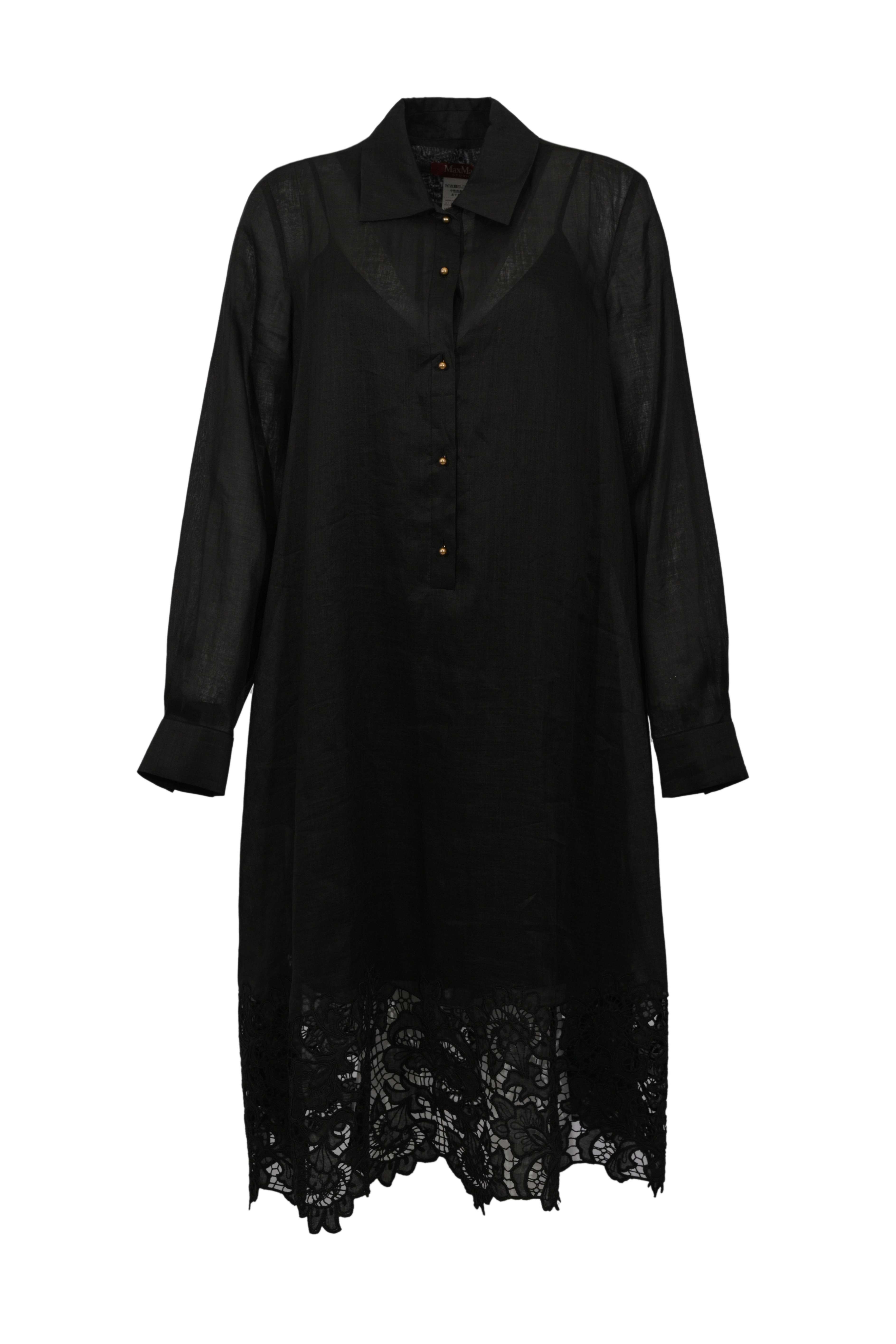 Abito chemisier MSTMELA in garza ramié ricamata Nero