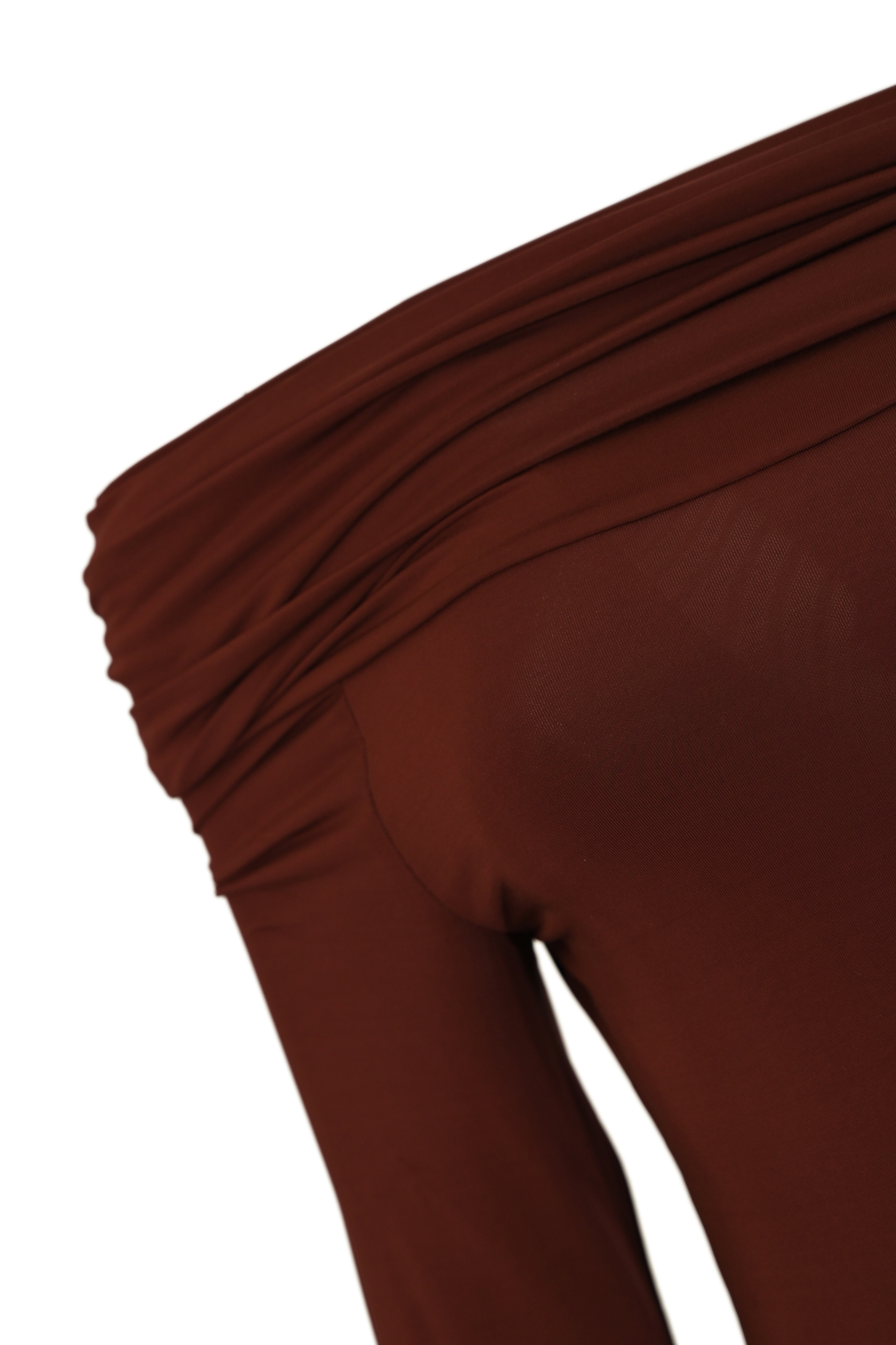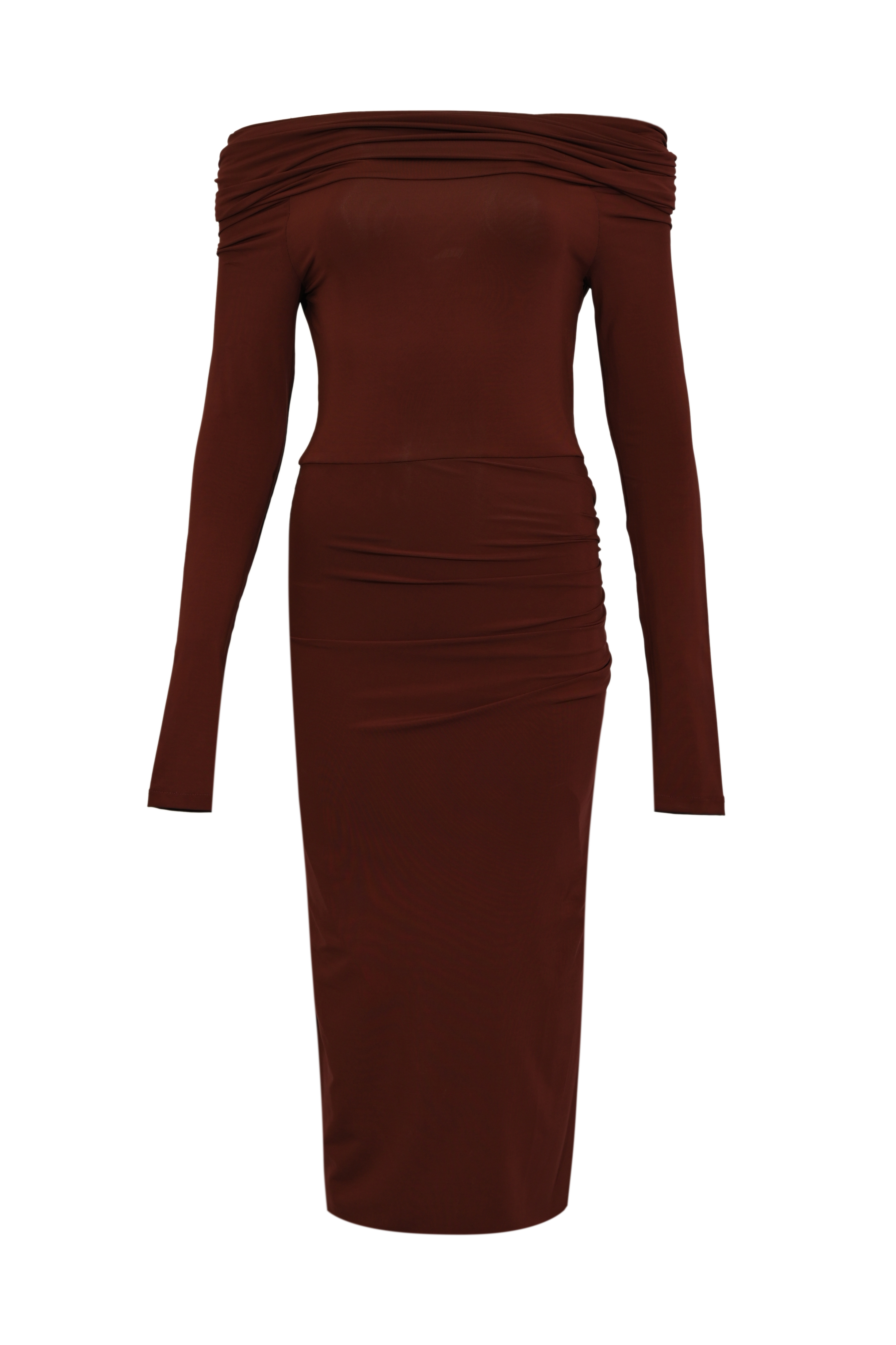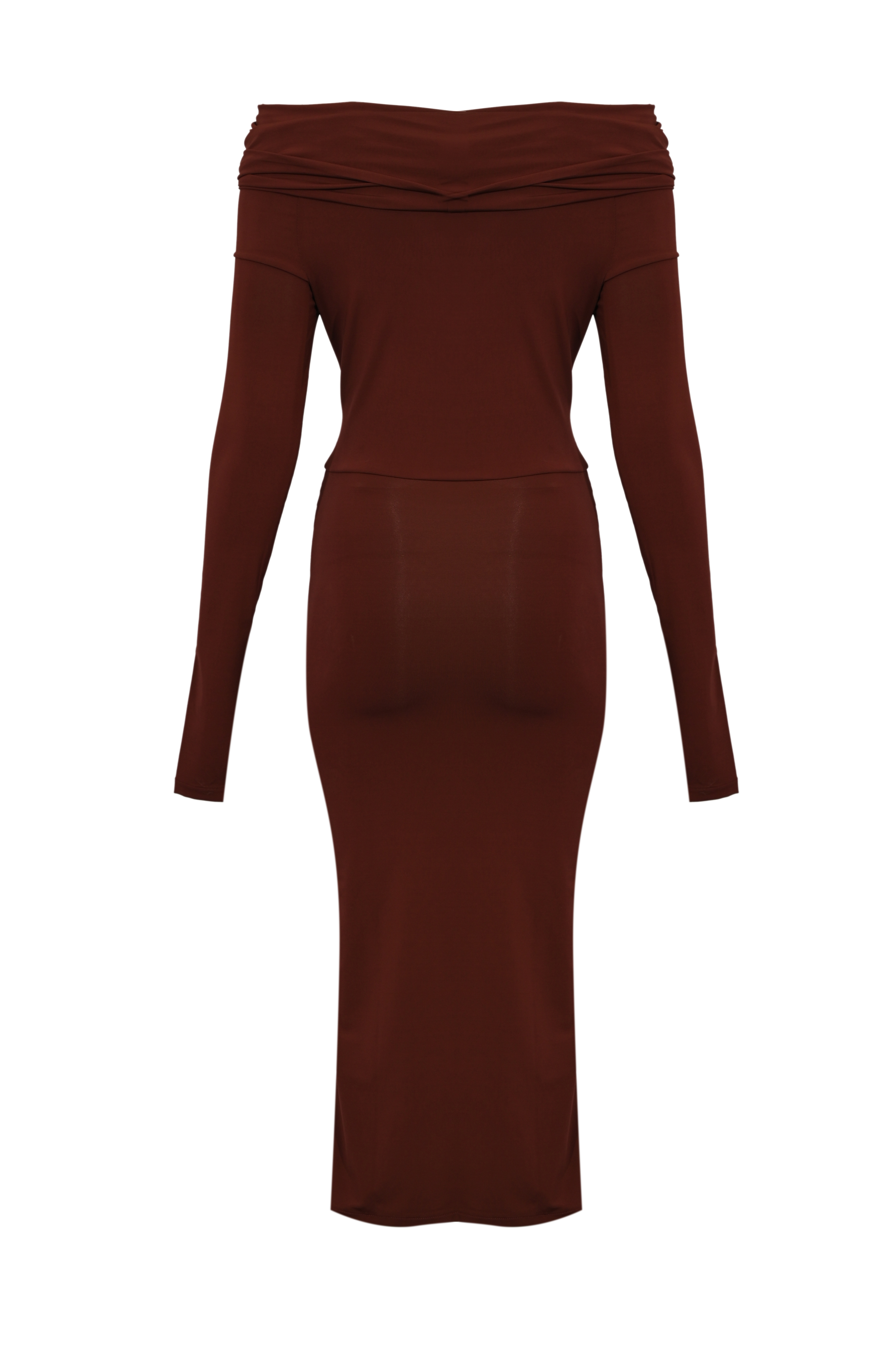 - Dettagli: effetto drappeggiato sul busto e sulle spalle, linea aderente, spacco posteriore per maggiore comfort, tessuto elasticizzato che valorizza la silhouette