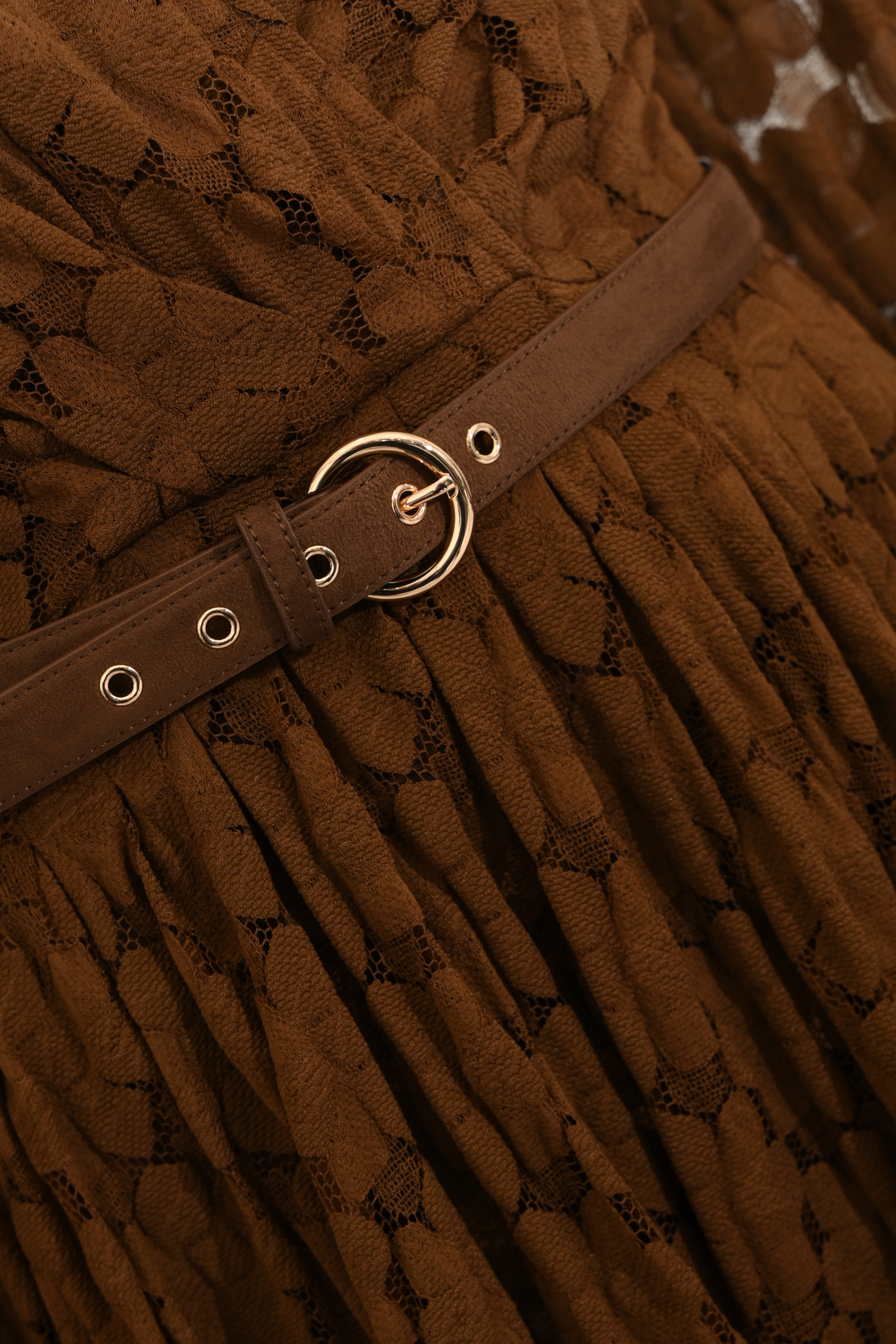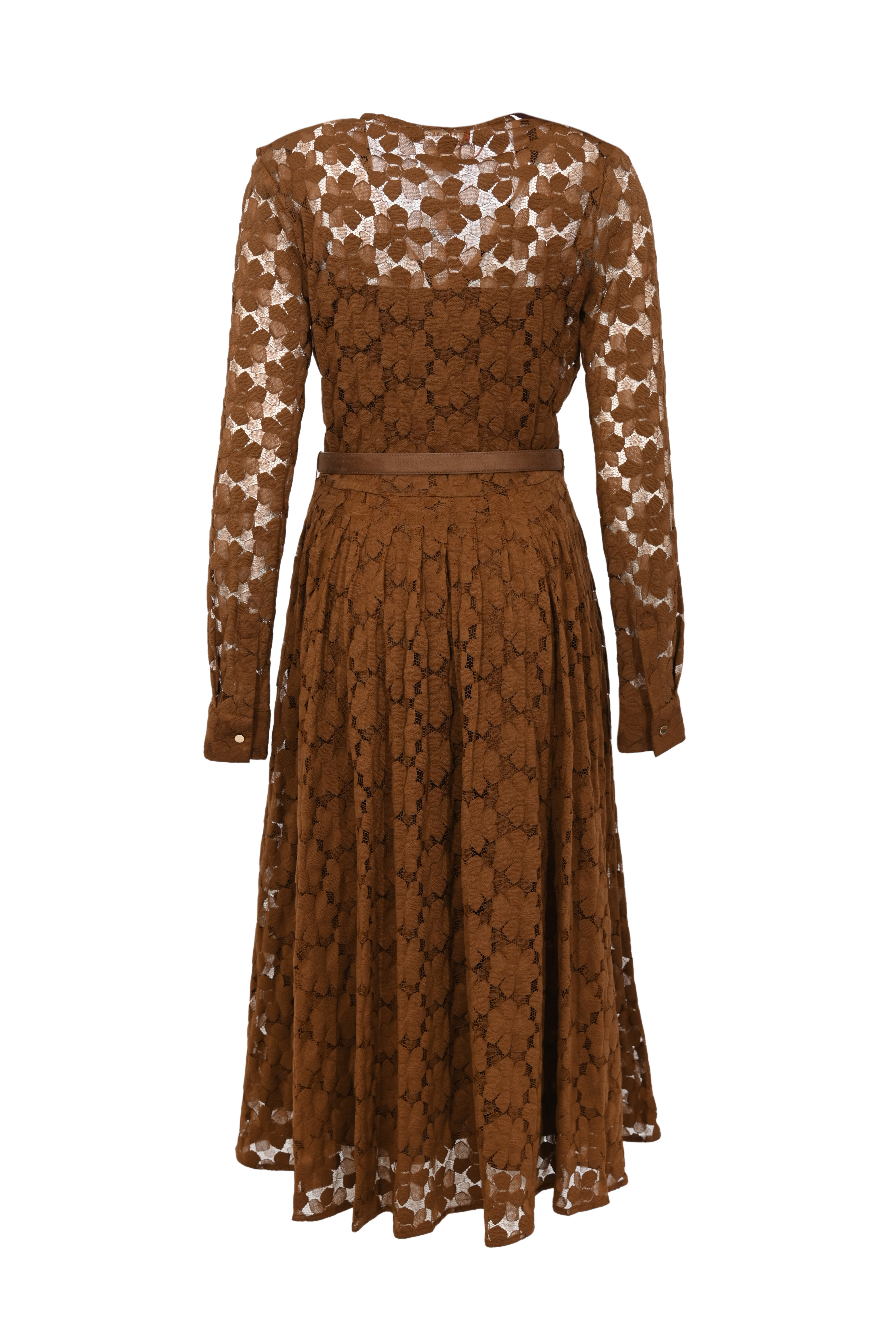 - Dettagli: cintura coordinata con fibbia ad anello in metallo, gonna plissettata, corpetto drappeggiato, effetto semitrasparente sulle maniche