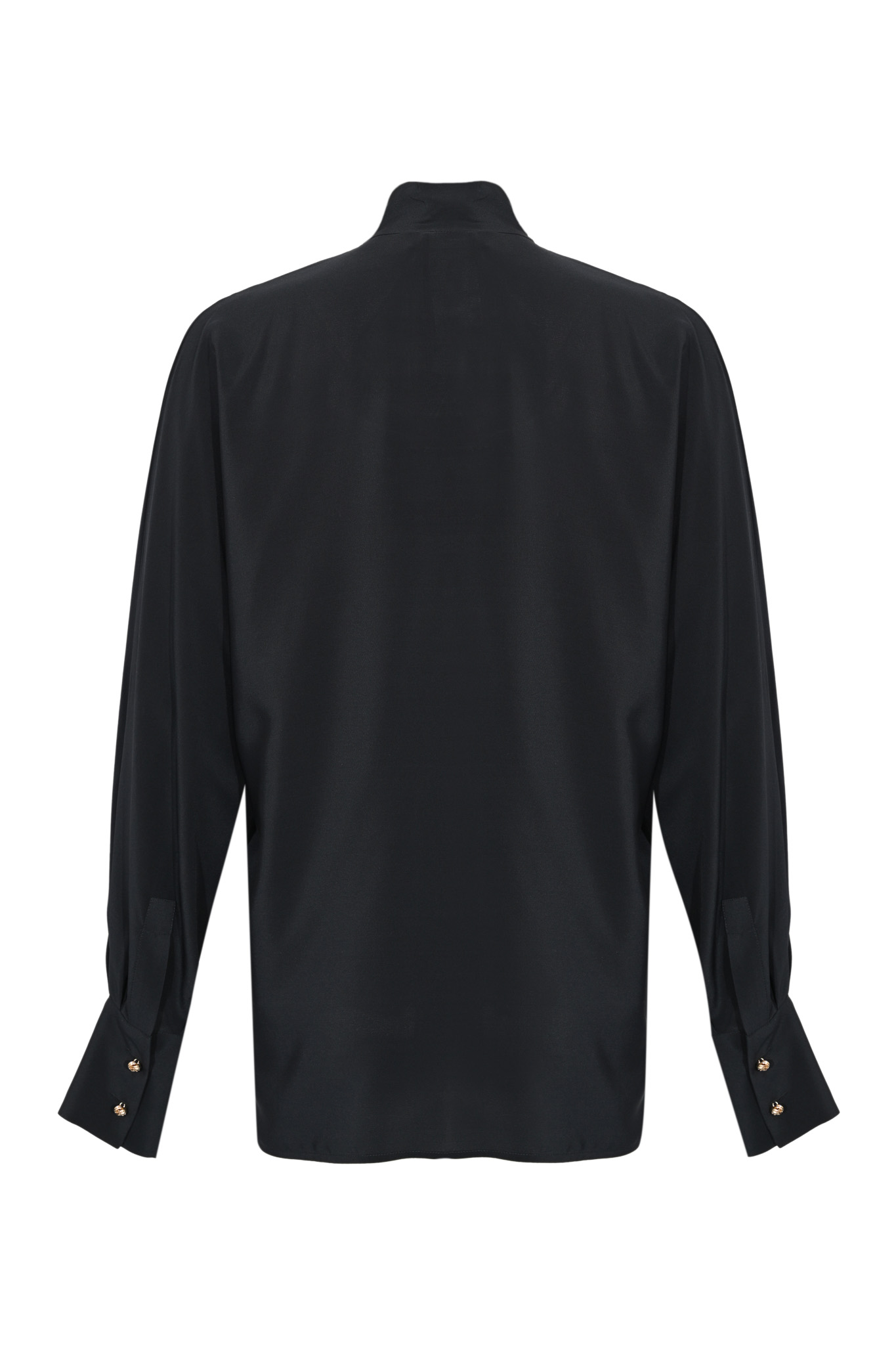 - Maniche: lunghe con polsini chiusi da doppi bottoni gioiello dorati