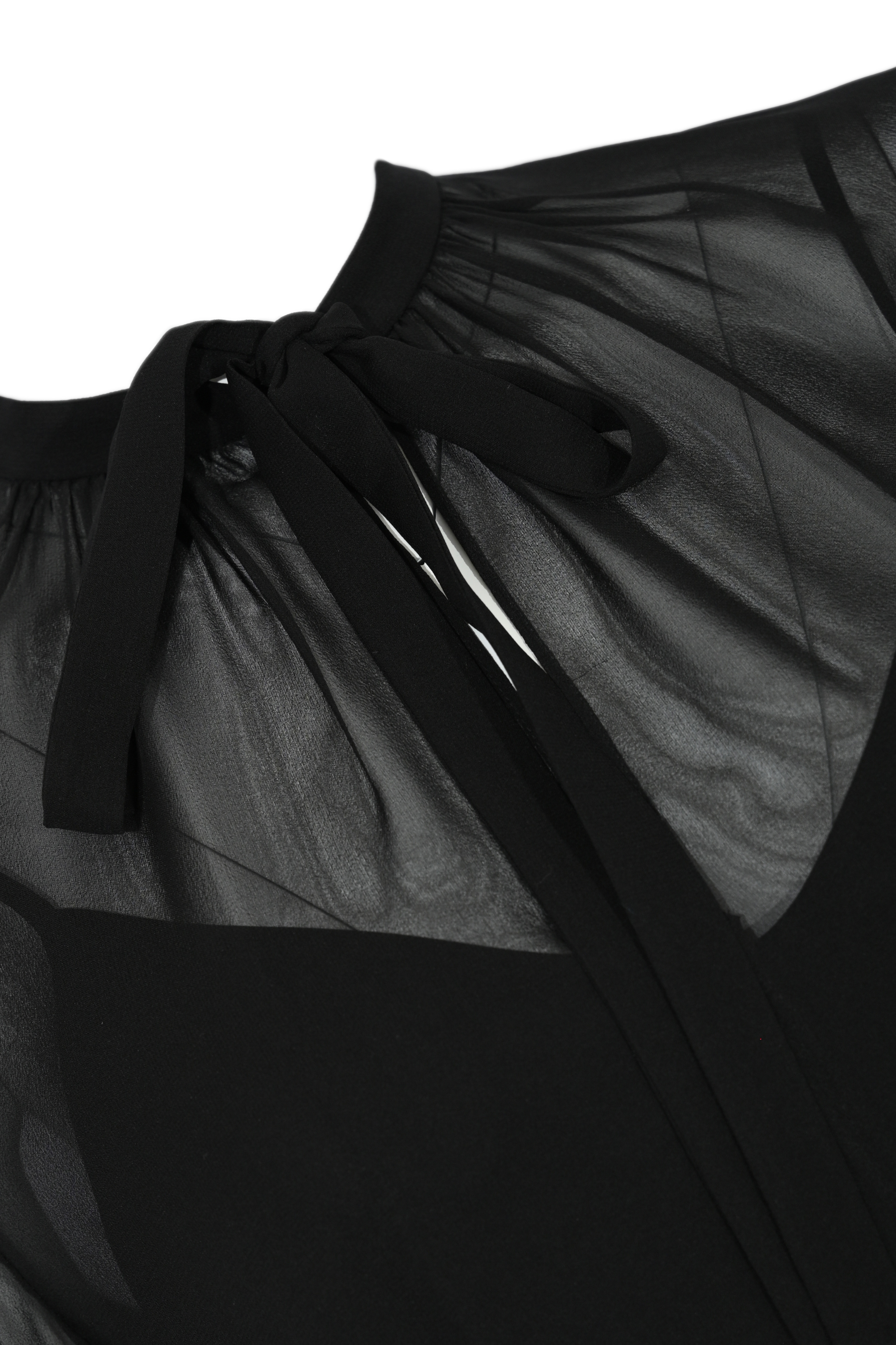 - Dettagli: trasparenze effetto voile, taglio svasato, top interno coordinato in tessuto leggero, finiture sartoriali tono su tono