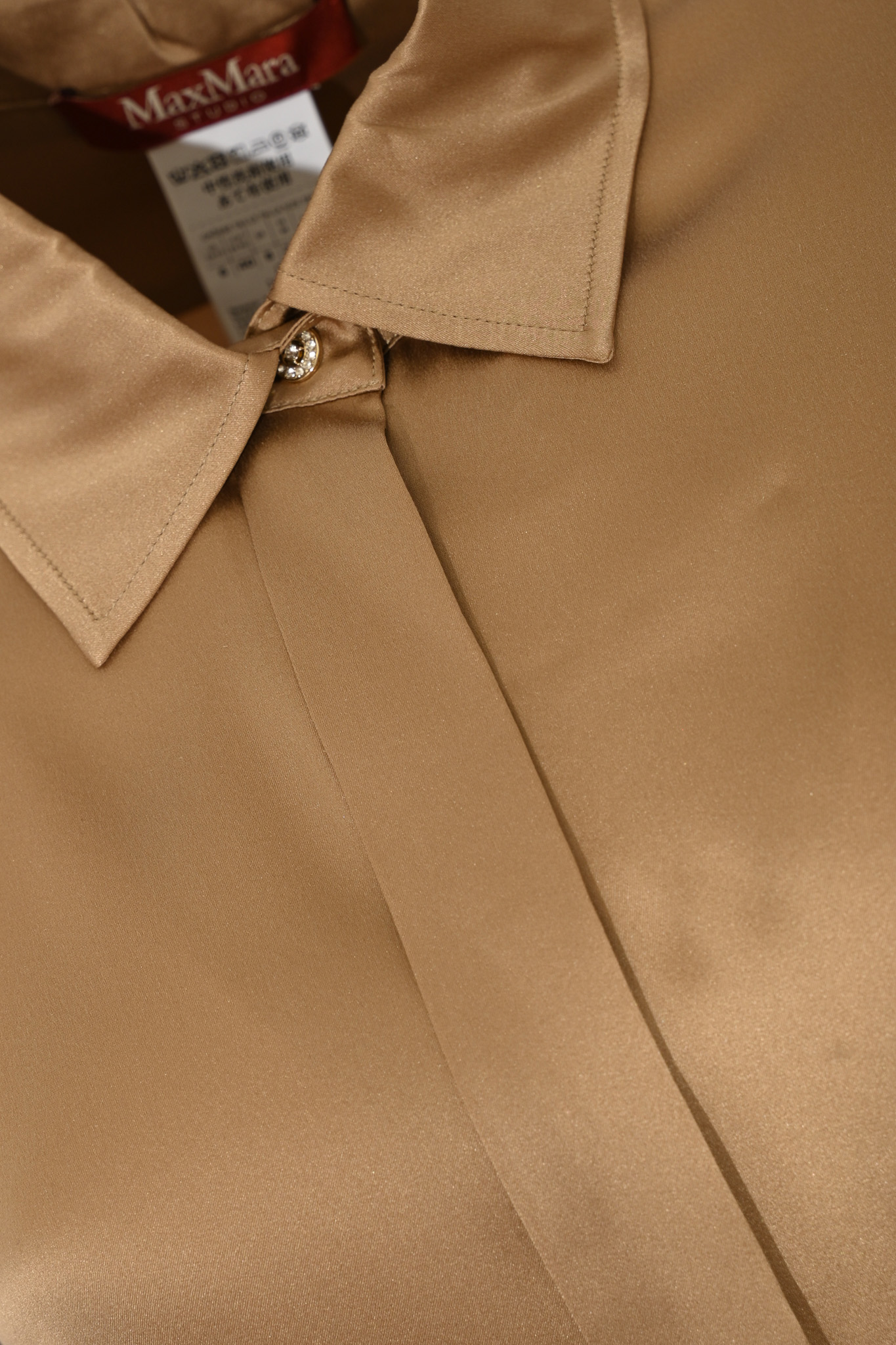 - Dettagli: finitura lucida in raso, bottone gioiello sul collo, linea elegante