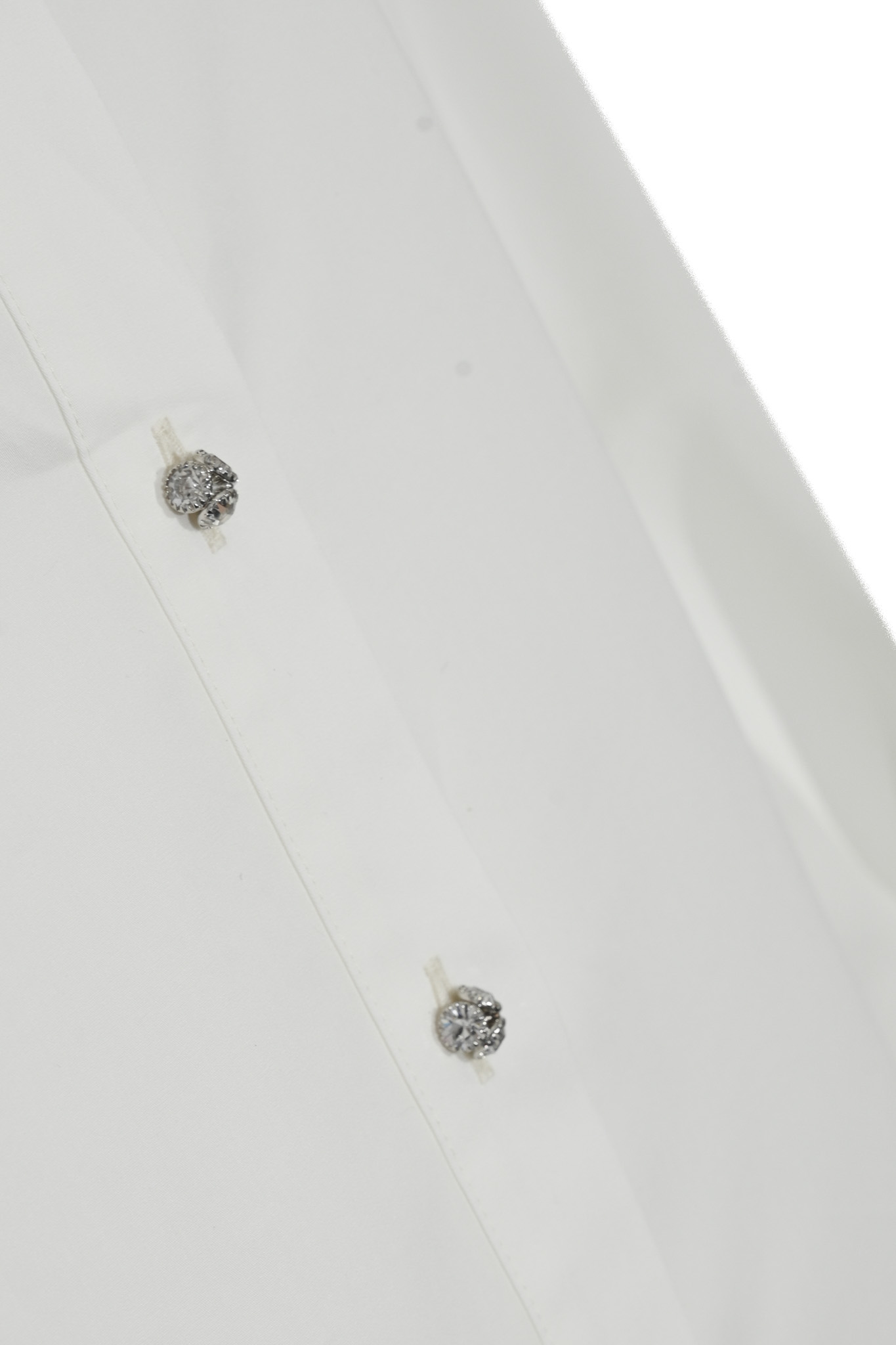 - Dettagli: apertura posteriore con inserto arricciato ed effetto mantella sul retro; bottoni preziosi effetto cristallo