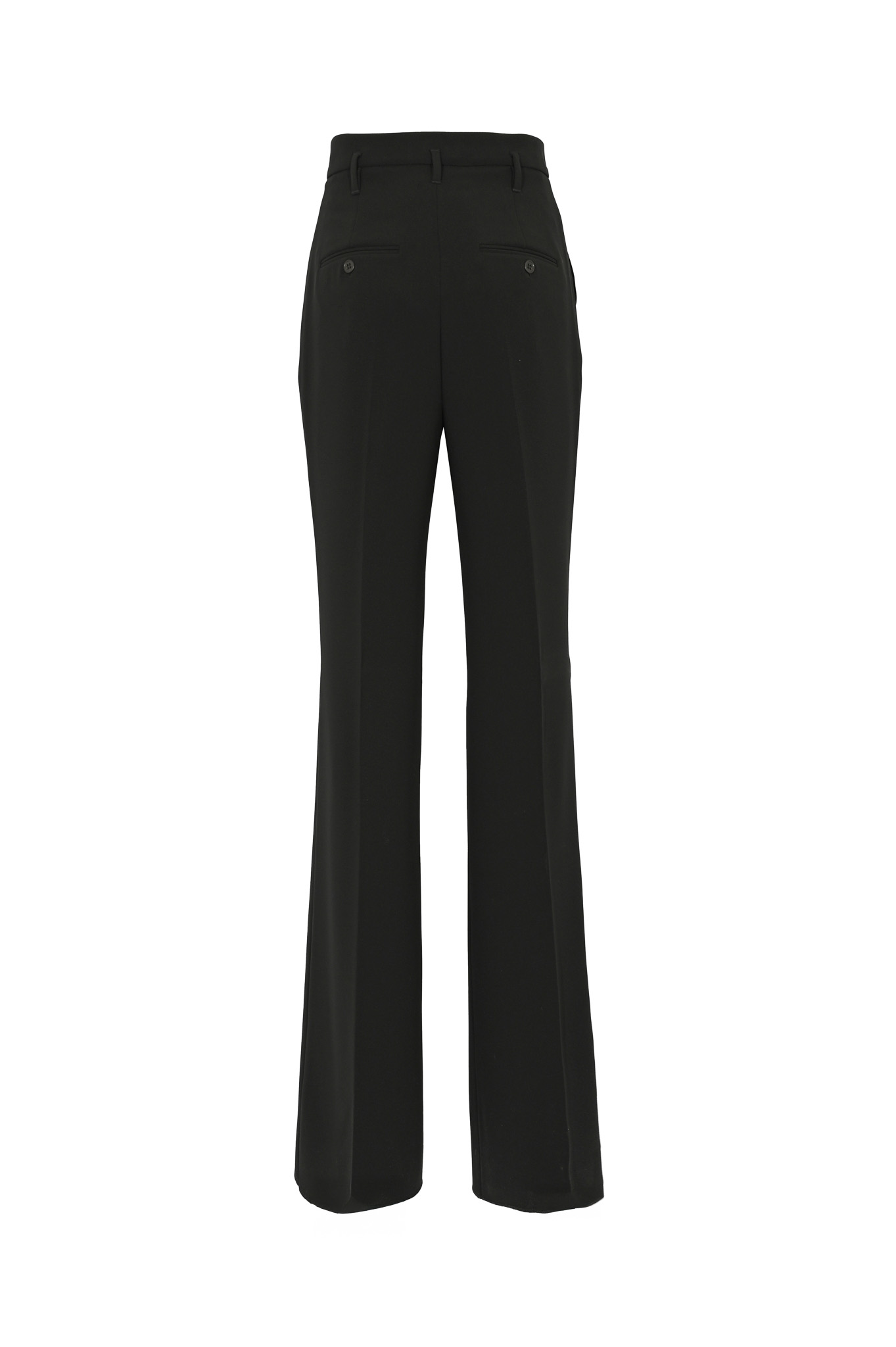 - Dettagli: piega stirata frontale, linea svasata a zampa
