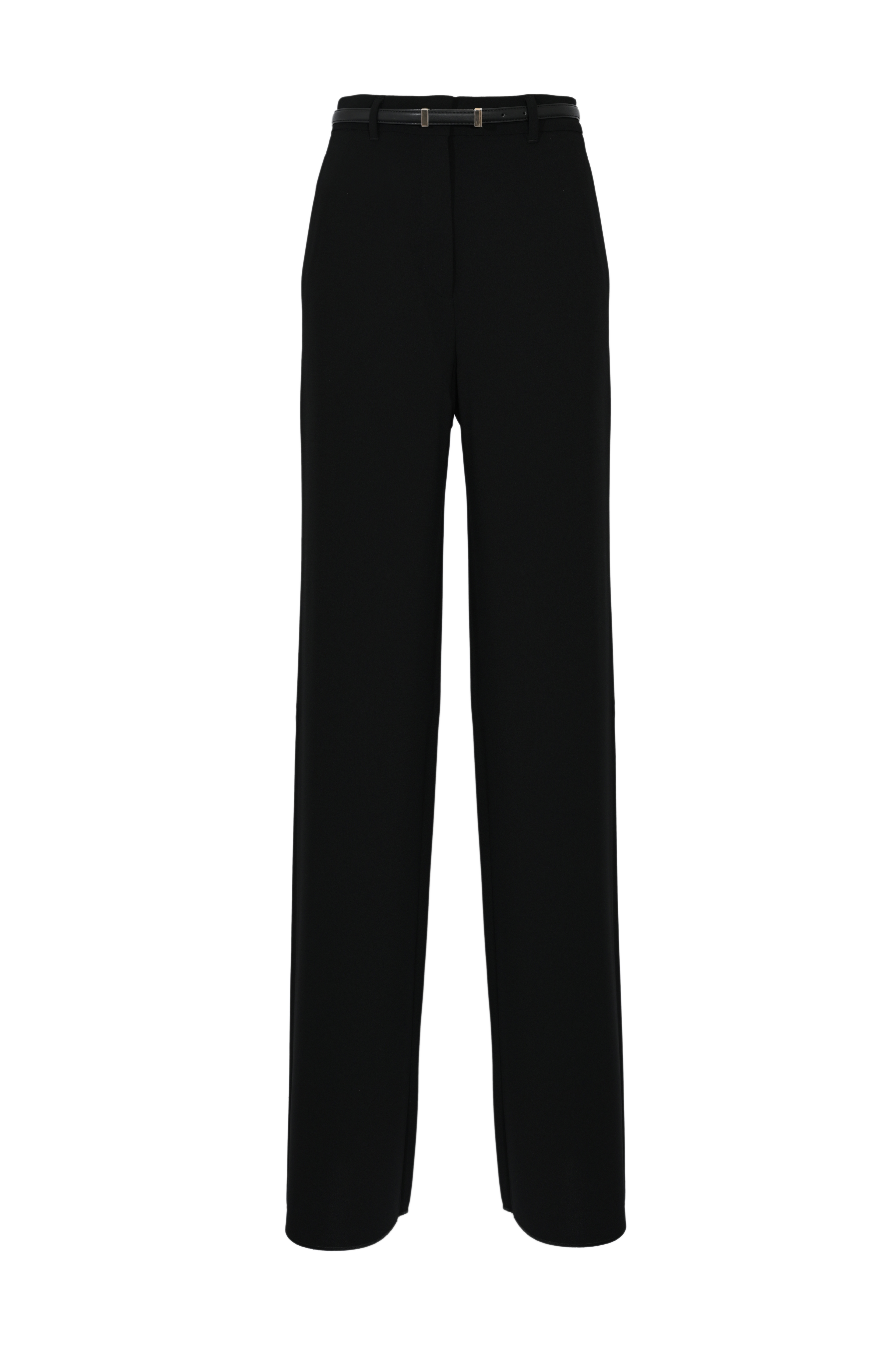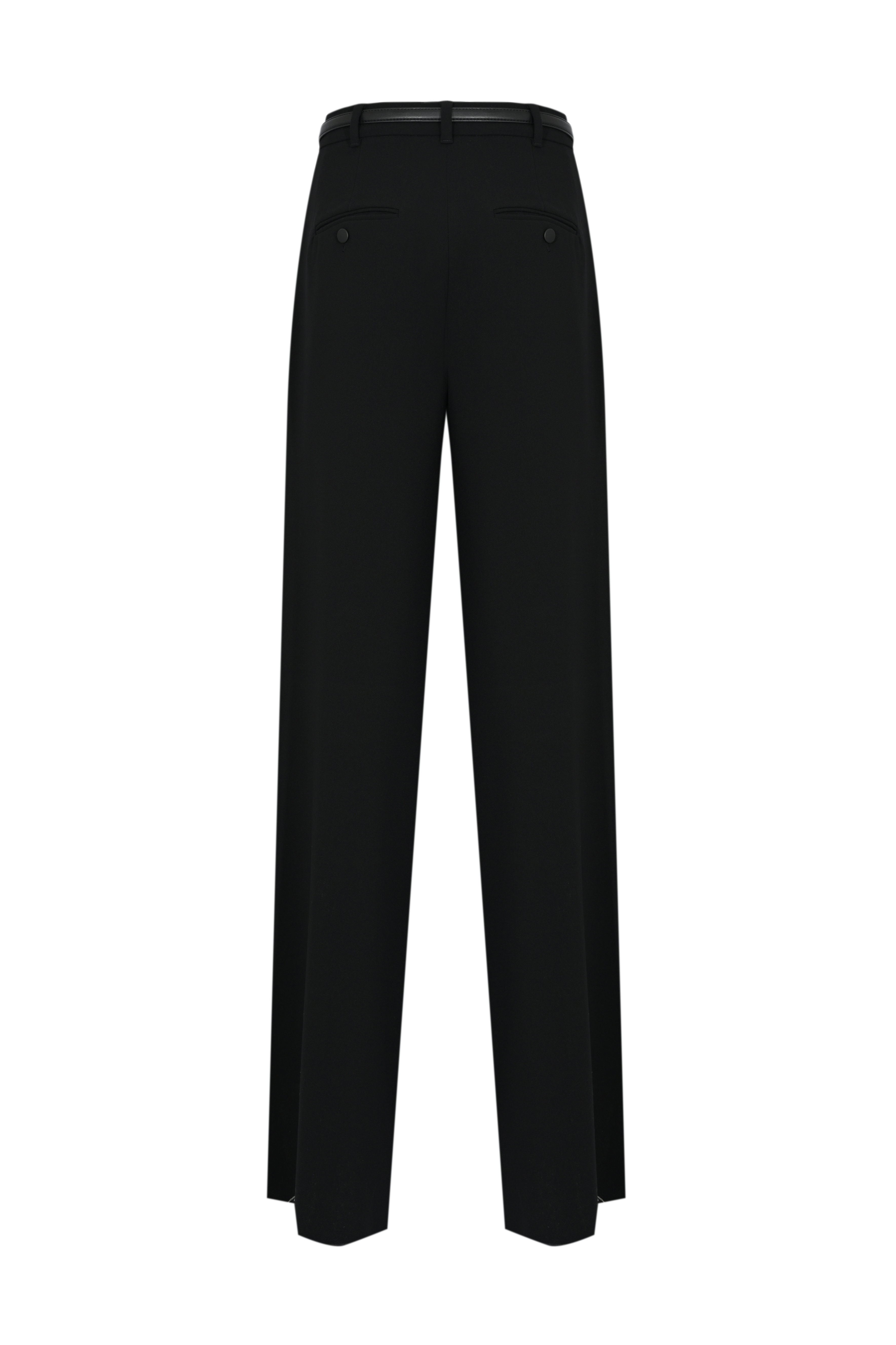 - Dettagli: linea ampia e fluida, piega stirata centrale, cintura rimovibile inclusa