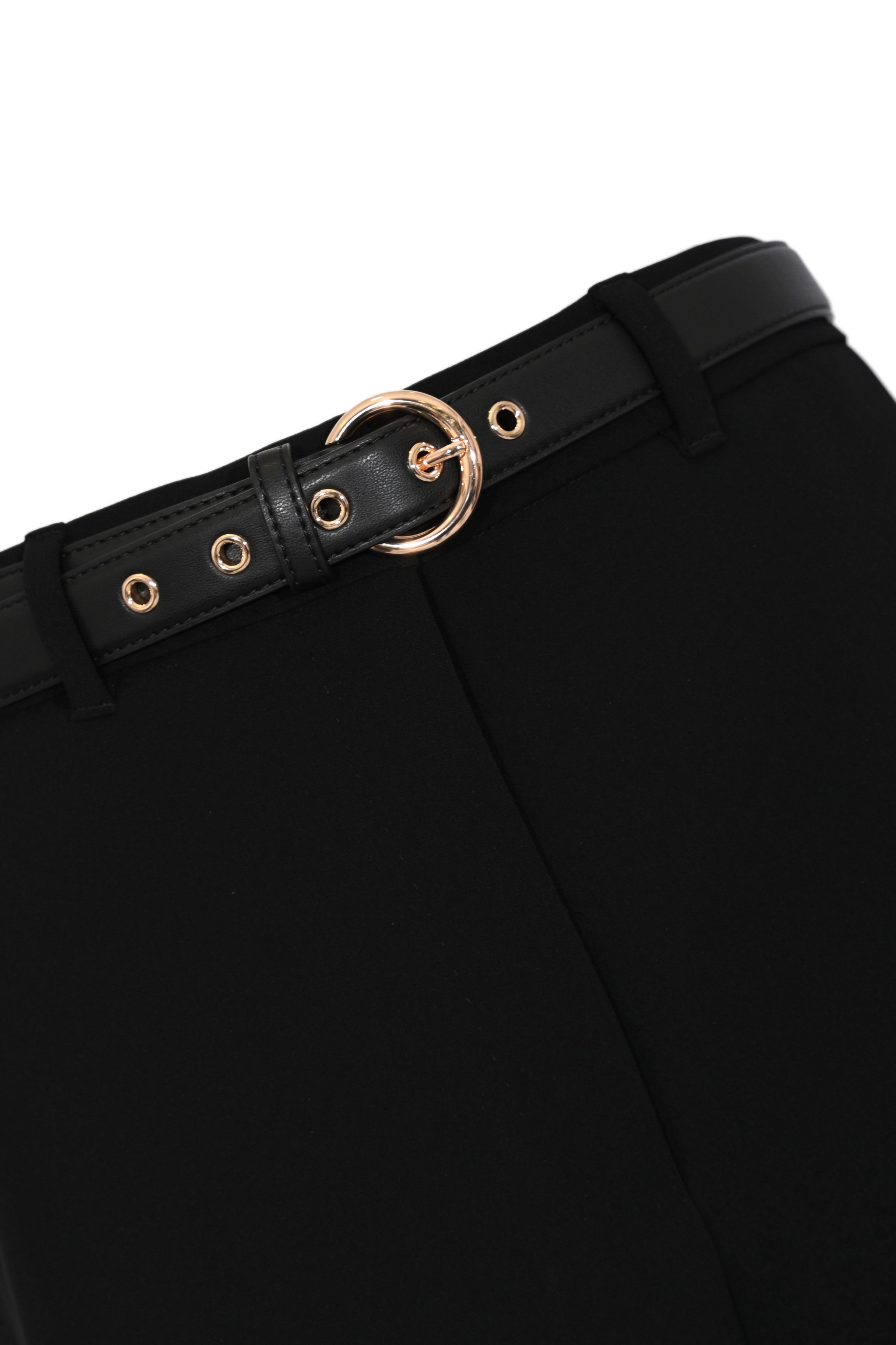 - Vita: alta con passanti e cintura effetto pelle removibile