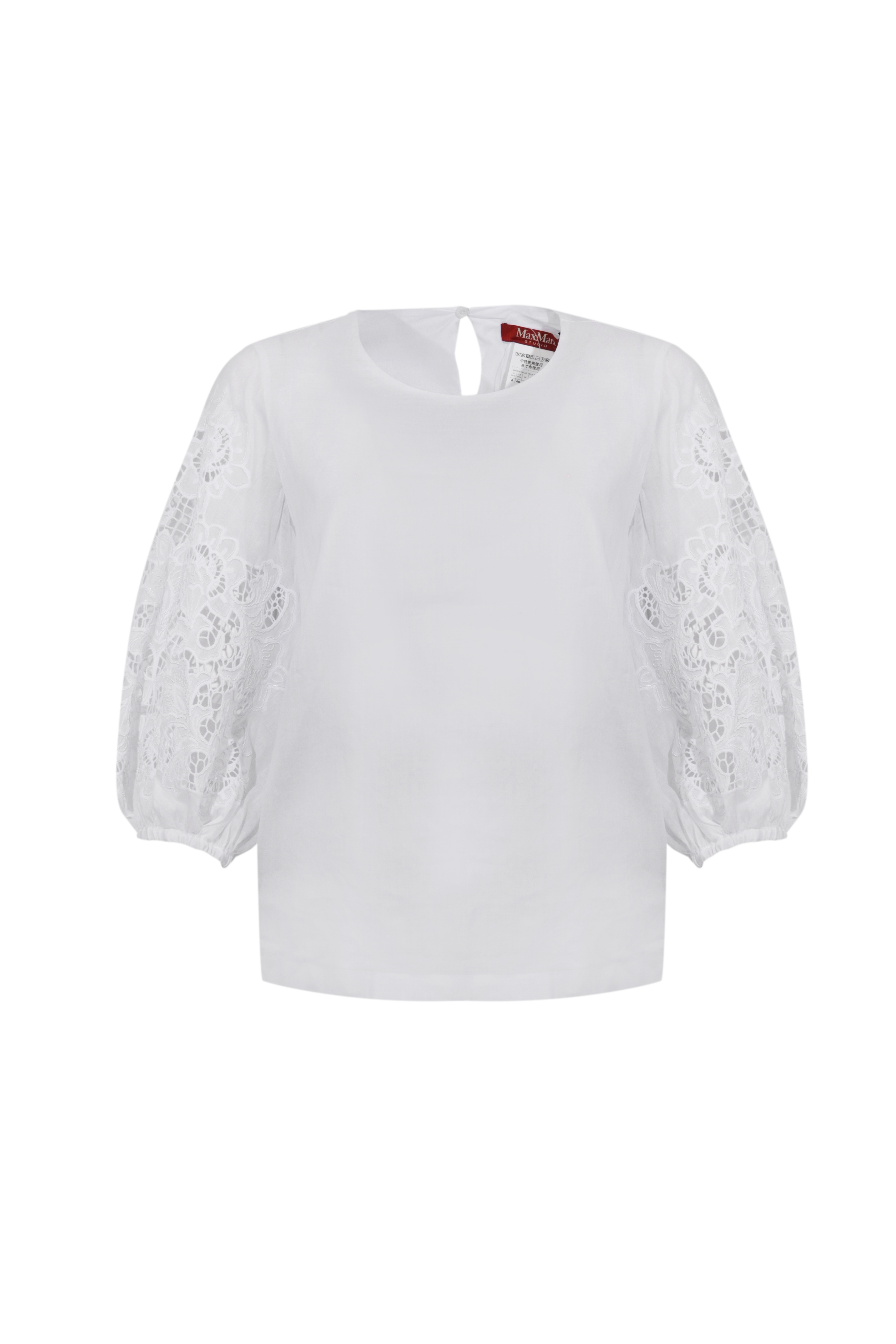 T-shirt da donna in garza ramié e Sangallo, Max Mara Studio, modello MSTORDINE