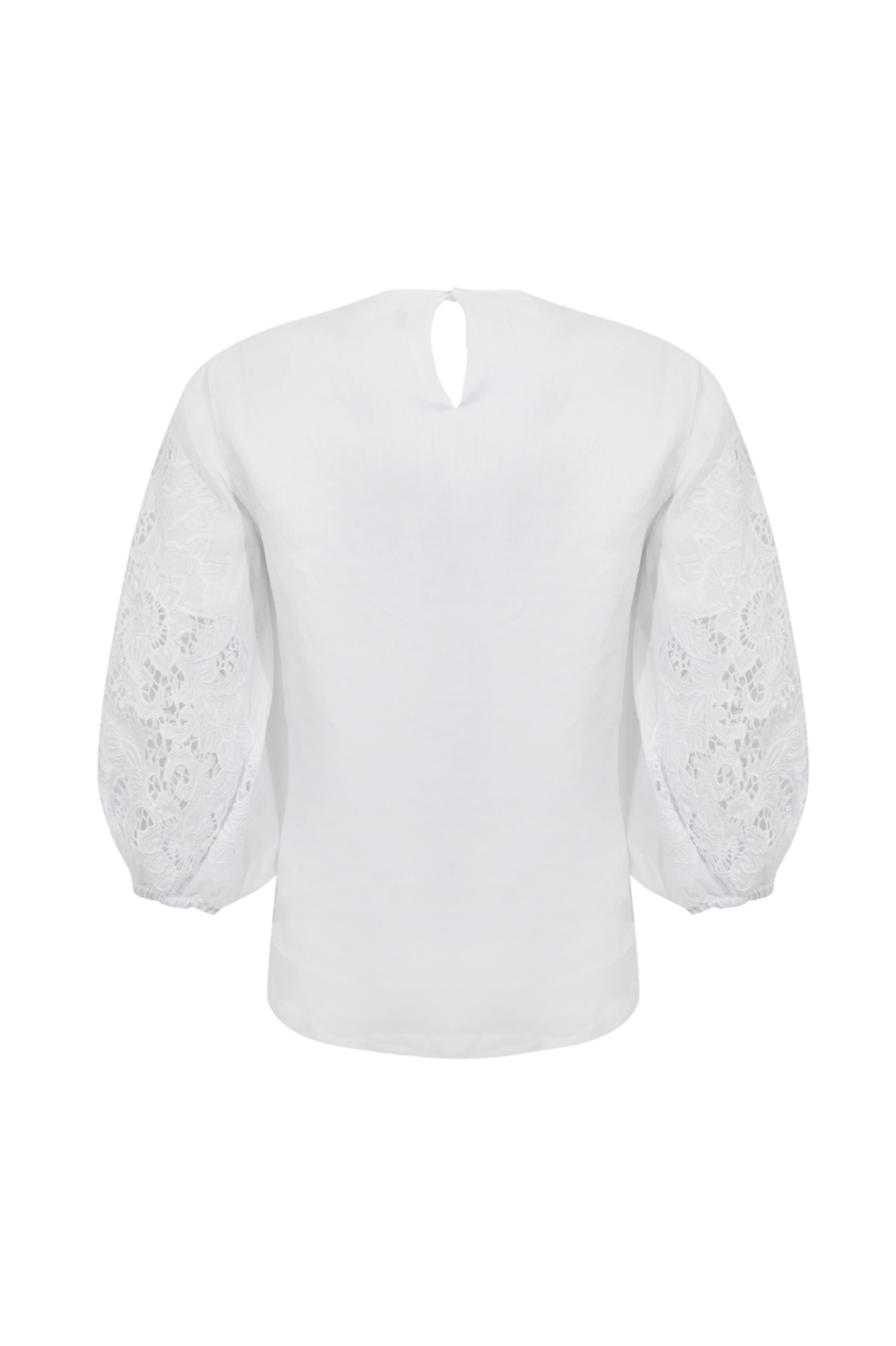 - Dettagli: maniche in pizzo Sangallo con motivo floreale, effetto semi trasparente, volume sulle maniche