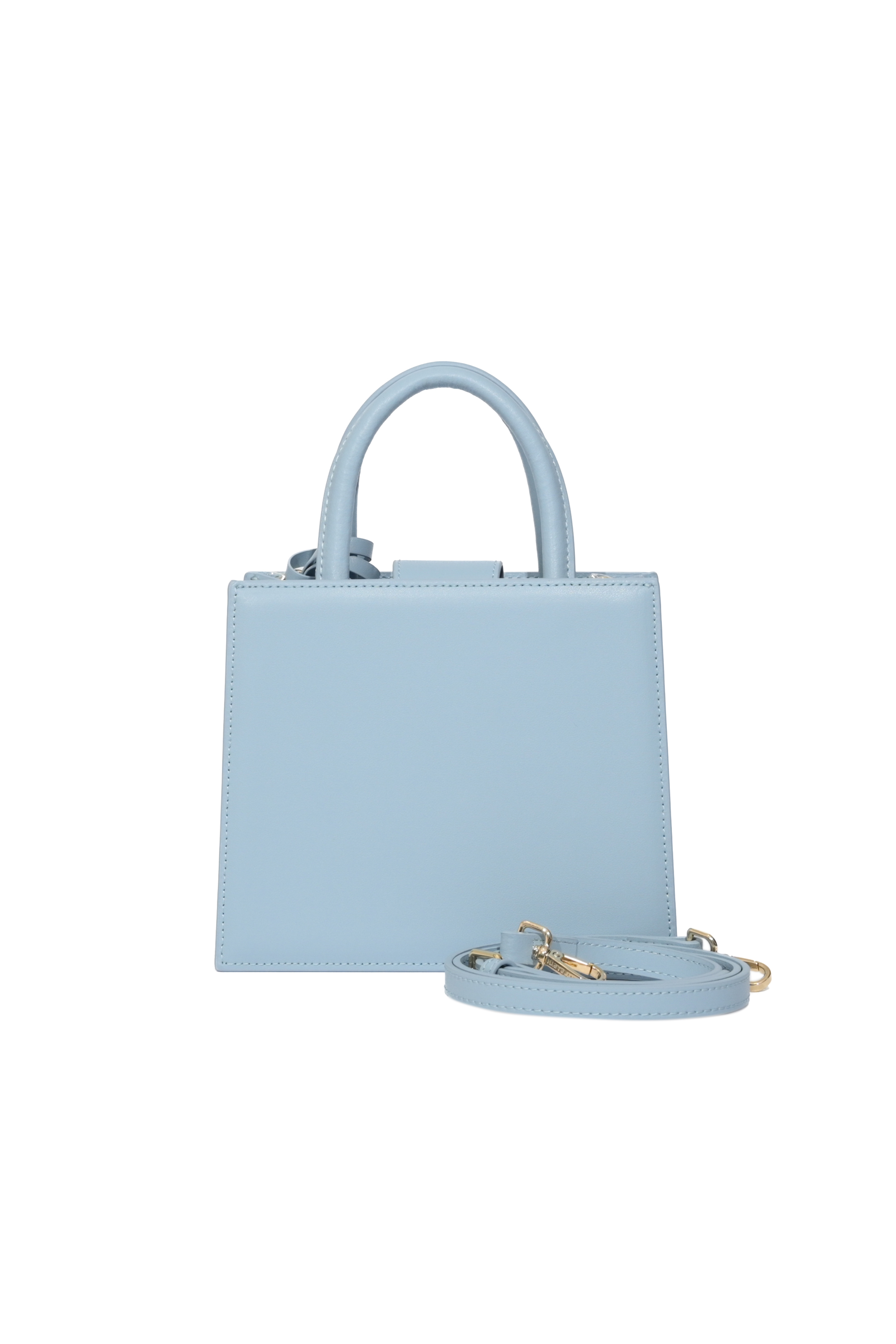 Borsa Shop mini strutturata in pelle liscia con targhetta metallica Azzurra