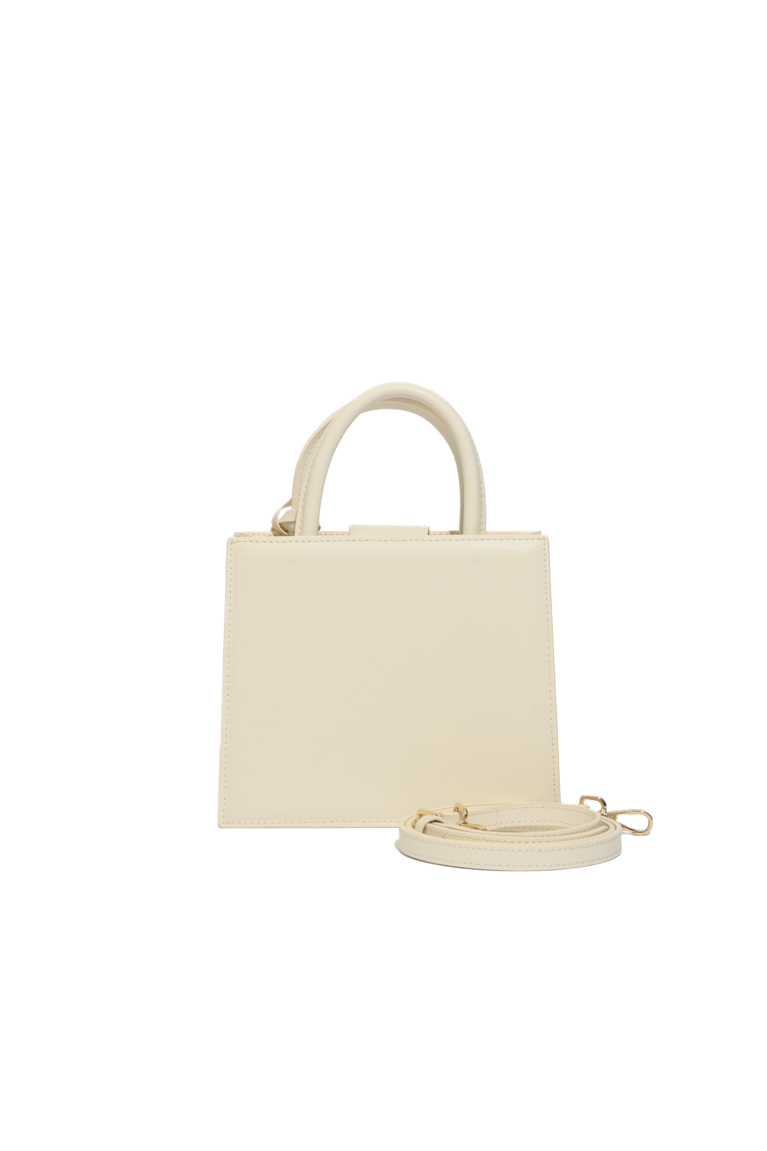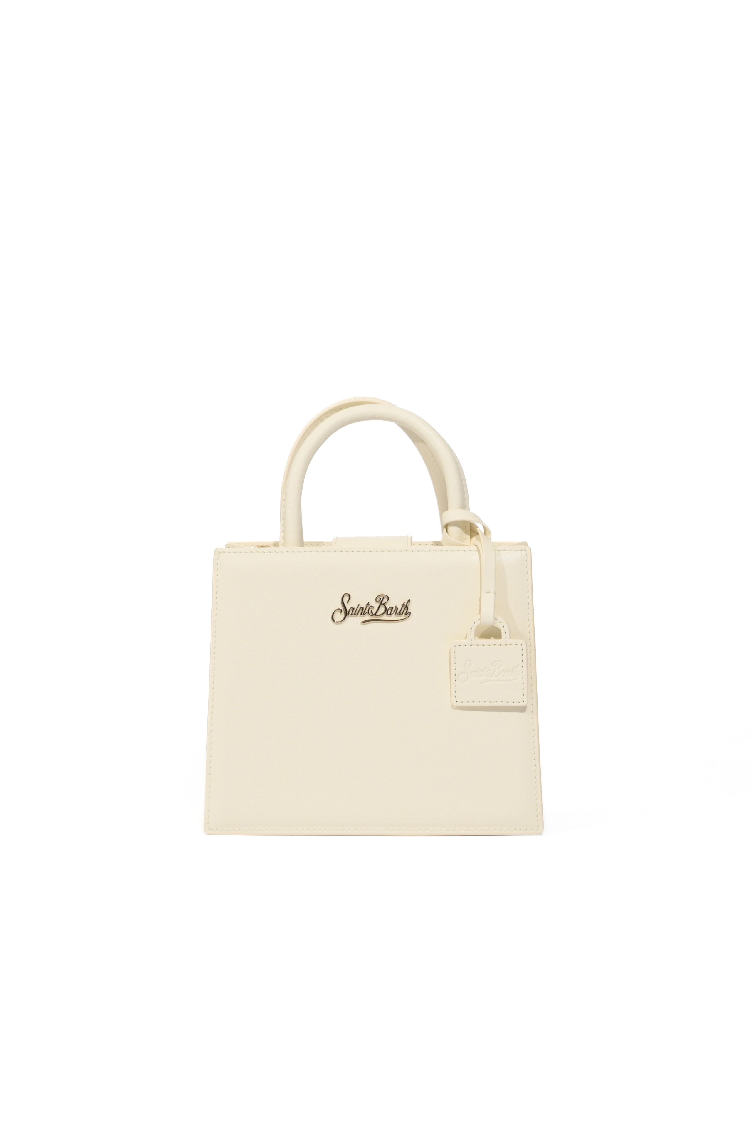 Borsa Shop mini strutturata in pelle liscia con targhetta metallica Bianco
