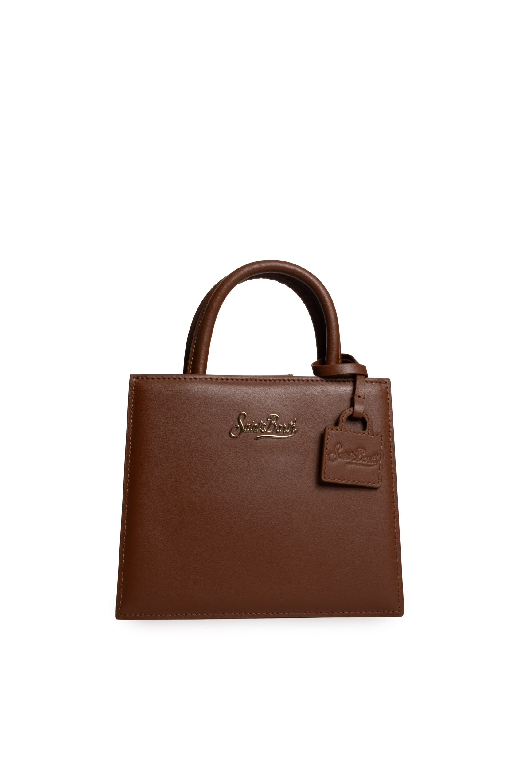- Dettagli: Logo metallico Saint Barth applicato sul fronte, charm pendente in pelle tono su tono, cuciture a vista e struttura rigida