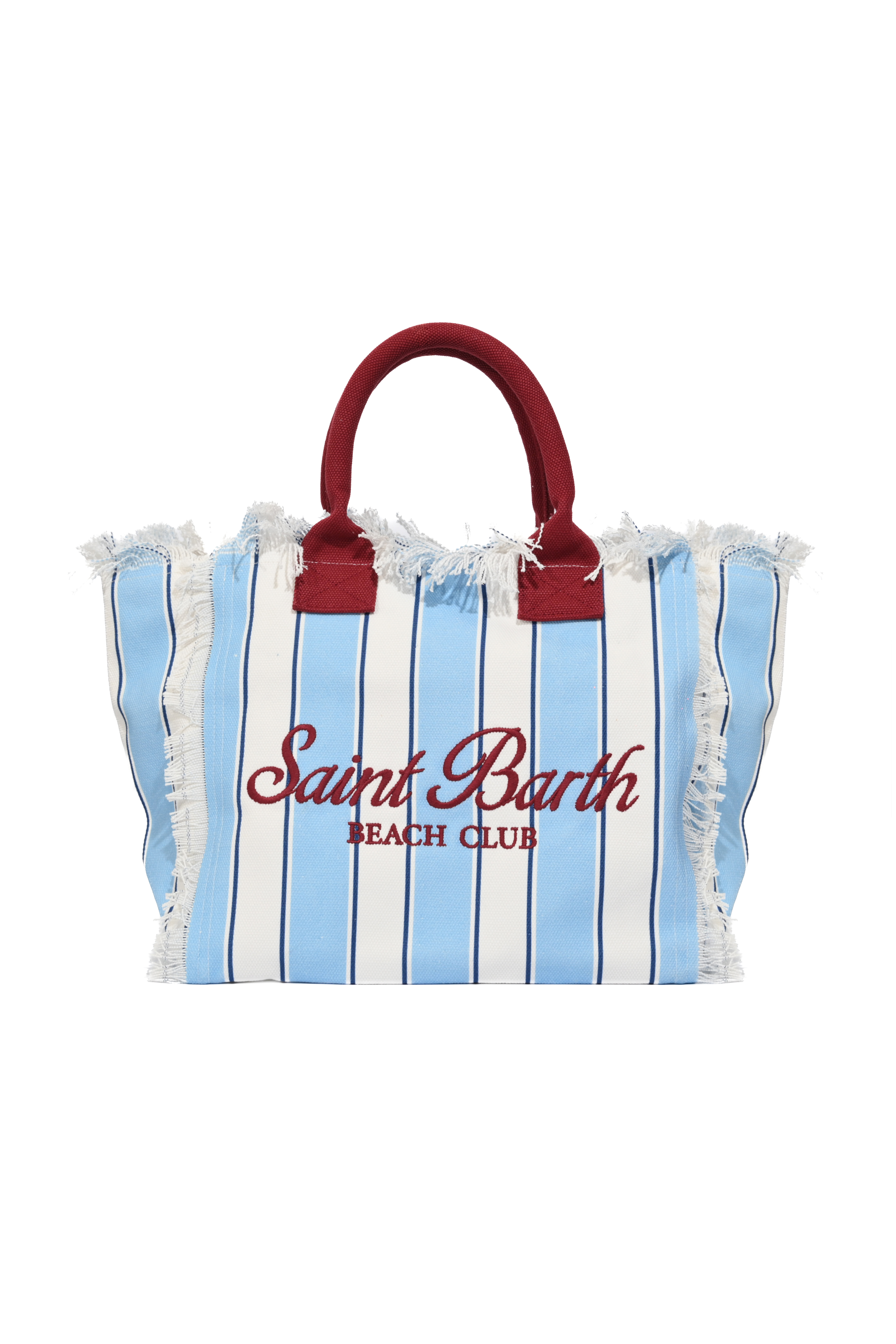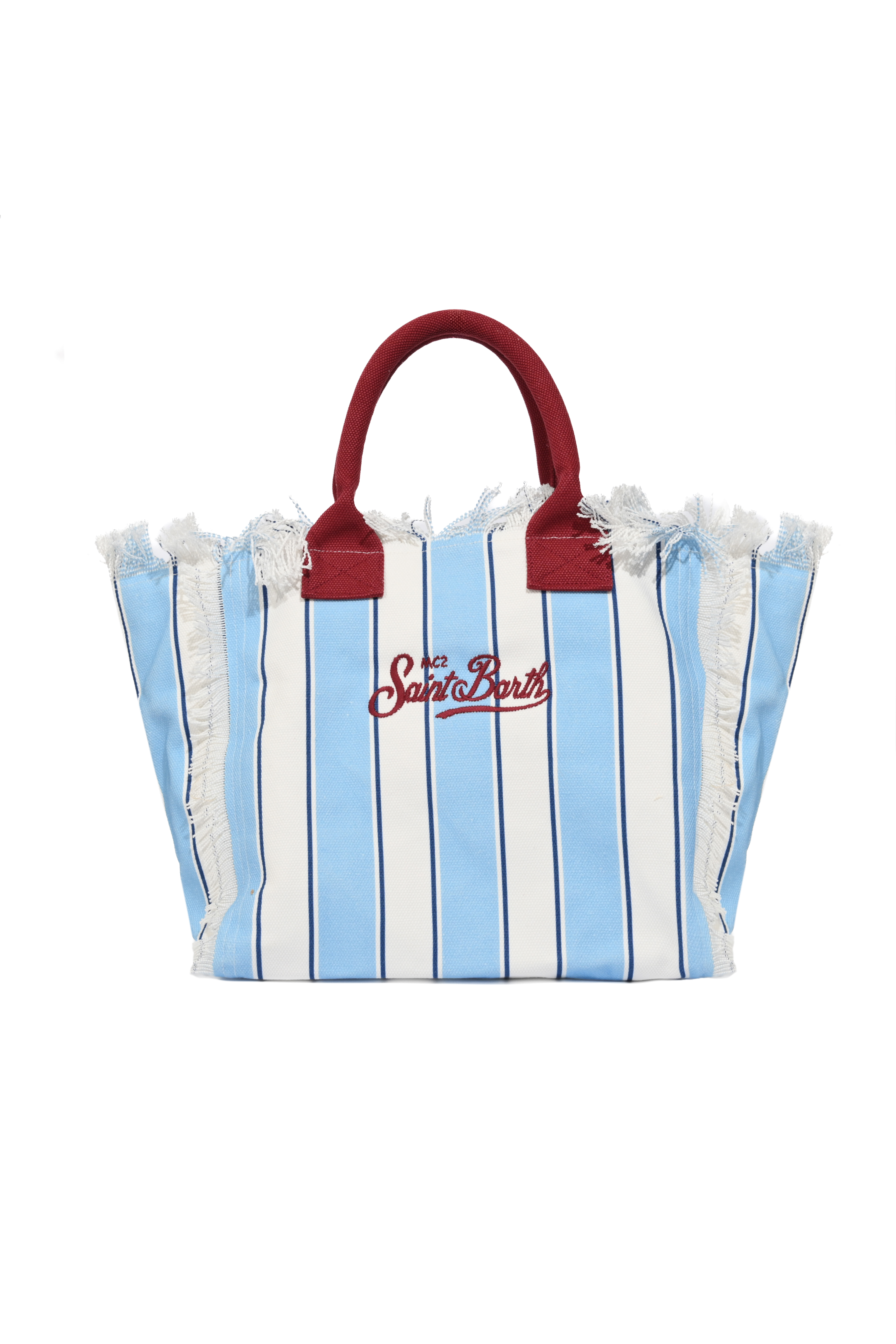 Borsa in canvas di cotone a righe azzurre con dettagli bordeaux, MC2 Saint Barth, modello Vanity Regular